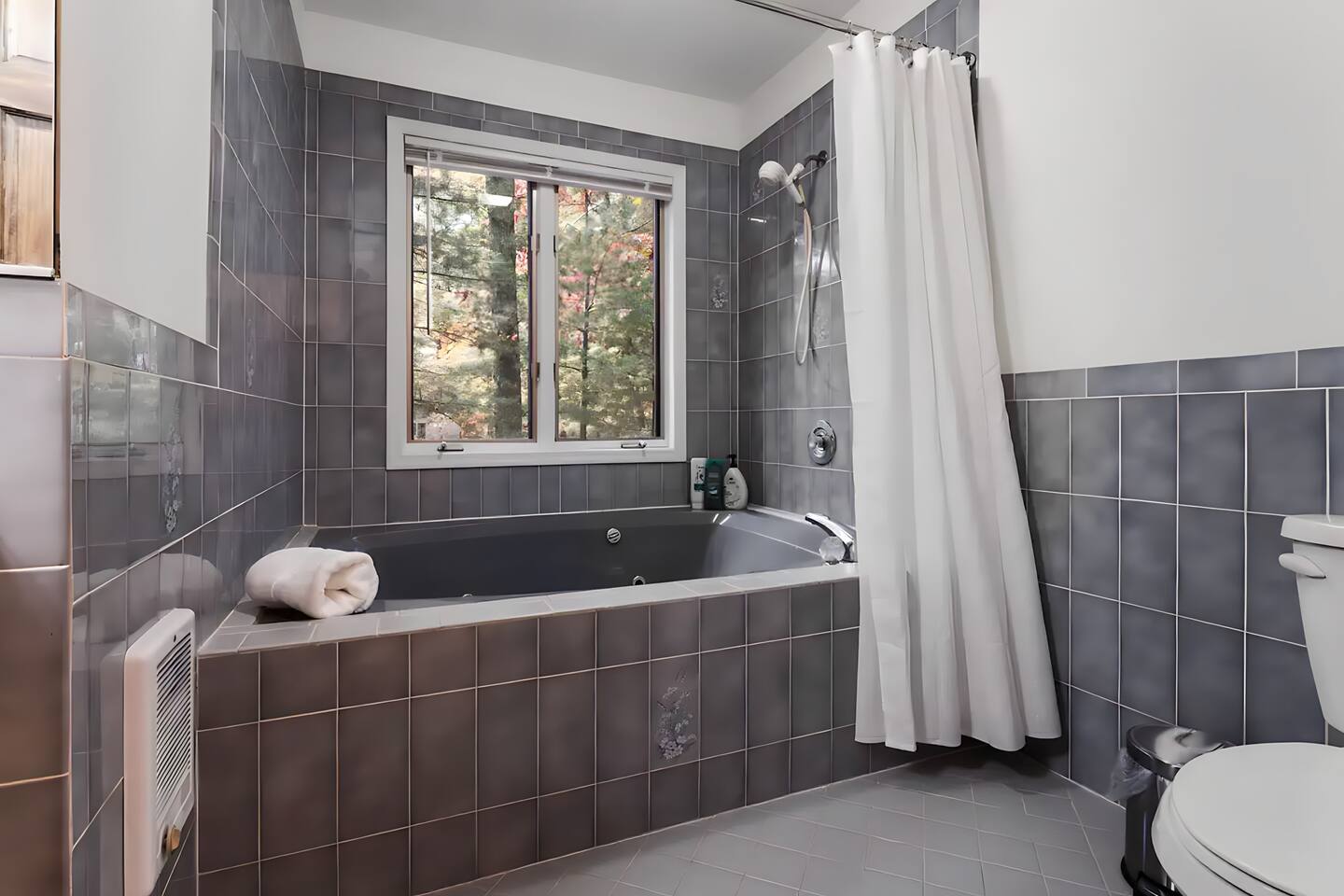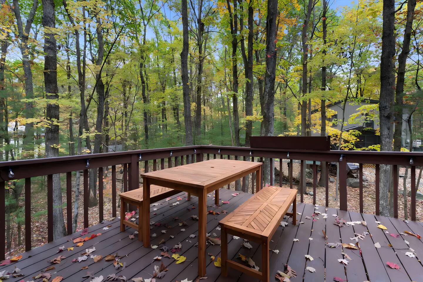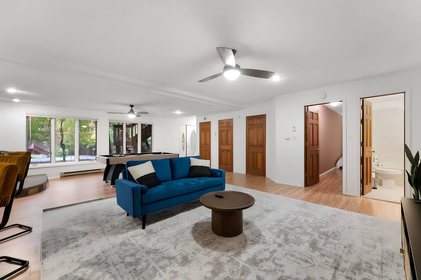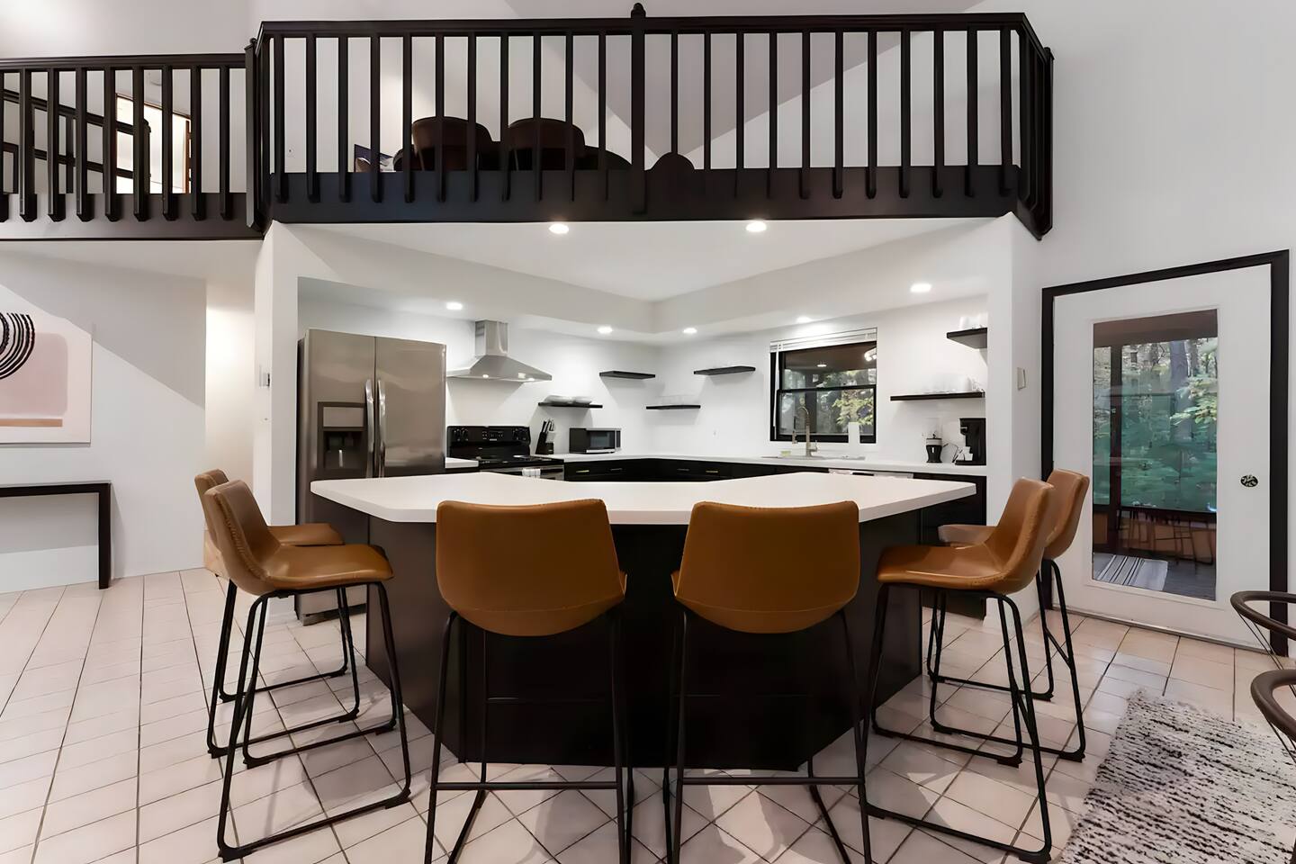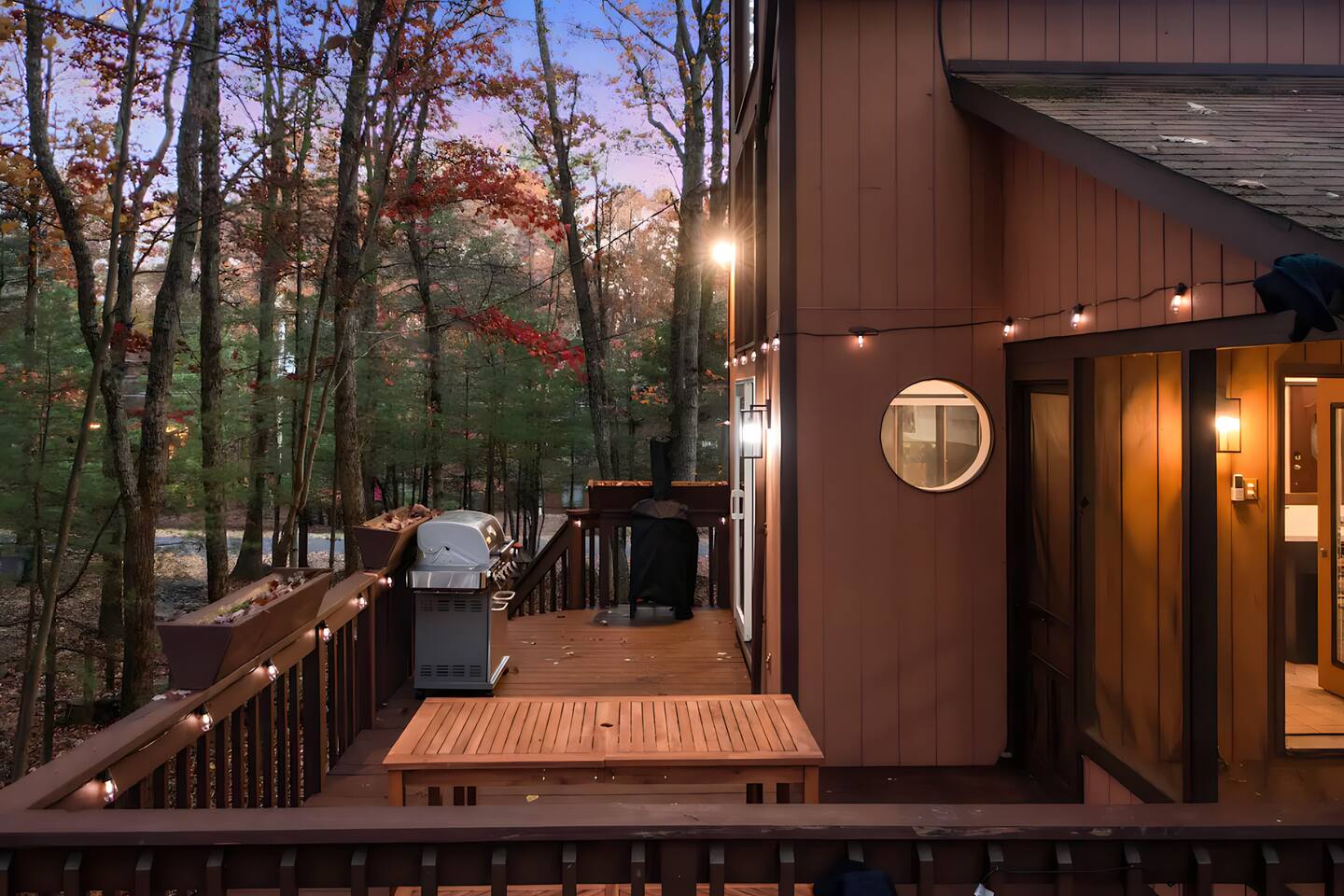 **During the summer months (Memorial Day weekend - Labor Day weekend), you will receive amenity badges that allow you to access the following amenities. If you’re staying with us outside of these dates, these amenities will be closed.** ☀ Lakes (with beach access - swimming allowed!) ☀ Pools ☀ Tennis courts ☀ Basketball courts ☀ Volleyball courts ☀ Dog park ☀ Playground areas KEY FEATURES: ☀ Five beautifully designed bedrooms (4 king beds, 2 full beds) ☀ Three full bathrooms, one on each floor! ☀ Completely renovated kitchen with brand new, modern appliances ☀ Grand living room that will blow you away! ☀ Open dining space with easy access to the patio & living areas ☀ Large back deck with outdoor seating, grill, and pizza oven ☀ Screened-in-porch with a fire pit and gorgeous views ☀ Private hot tub, secluded location below the back deck ☀ Two living rooms with lots of entertainment + poker table in the loft! Here Are A Few Kind Words From Our Past Guests: “This was a great place to stay! The morning light through the windows was so beautiful. Overall, just a relaxing experience. The hosts were super responsive whenever I had a question. I would stay again!” - Emily “Sabrina was very accommodating and communicative. the house is beautiful and very comfortable, close to nature hikes.” - Jennifer “This place was lovely! Exactly as pictured! Very clean and excellent host experience!!! I plan to come back again!” - Regina ☆☆ BEDROOMS ☆☆ Five spacious bedrooms, you have your choice on each floor! On the bottom level, there is one bedroom equipped with two full beds and next-door access to a full bathroom. Up on the main level, there are two bedrooms, one king bed in each. These two bedrooms share a full hallway bathroom with each other. On the third floor, there are two more bedrooms, also with one king bed in each. The third and final bathroom is also shared between these two rooms up on the top floor. ☆☆ BATHROOMS ☆☆ On every floor, you will always have direct access to a bathroom! Each bathroom has a similar layout of 1 sink, 1 toilet, and 1 shower/tub combo. ☆☆ KITCHEN & DINING ☆☆ As you walk in through the front door, you will be amazed by the grand entrance of this home, which opens right up into the kitchen/dining area. The kitchen has been completely remodeled and is now equipped with brand new modern appliances, a coffee station (including a Keurig and coffee pods), and tons of bar seating (up to 6). Right across from the kitchen is the dining area, surrounded by panoramic views of the Poconos woodlands and easy access to the screened-in-porch and back deck. This dining area is equipped with dining table which has seating up to 6, for a total of 12 accommodations in this kitchen/dining area. ☆☆ LIVING ROOMS ☆☆ WOW! This living room is one of the main attractions of this home. Beautiful, modern design with huge, lofty ceilings, walls of windows, and skylights. How could you ever want to leave? Included in this main living room is a wood-burning fireplace (wood not provided, but feel free to bring your own!) & a smart TV with lots of comfy seating surrounding it. Downstairs on the lower level, you will have access to a second living room. This room also has a smart TV, as well as a pool table, wet bar, and lots of seating. Of course, there is also a wall of windows where you can sit back and enjoy the Poconos nature from the comfort inside the walls of this beautiful home! ☆☆ OUTDOOR SPACE ☆☆ What kind of trip to the Poconos would it be if you didn't have access to wonderful outdoor amenities! We provide them all! In the screened in porch, you can cozy up on the couch next to the fire pit. Right outside of the porch, you have access to a large, private deck with outdoor dining options at the picnic table, grill, and pizza oven. Even at night you can enjoy this space, as the deck is surrounded by string lights to keep this are well-lit at any time of day! Right below the deck is the private hot tub. What a perfect location! Set away from the rest of the home, you can sit back and relax with complete privacy and never-ending views of the Poconos forest. A truly remarkable vacation destination! ★☆ Book Now & Let Us Take Care Of You In The Poconos! ☆★