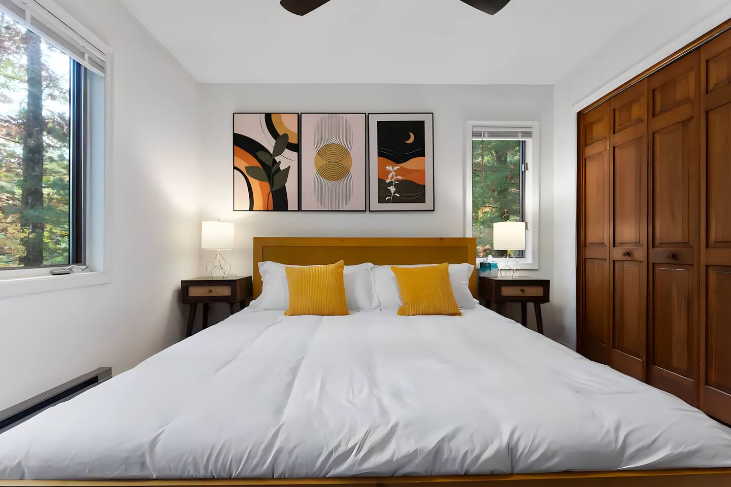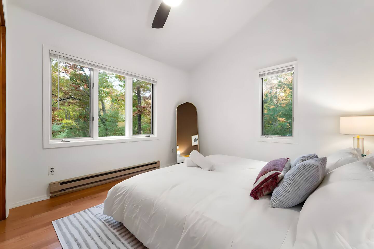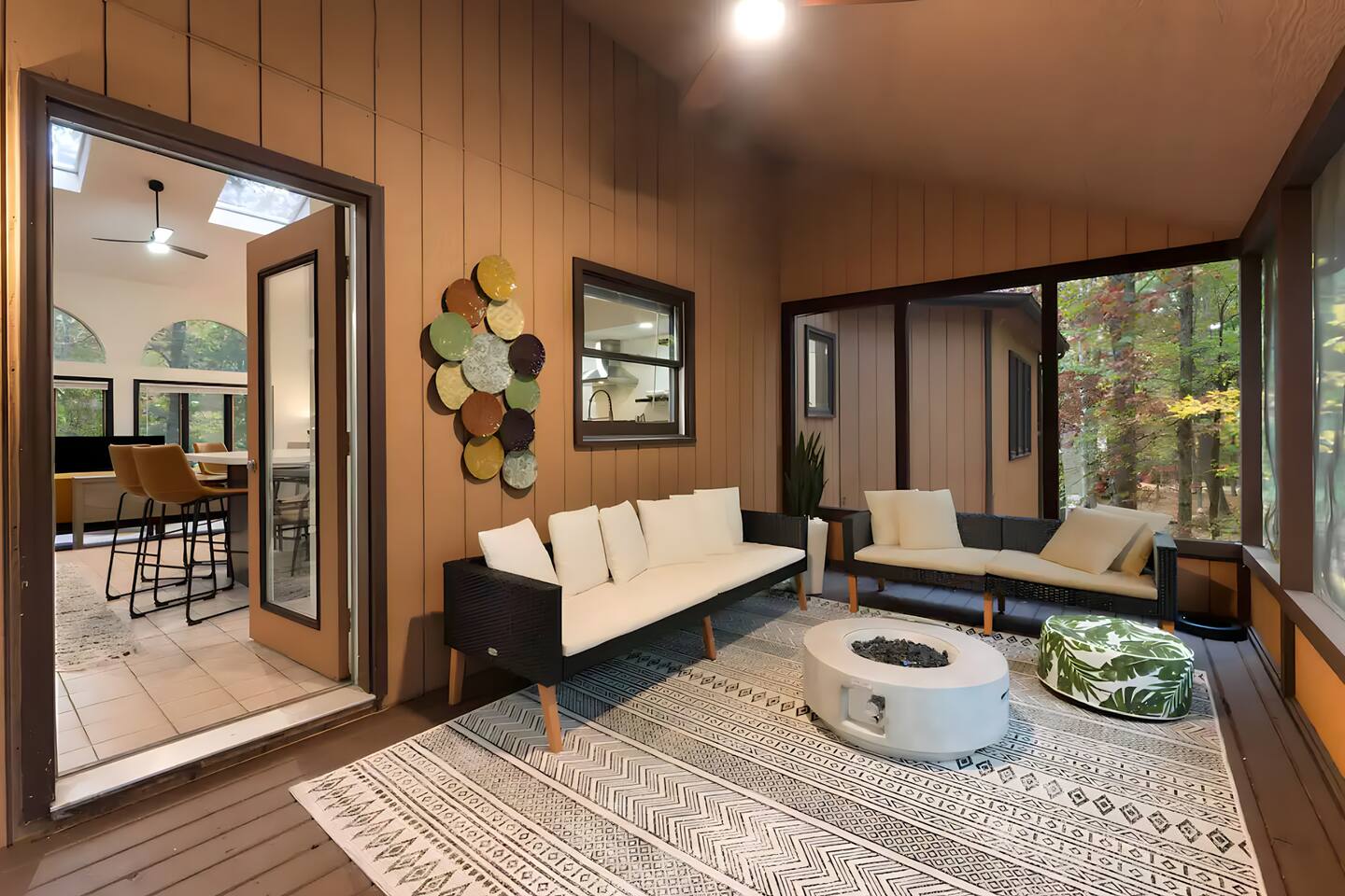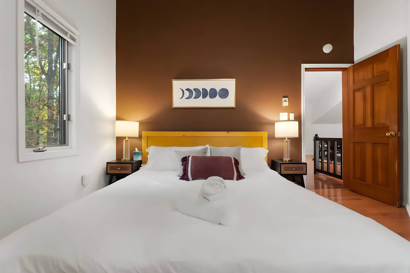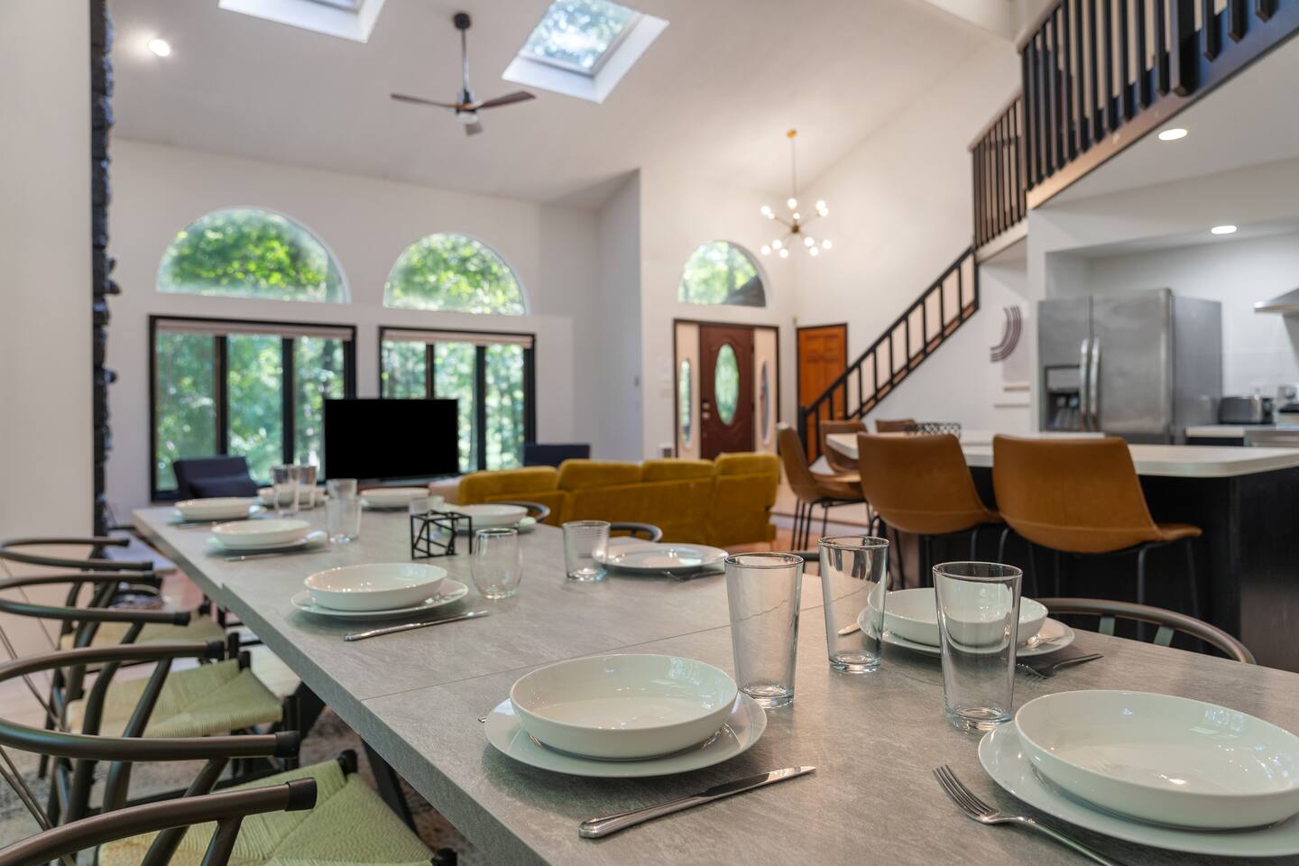 **During the summer months (Memorial Day weekend - Labor Day weekend), you will receive amenity badges that allow you to access the following amenities. If you’re staying with us outside of these dates, these amenities will be closed.** ☀ Lakes (with beach access - swimming allowed!) ☀ Pools ☀ Tennis courts ☀ Basketball courts ☀ Volleyball courts ☀ Dog park ☀ Playground areas KEY FEATURES: ☀ Five beautifully designed bedrooms (4 king beds, 2 full beds) ☀ Three full bathrooms, one on each floor! ☀ Completely renovated kitchen with brand new, modern appliances ☀ Grand living room that will blow you away! ☀ Open dining space with easy access to the patio & living areas ☀ Large back deck with outdoor seating, grill, and pizza oven ☀ Screened-in-porch with a fire pit and gorgeous views ☀ Private hot tub, secluded location below the back deck ☀ Two living rooms with lots of entertainment + poker table in the loft! Here Are A Few Kind Words From Our Past Guests: “This was a great place to stay! The morning light through the windows was so beautiful. Overall, just a relaxing experience. The hosts were super responsive whenever I had a question. I would stay again!” - Emily “Sabrina was very accommodating and communicative. the house is beautiful and very comfortable, close to nature hikes.” - Jennifer “This place was lovely! Exactly as pictured! Very clean and excellent host experience!!! I plan to come back again!” - Regina ☆☆ BEDROOMS ☆☆ Five spacious bedrooms, you have your choice on each floor! On the bottom level, there is one bedroom equipped with two full beds and next-door access to a full bathroom. Up on the main level, there are two bedrooms, one king bed in each. These two bedrooms share a full hallway bathroom with each other. On the third floor, there are two more bedrooms, also with one king bed in each. The third and final bathroom is also shared between these two rooms up on the top floor. ☆☆ BATHROOMS ☆☆ On every floor, you will always have direct access to a bathroom! Each bathroom has a similar layout of 1 sink, 1 toilet, and 1 shower/tub combo. ☆☆ KITCHEN & DINING ☆☆ As you walk in through the front door, you will be amazed by the grand entrance of this home, which opens right up into the kitchen/dining area. The kitchen has been completely remodeled and is now equipped with brand new modern appliances, a coffee station (including a Keurig and coffee pods), and tons of bar seating (up to 6). Right across from the kitchen is the dining area, surrounded by panoramic views of the Poconos woodlands and easy access to the screened-in-porch and back deck. This dining area is equipped with dining table which has seating up to 6, for a total of 12 accommodations in this kitchen/dining area. ☆☆ LIVING ROOMS ☆☆ WOW! This living room is one of the main attractions of this home. Beautiful, modern design with huge, lofty ceilings, walls of windows, and skylights. How could you ever want to leave? Included in this main living room is a wood-burning fireplace (wood not provided, but feel free to bring your own!) & a smart TV with lots of comfy seating surrounding it. Downstairs on the lower level, you will have access to a second living room. This room also has a smart TV, as well as a pool table, wet bar, and lots of seating. Of course, there is also a wall of windows where you can sit back and enjoy the Poconos nature from the comfort inside the walls of this beautiful home! ☆☆ OUTDOOR SPACE ☆☆ What kind of trip to the Poconos would it be if you didn't have access to wonderful outdoor amenities! We provide them all! In the screened in porch, you can cozy up on the couch next to the fire pit. Right outside of the porch, you have access to a large, private deck with outdoor dining options at the picnic table, grill, and pizza oven. Even at night you can enjoy this space, as the deck is surrounded by string lights to keep this are well-lit at any time of day! Right below the deck is the private hot tub. What a perfect location! Set away from the rest of the home, you can sit back and relax with complete privacy and never-ending views of the Poconos forest. A truly remarkable vacation destination! ★☆ Book Now & Let Us Take Care Of You In The Poconos! ☆★