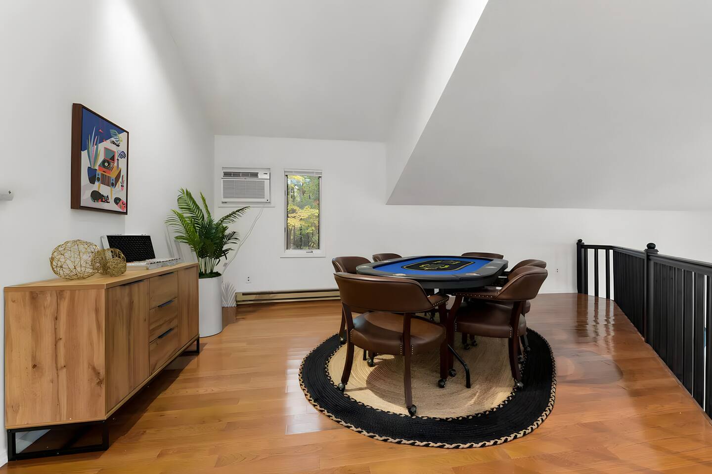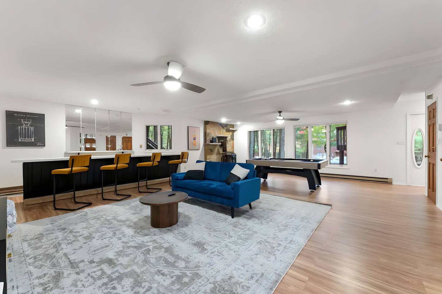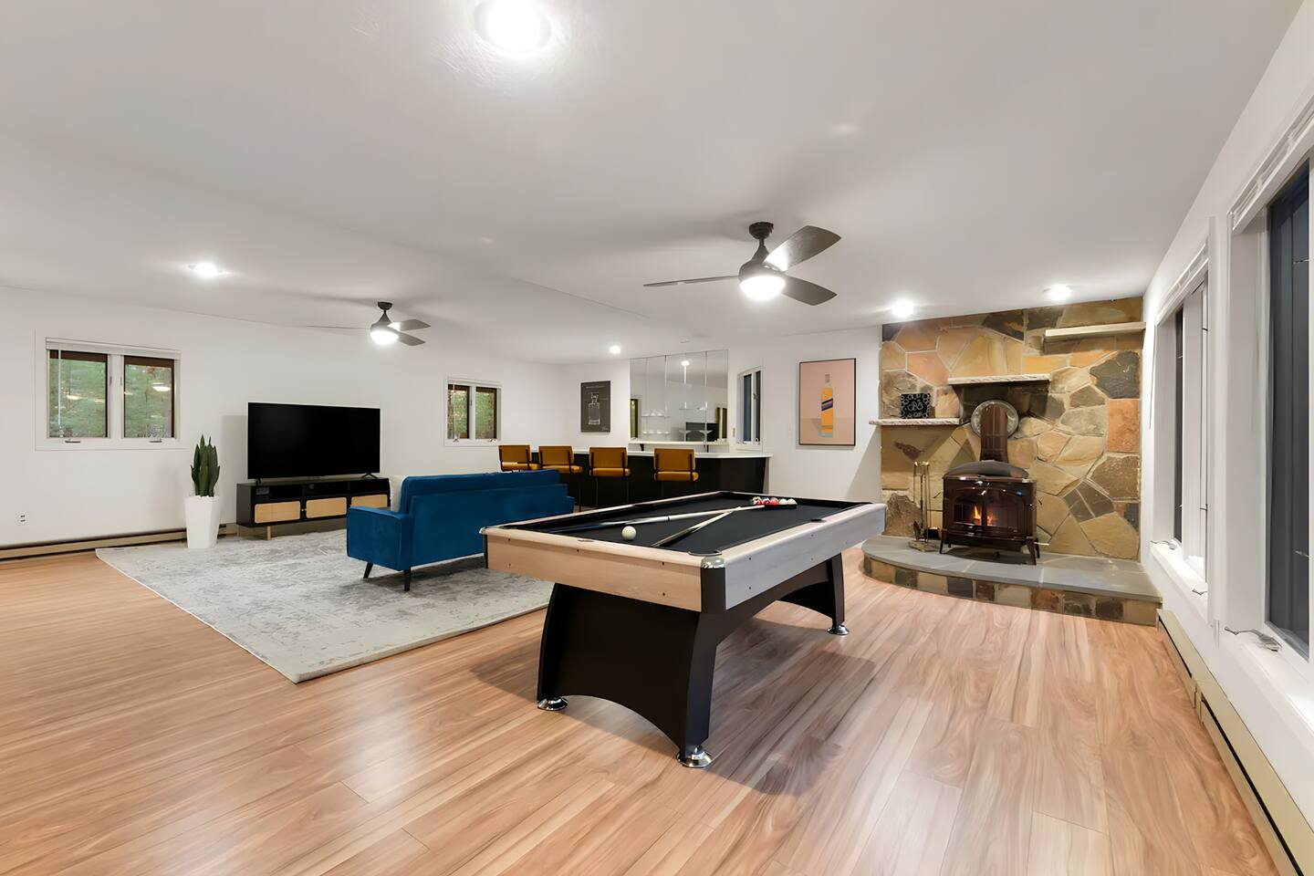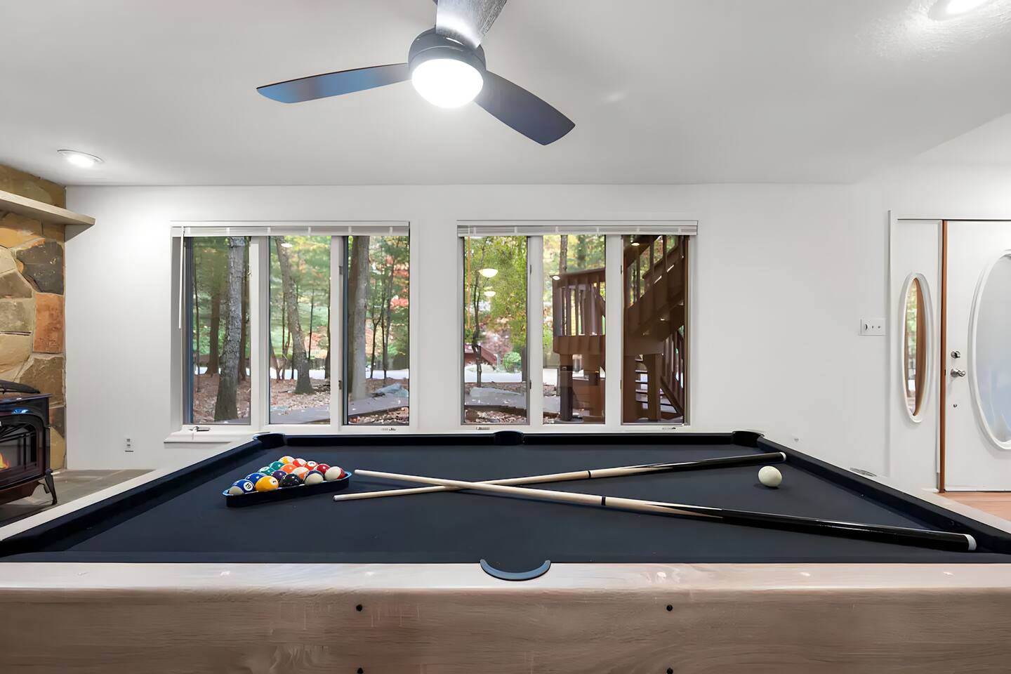 This home is an absolute STUNNER! It will take your breath away when you walk in! Three levels, two living rooms, tons of amenities (including pool table, poker table, private hot tub, and more!), and beautiful, modern design. Close access to lots of hiking & other natural attractions! 15 min - Delaware Water Gap, Downtown Stroudsburg 20 min - Kalahari Resort, Shawnee Mountain, Big Pocono State Park 30 min - Bushkill Falls Experience The Poconos With Us & Learn More Below!