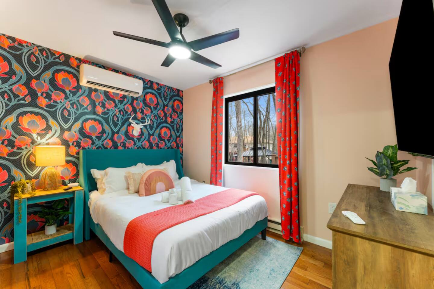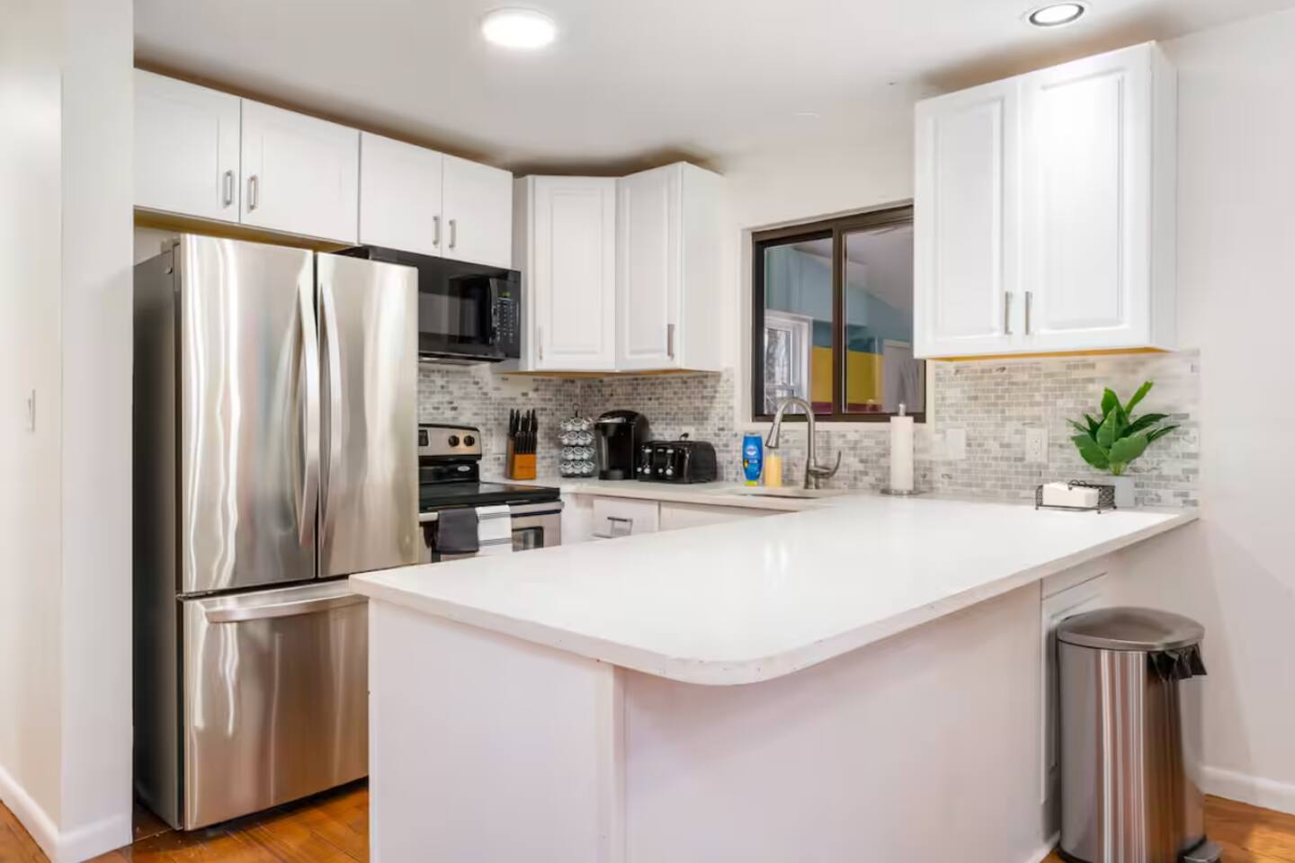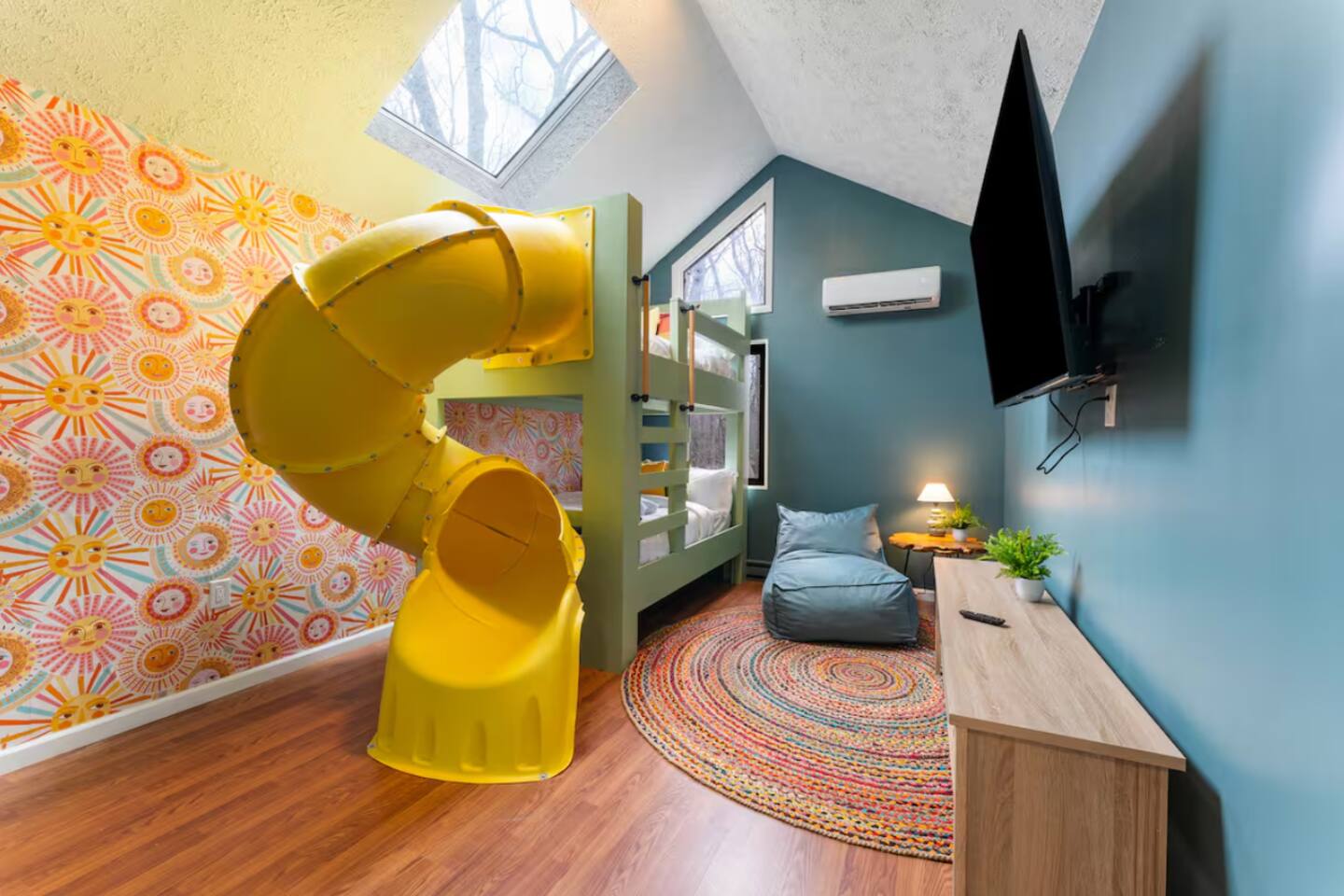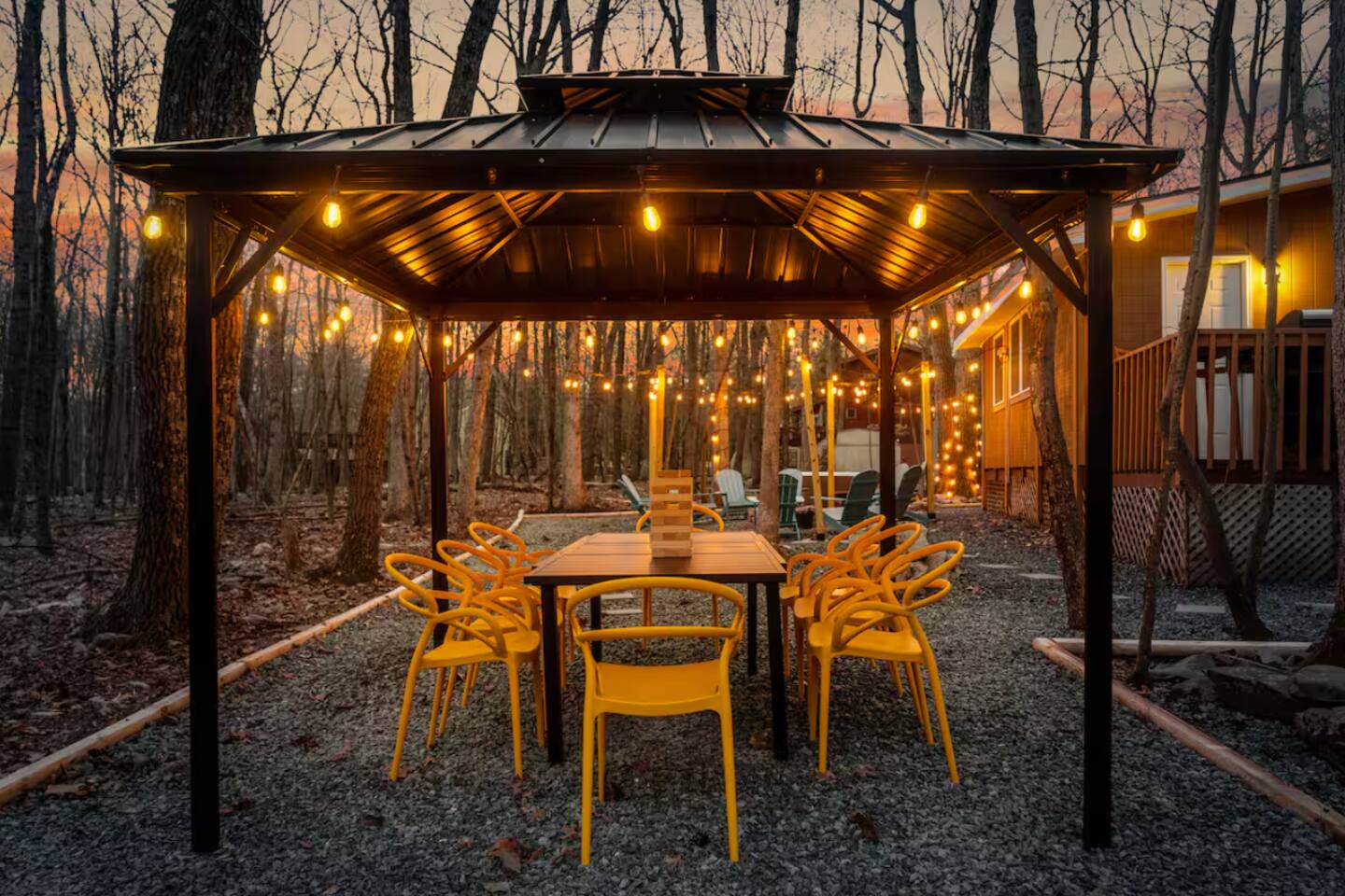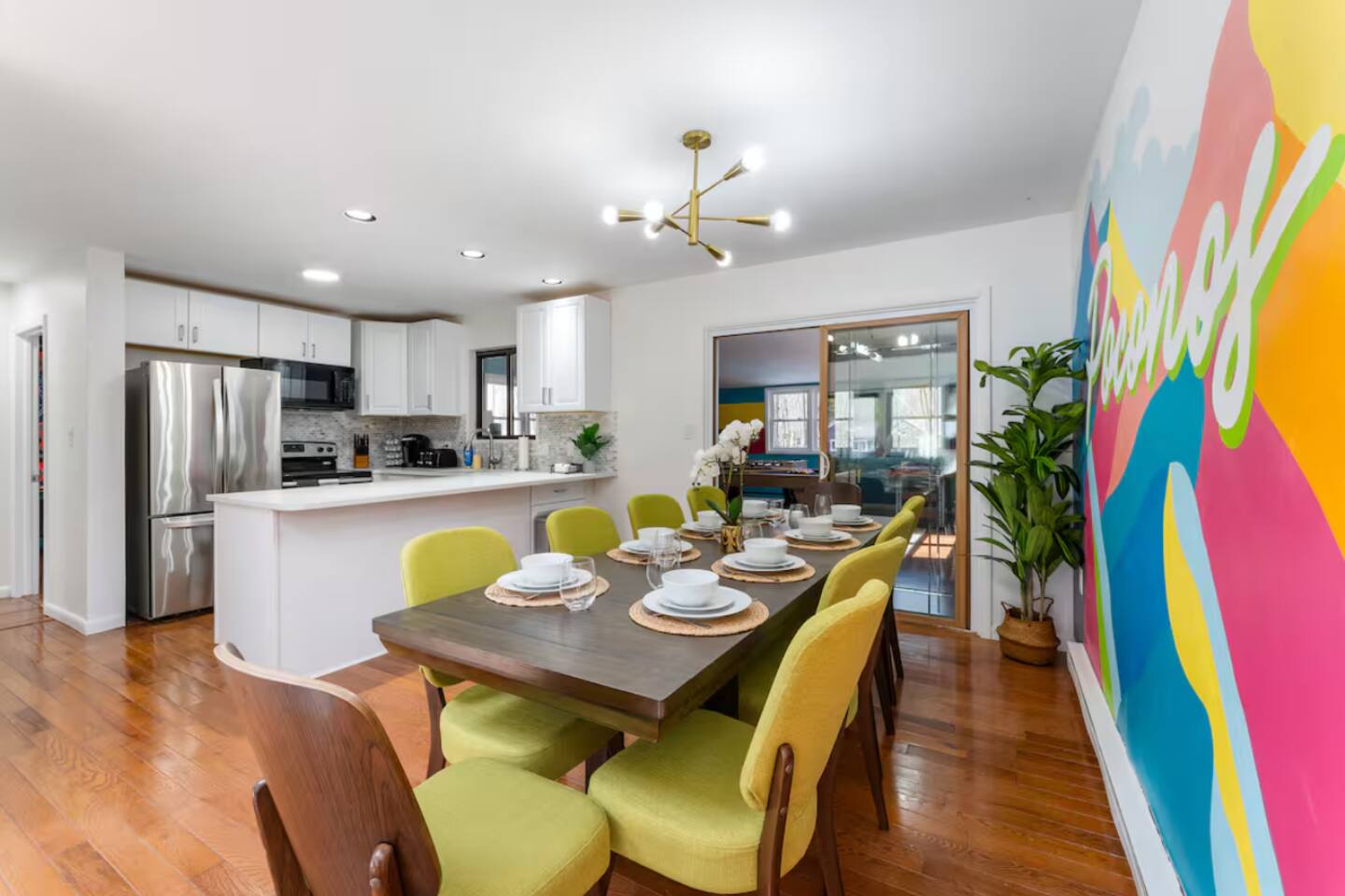 **During the summer months (Memorial Day weekend - Labor Day weekend), you will receive amenity badges that allow you to access the following amenities. If you’re staying with us outside of these dates, these amenities will be closed.** ☀ Lakes (with beach access - swimming allowed!) ☀ Pools ☀ Tennis courts ☀ Basketball courts ☀ Volleyball courts ☀ Dog park ☀ Playground areas KEY FEATURES: ☀ 4 beautiful bedrooms; 1 king, 2 queens, & 2 full beds ☀ 2 modern, full bathrooms ☀ Modern kitchen with stainless steel appliances ☀ Open living room with lots of comfy seating & smart TV ☀ Dining room with seating to comfortably accommodate 10 (+ outdoor dining) ☀ Incredible game room with pool table, air hockey, foosball, arcade games, & more! ☀ Serene backyard, with a hot tub, fire pit, jungle gym & more! Here Are A Few Kind Words From Our Past Guests: “This was a great place to stay! The morning light through the windows was so beautiful. Overall, just a relaxing experience. The hosts were super responsive whenever I had a question. I would stay again!” - Emily “Sabrina was very accommodating and communicative. the house is beautiful and very comfortable, close to nature hikes.” - Jennifer “This place was lovely! Exactly as pictured! Very clean and excellent host experience!!! I plan to come back again!” - Regina ☆☆ BEDROOMS ☆☆ Each of the 4 bedrooms in this home have been beautifully designed for comfort - every bedroom in this home has a 65" smart TV. On the bottom floor, Each bedroom has 1 queen bed + smart TV. Upstairs, the master bedroom has a king bed, smart TV, & private ensuite bathroom. Also upstairs, the 4th bedroom is super FUN, including a bunk bed (full-over-full) with a slide & smart TV! ☆☆ BATHROOMS ☆☆ There are two full, modern bathrooms in this home - each with a sink, toilet, and shower/tub combo. The bathroom on the first floor is shared between the two downstairs bedrooms. On the top floor, the second bathroom is a private ensuite bathroom to the master bedroom. ☆☆ KITCHEN & DINING ☆☆ The modern kitchen is located right off of the main living areas, and is loaded with all new stainless steel appliances & a coffee station (including a Keurig & coffee pods). The dining room is right next to the kitchen, with enough seating to comfortably fit 10 people, plus outdoor dining options! ☆☆ LIVING ROOM ☆☆ In the living room, you’ll be greeted with lots of comfy seating, a big smart TV, and an INCREDIBLE Poconos-themed mural. This is the perfect spot to host your movie nights & games with your friends and family! ☆☆ GAME ROOMS ☆☆ Keep your family and friends entertained throughout your stay in our fun game rooms! Pool table, foosball, air hockey, arcade games, and comfy seating with a smart TV. Whether your reason for staying is to explore the town or stay at home and relax, this place will be the perfect spot to unwind! ☆☆ OUTDOOR SPACE ☆☆ This backyard is everything you could ask for, and more! ☀ Hot tub ☀ Fire pit ☀ Kids' play house with slide ☀ Corn hole ☀ Giant Jenga ☀ BBQ grill ☀ Outdoor dining There is so much to do here, that all of your friends & family will be thoroughly entertained throughout your entire stay. No matter the season, this backyard has it all. Book your stay with us today and you will NOT be disappointed. Get ready for a vacation you will never forget! ★☆ Book Now & Let Us Take Care Of You In The Poconos! ☆★