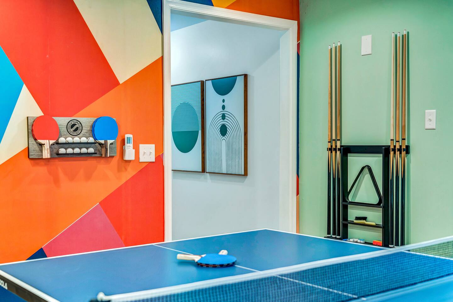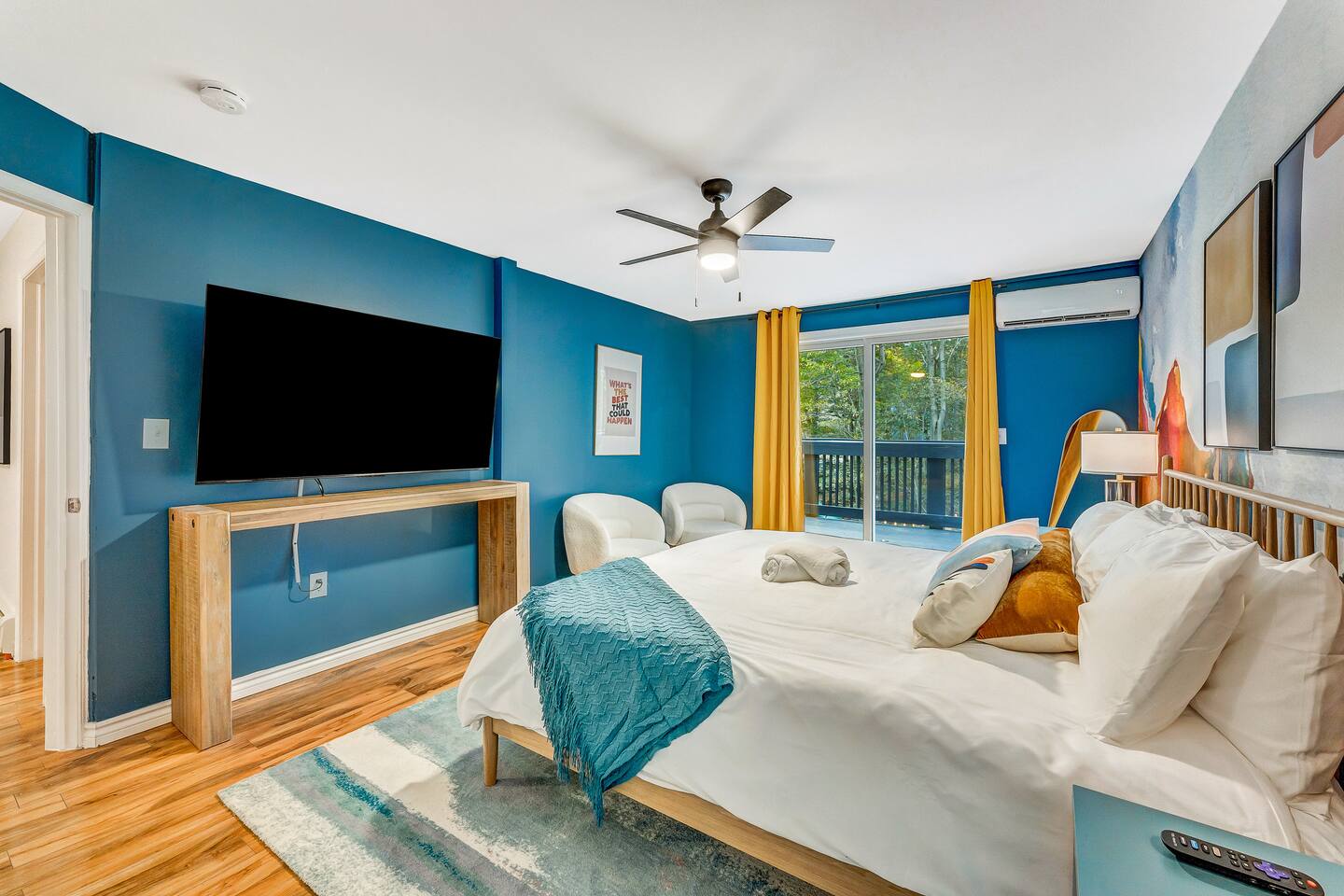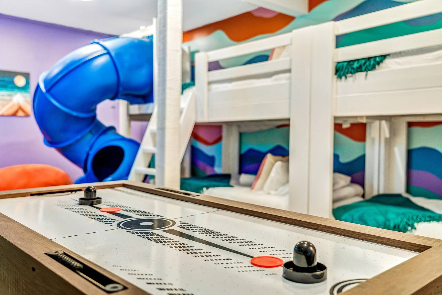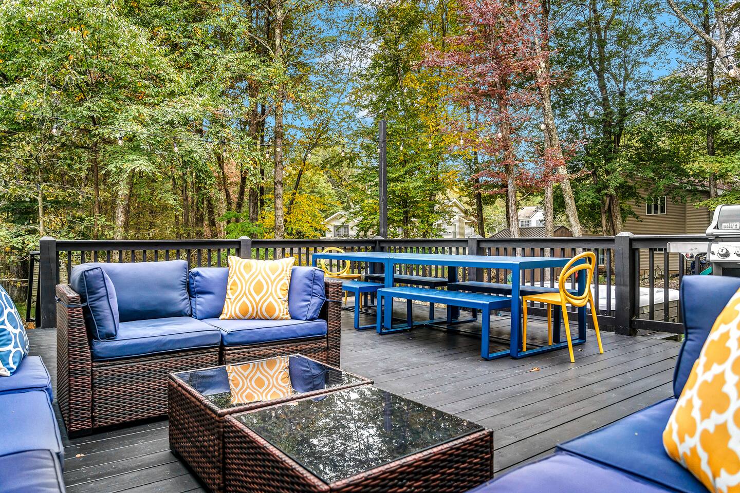 **During the summer months ONLY (Memorial Day weekend - Labor Day weekend), you will have the option to purchase amenity passes that allow you to access the following amenities** ☀ Lakes (with beach access - swimming allowed!) ☀ Pools ☀ Tennis courts ☀ Basketball courts ☀ Dog park ☀ Playground areas KEY FEATURES: ☀ 5 beautiful bedrooms; 2 kings, 2 queens, 1 full, and 4 twin beds (2 bunk beds) ☀ 3 modern, full bathrooms ☀ Modern kitchen with new, stainless steel appliances ☀ Open living room with lots of comfy seating & smart TV ☀ Dining room with seating to comfortably accommodate 12 (+ outdoor dining on the back deck) ☀ 2 AMAZING game rooms; pool table, ping pong, arcade games, & more! ☀ Fun-filled backyard; fire pit, hot tub, jungle gym, corn hole, & more! Here Are A Few Kind Words From Our Past Guests: “This was a great place to stay! The morning light through the windows was so beautiful. Overall, just a relaxing experience. The hosts were super responsive whenever I had a question. I would stay again!” - Emily “Sabrina was very accommodating and communicative. the house is beautiful and very comfortable, close to nature hikes.” - Jennifer “This place was lovely! Exactly as pictured! Very clean and excellent host experience!!! I plan to come back again!” - Regina ☆☆ BEDROOMS ☆☆ You'll find 5 beautiful bedrooms throughout this home, each with their own TV. On the first floor is the most fun bedroom of them all: two twin-over-twin bunk beds (4 twin beds total), a SLIDE, and air hockey. Upstairs are the 4 remaining bedrooms: the master bedroom has a king bed, private attached balcony, and an ensuite bathroom. The third bedroom has a king bed as well, while the fourth bedroom has a queen. The fifth bedroom has a queen-over-full trundle bed. ☆☆ BATHROOMS ☆☆ There are 3 full bathrooms in this home, each with a sink, toilet, and shower/tub combo. One bathroom is downstairs, located right off the hallway that connects the living room to the game rooms. Upstairs, the second bathroom is connected to the master bedroom, while the third bathroom is accessible from the upstairs hallway. ☆☆ KITCHEN & DINING ☆☆ The modern kitchen is located right off of the main living areas, and is loaded with all new stainless steel appliances & a coffee station (including a Keurig & coffee pods). The dining room is right next to the kitchen, with enough seating to comfortably fit 12 people, with direct access to the back deck, which has even more space for outdoor dining! ☆☆ LIVING ROOM ☆☆ In the living room, you’ll be greeted with lots of comfy seating and a big smart TV. This is the perfect spot to host your movie nights & games with your friends and family! ☆☆ GAME ROOMS ☆☆ Keep your family and friends entertained throughout your stay in our amenity-filled game room! Pool table, ping pong, basketball pop-a-shot, and arcade games. Whether your reason for staying is to explore the town or stay at home and relax, this place will be the perfect spot to unwind! ☆☆ OUTDOOR SPACE ☆☆ This backyard is everything you could ask for, and more! ☀ Hot tub ☀ Wood-burning fire pit ☀ Jungle gym ☀ Corn hole ☀ Giant Connect 4 ☀ BBQ grill ☀ Outdoor lounge seating ☀ Outdoor dining There is so much to do here, that all of your friends & family will be thoroughly entertained throughout your entire stay. No matter the season, this backyard has it all. Book your stay with us today and you will NOT be disappointed. Get ready for a vacation you will never forget! ★☆ Book Now & Let Us Take Care Of You In The Poconos! ☆★