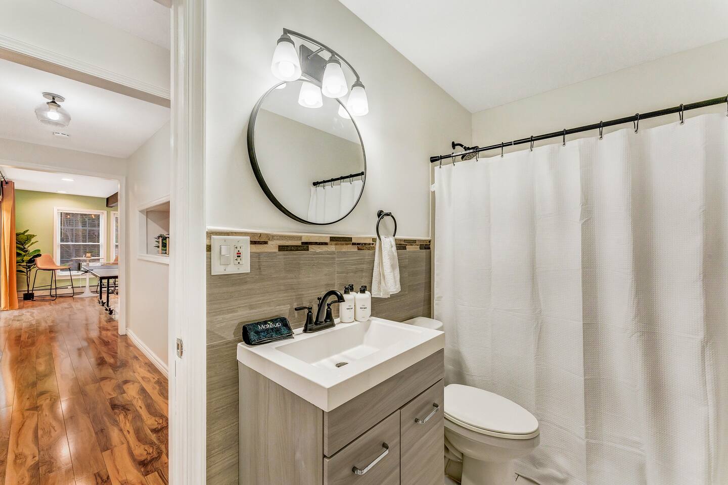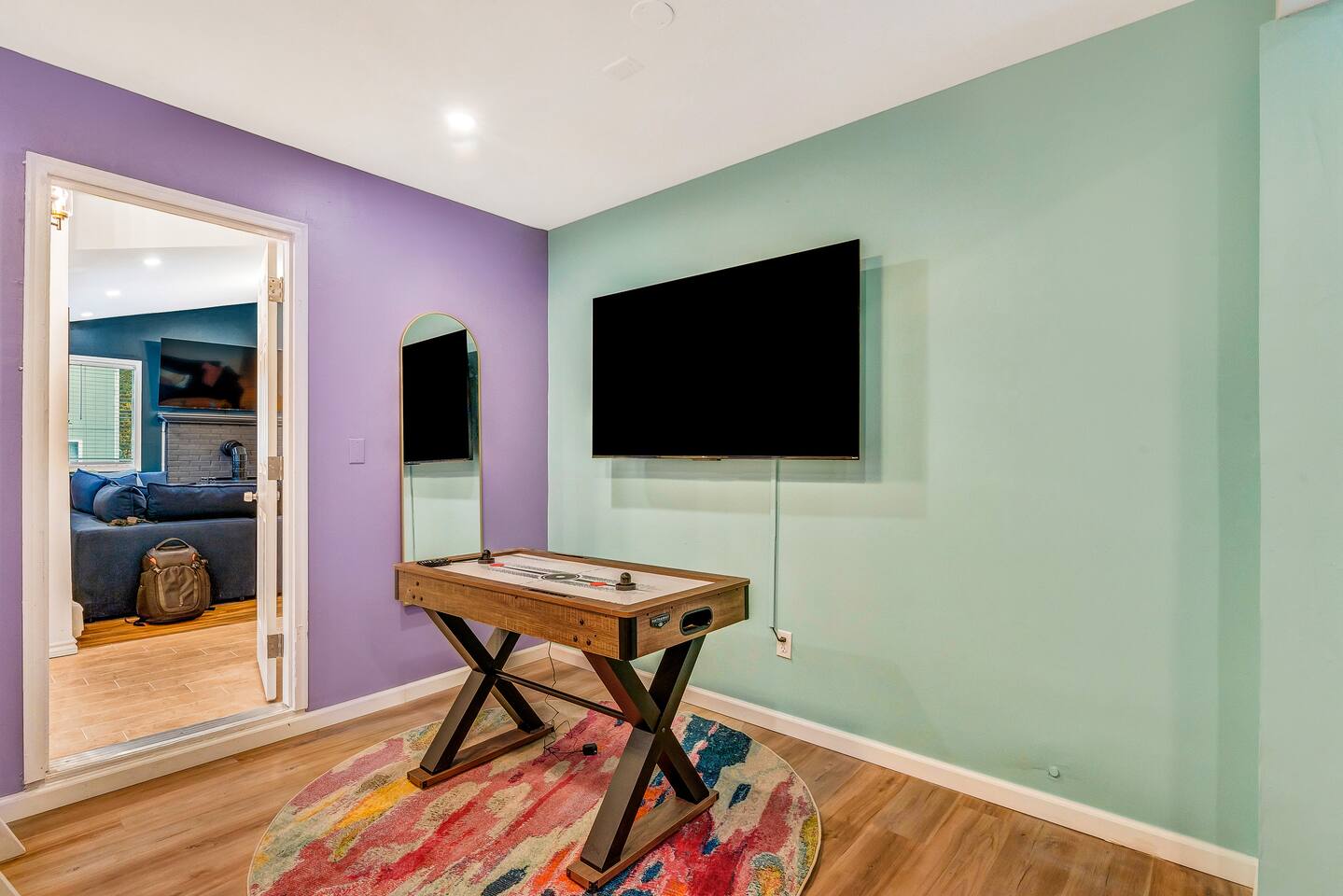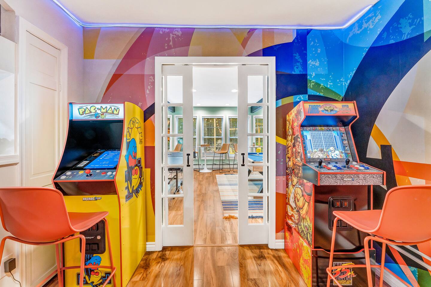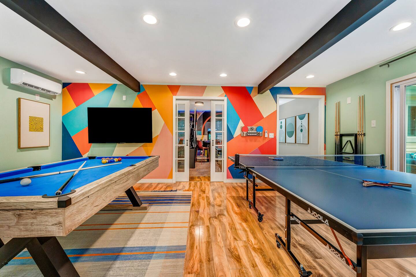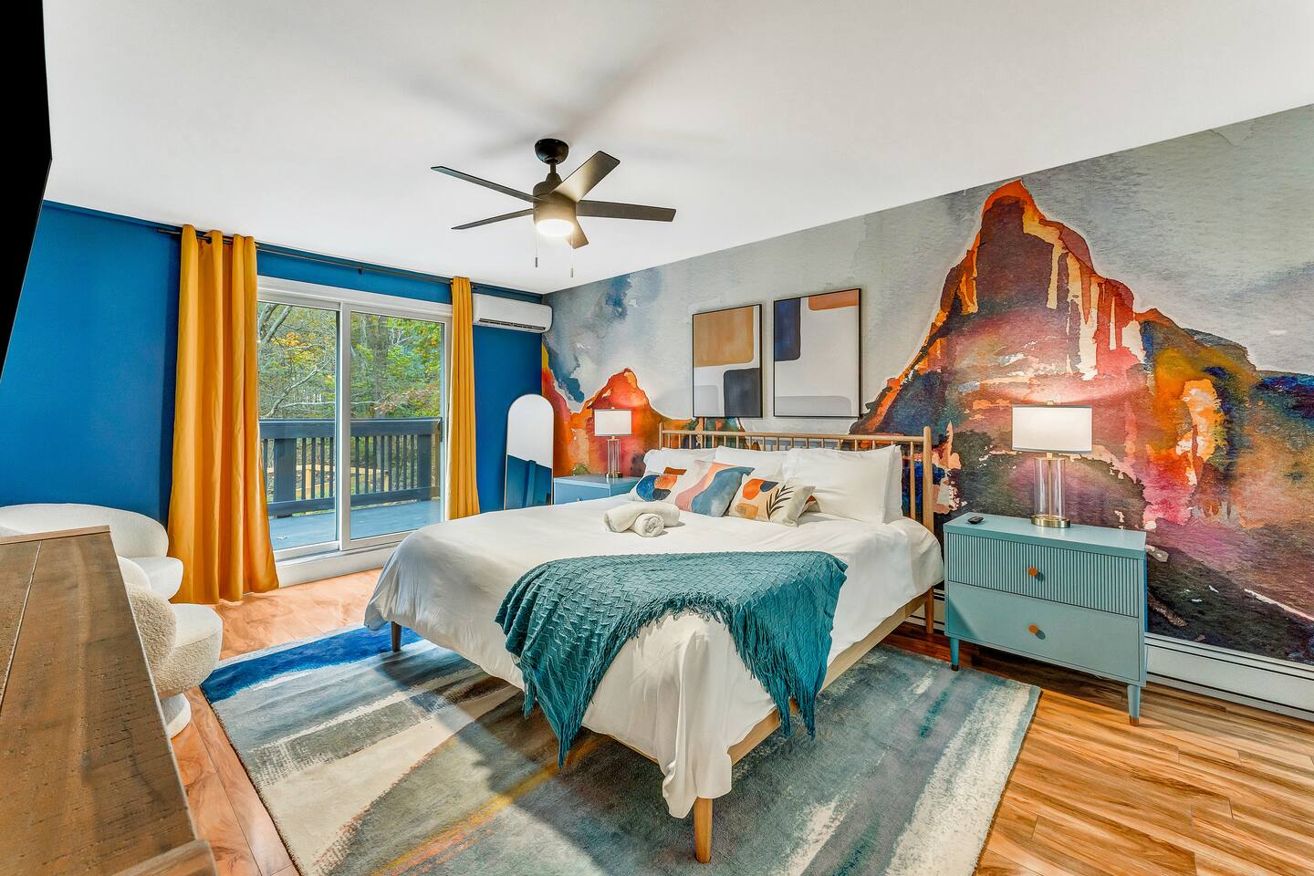 **During the summer months ONLY (Memorial Day weekend - Labor Day weekend), you will have the option to purchase amenity passes that allow you to access the following amenities** ☀ Lakes (with beach access - swimming allowed!) ☀ Pools ☀ Tennis courts ☀ Basketball courts ☀ Dog park ☀ Playground areas KEY FEATURES: ☀ 5 beautiful bedrooms; 2 kings, 2 queens, 1 full, and 4 twin beds (2 bunk beds) ☀ 3 modern, full bathrooms ☀ Modern kitchen with new, stainless steel appliances ☀ Open living room with lots of comfy seating & smart TV ☀ Dining room with seating to comfortably accommodate 12 (+ outdoor dining on the back deck) ☀ 2 AMAZING game rooms; pool table, ping pong, arcade games, & more! ☀ Fun-filled backyard; fire pit, hot tub, jungle gym, corn hole, & more! Here Are A Few Kind Words From Our Past Guests: “This was a great place to stay! The morning light through the windows was so beautiful. Overall, just a relaxing experience. The hosts were super responsive whenever I had a question. I would stay again!” - Emily “Sabrina was very accommodating and communicative. the house is beautiful and very comfortable, close to nature hikes.” - Jennifer “This place was lovely! Exactly as pictured! Very clean and excellent host experience!!! I plan to come back again!” - Regina ☆☆ BEDROOMS ☆☆ You'll find 5 beautiful bedrooms throughout this home, each with their own TV. On the first floor is the most fun bedroom of them all: two twin-over-twin bunk beds (4 twin beds total), a SLIDE, and air hockey. Upstairs are the 4 remaining bedrooms: the master bedroom has a king bed, private attached balcony, and an ensuite bathroom. The third bedroom has a king bed as well, while the fourth bedroom has a queen. The fifth bedroom has a queen-over-full trundle bed. ☆☆ BATHROOMS ☆☆ There are 3 full bathrooms in this home, each with a sink, toilet, and shower/tub combo. One bathroom is downstairs, located right off the hallway that connects the living room to the game rooms. Upstairs, the second bathroom is connected to the master bedroom, while the third bathroom is accessible from the upstairs hallway. ☆☆ KITCHEN & DINING ☆☆ The modern kitchen is located right off of the main living areas, and is loaded with all new stainless steel appliances & a coffee station (including a Keurig & coffee pods). The dining room is right next to the kitchen, with enough seating to comfortably fit 12 people, with direct access to the back deck, which has even more space for outdoor dining! ☆☆ LIVING ROOM ☆☆ In the living room, you’ll be greeted with lots of comfy seating and a big smart TV. This is the perfect spot to host your movie nights & games with your friends and family! ☆☆ GAME ROOMS ☆☆ Keep your family and friends entertained throughout your stay in our amenity-filled game room! Pool table, ping pong, basketball pop-a-shot, and arcade games. Whether your reason for staying is to explore the town or stay at home and relax, this place will be the perfect spot to unwind! ☆☆ OUTDOOR SPACE ☆☆ This backyard is everything you could ask for, and more! ☀ Hot tub ☀ Wood-burning fire pit ☀ Jungle gym ☀ Corn hole ☀ Giant Connect 4 ☀ BBQ grill ☀ Outdoor lounge seating ☀ Outdoor dining There is so much to do here, that all of your friends & family will be thoroughly entertained throughout your entire stay. No matter the season, this backyard has it all. Book your stay with us today and you will NOT be disappointed. Get ready for a vacation you will never forget! ★☆ Book Now & Let Us Take Care Of You In The Poconos! ☆★