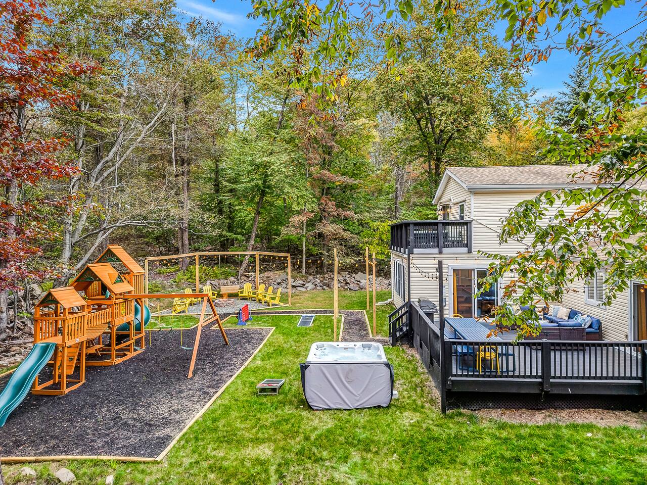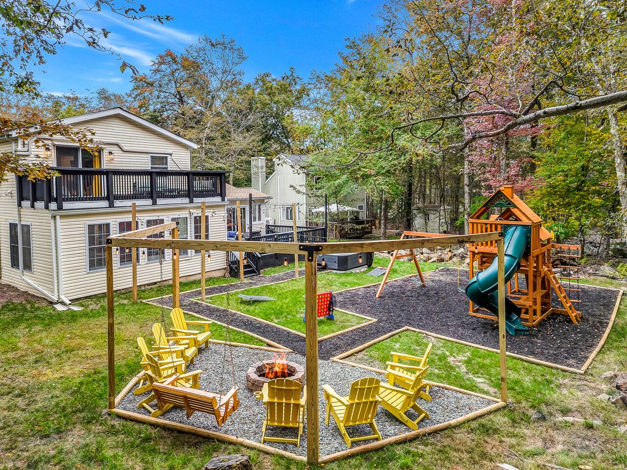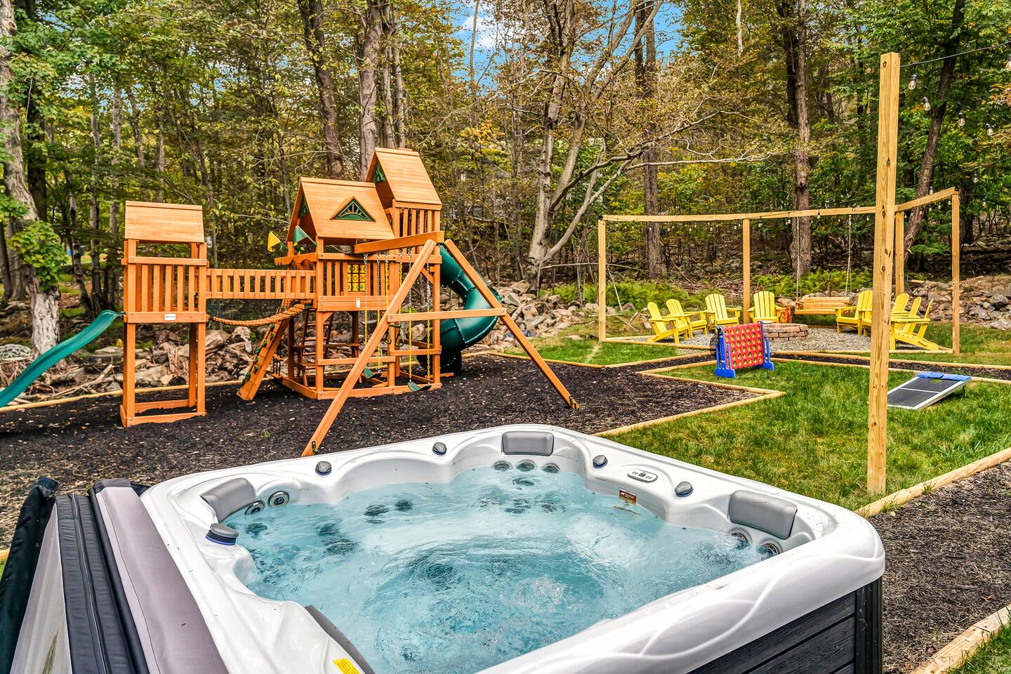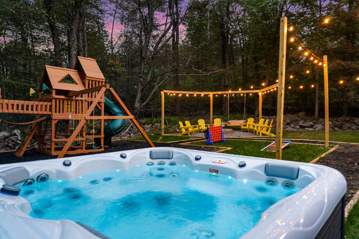 Welcome to your home away from home! We offer all the fun and games for you & your group, so that you never have to leave the house to enjoy your vacation! Hot tub, fire pit, HUGE jungle gym, pool table, ping pong, arcade room, & SO much more! 10 min - Mount Pocono 15 min - Kalahari 30 min - Big Boulder, Jack Frost Experience The Poconos With Us & Learn More Below!