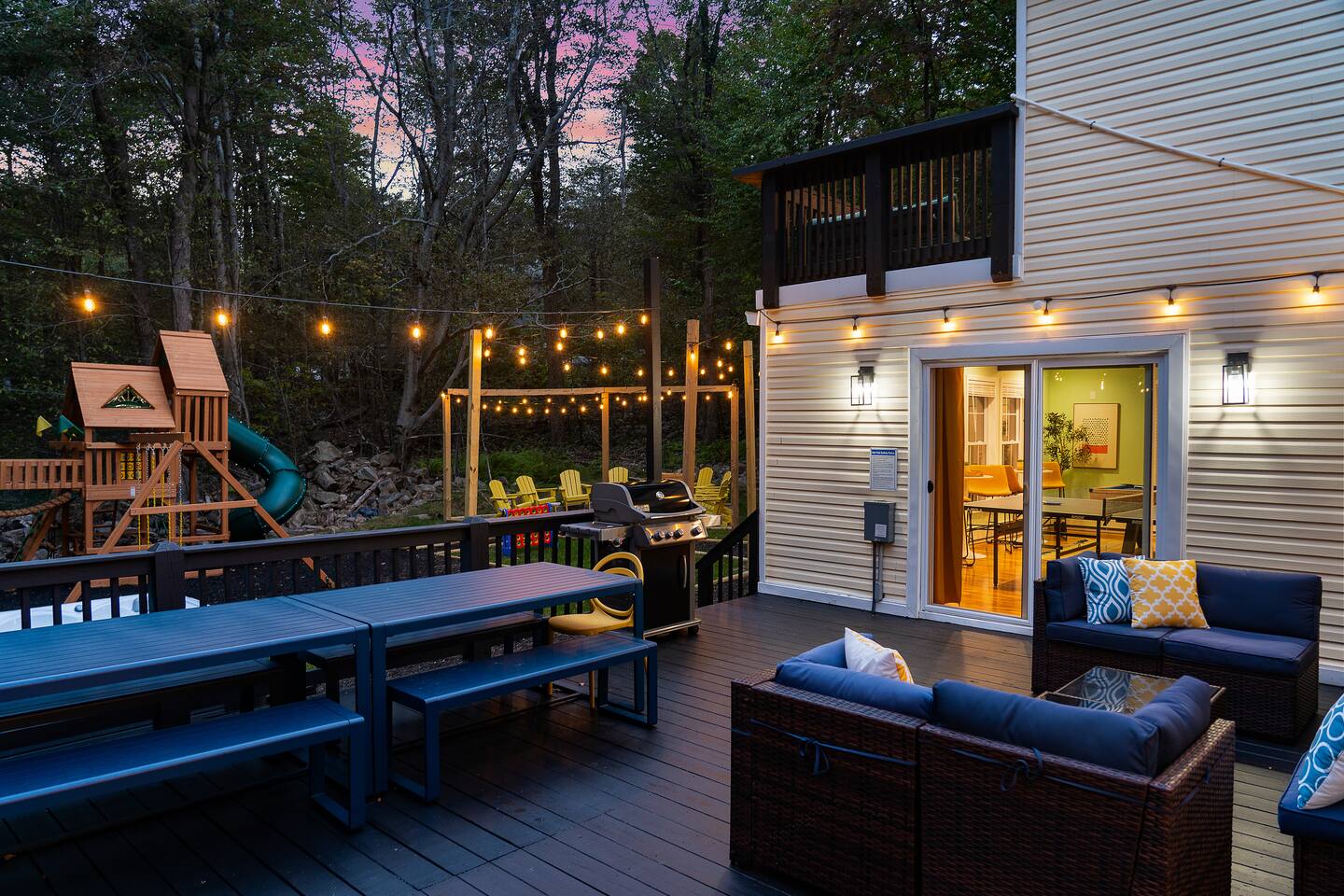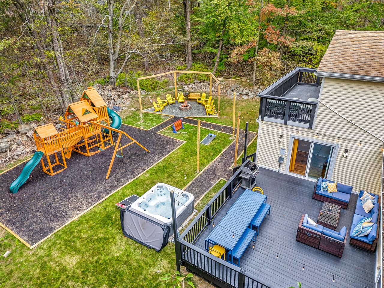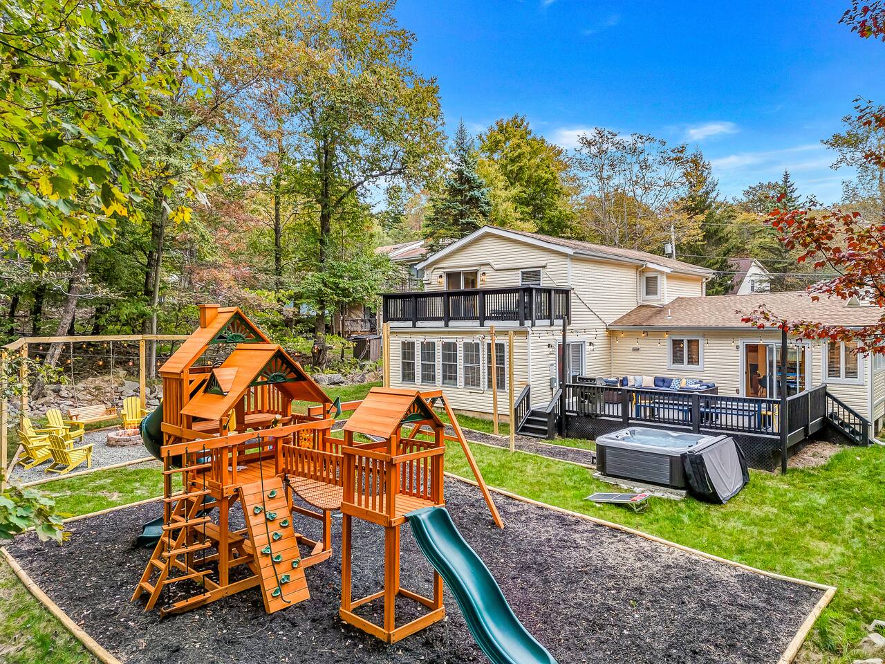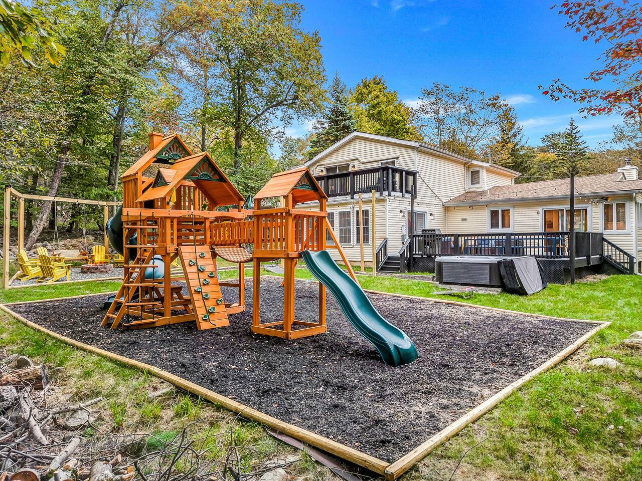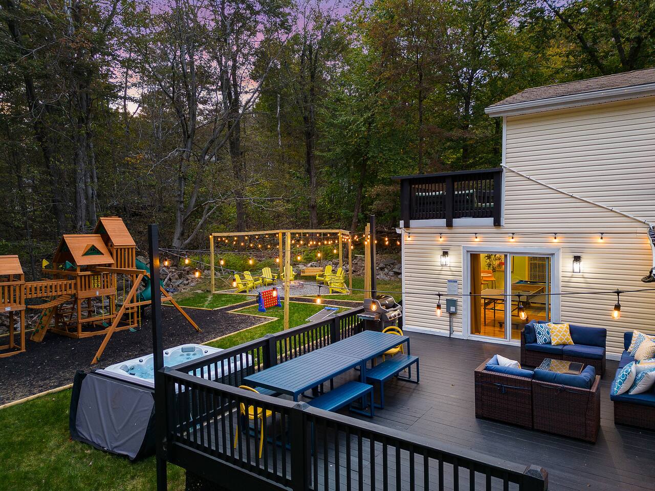 Welcome to your home away from home! We offer all the fun and games for you & your group, so that you never have to leave the house to enjoy your vacation! Hot tub, fire pit, HUGE jungle gym, pool table, ping pong, arcade room, & SO much more! 10 min - Mount Pocono 15 min - Kalahari 30 min - Big Boulder, Jack Frost Experience The Poconos With Us & Learn More Below!
