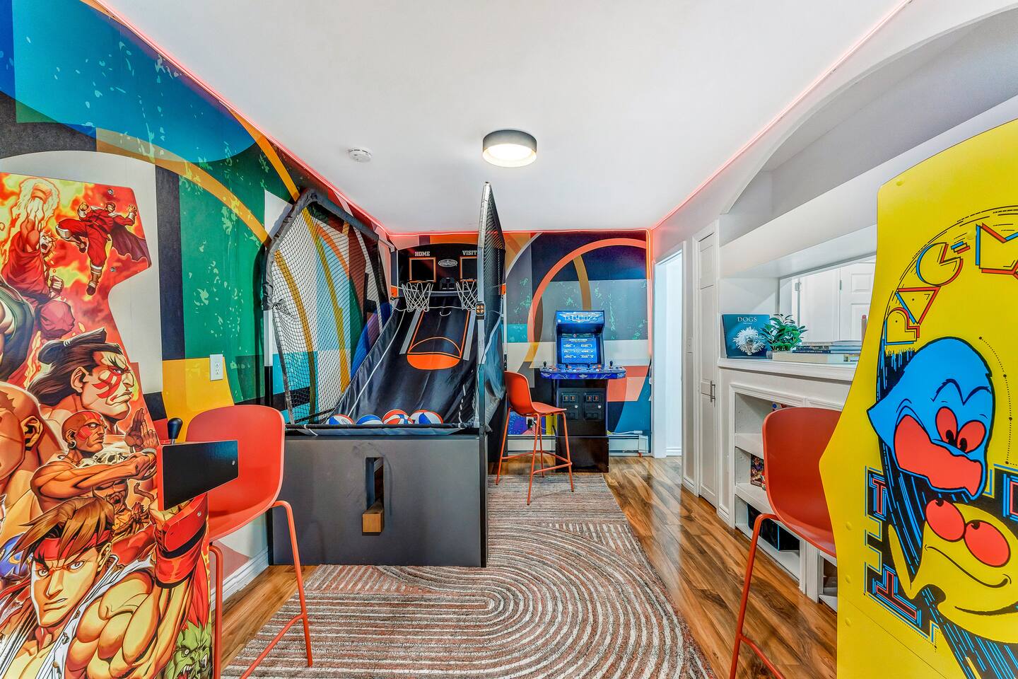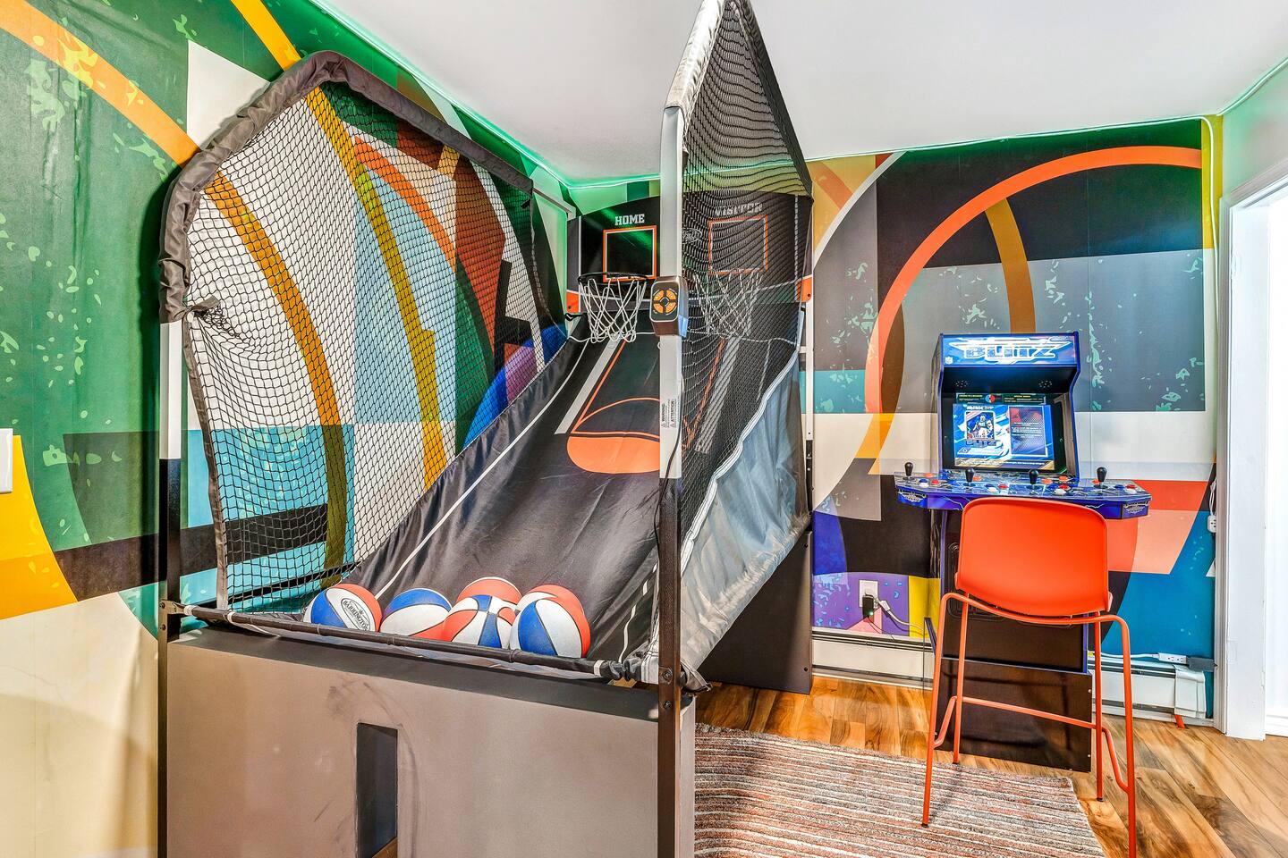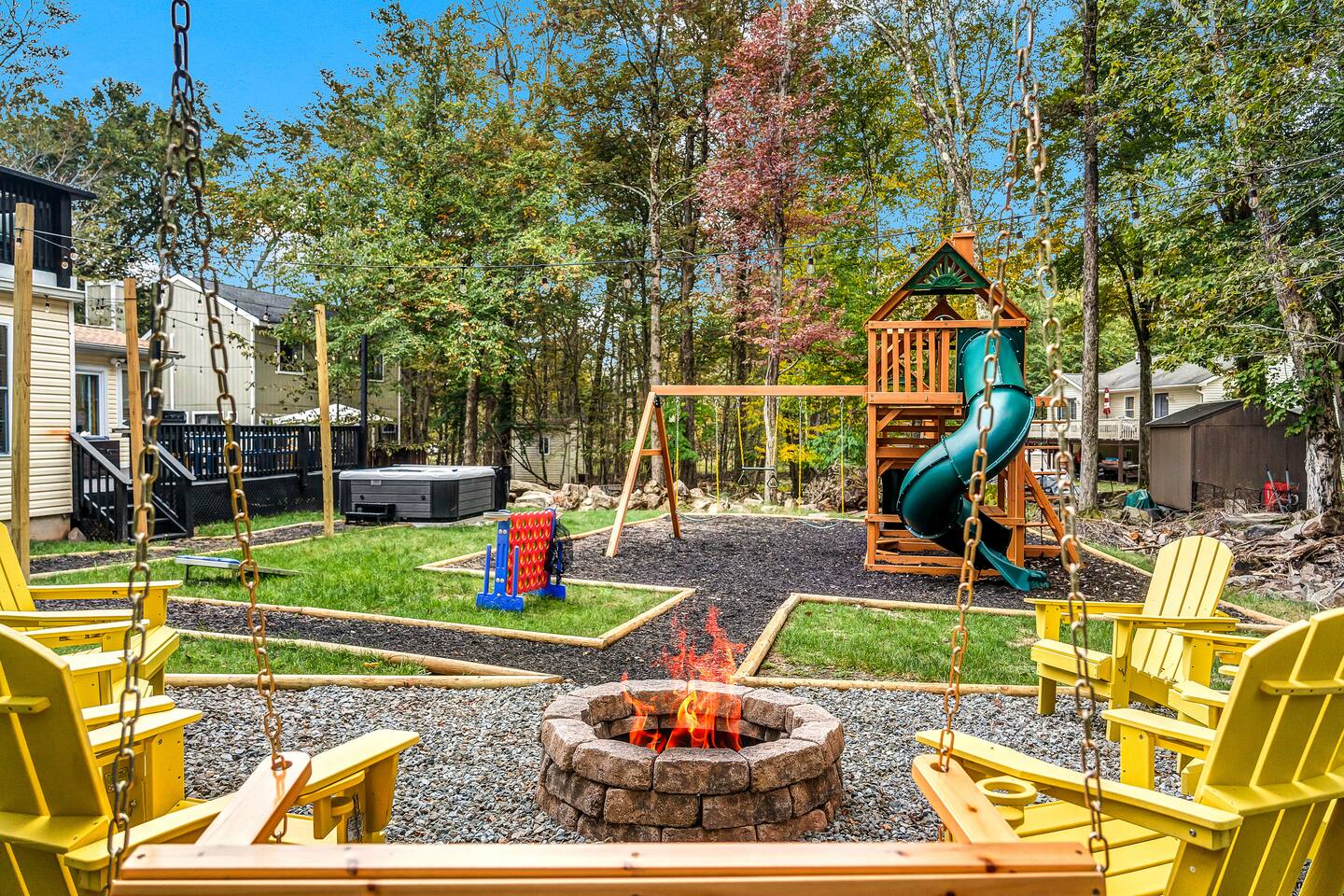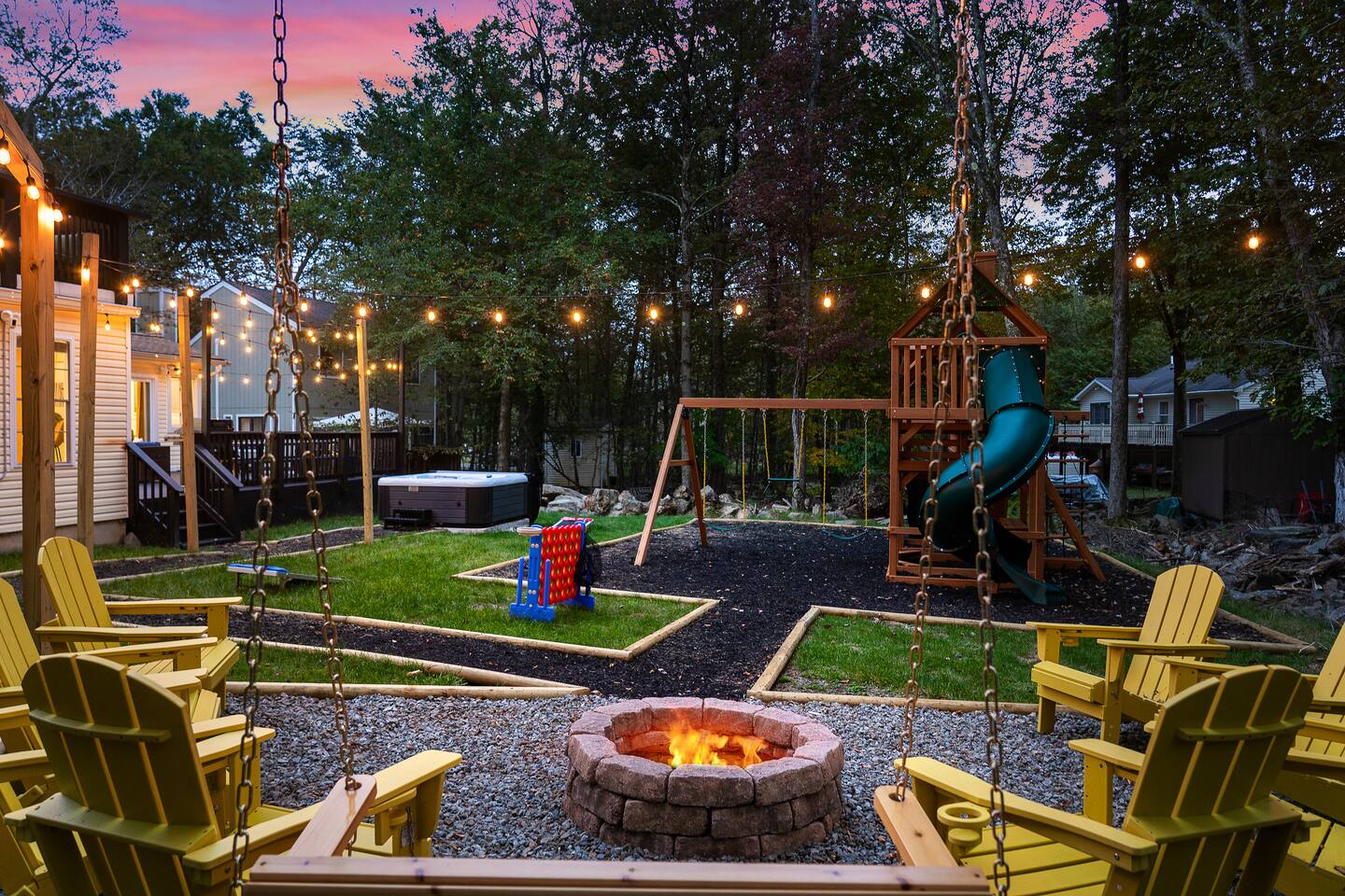 Welcome to your home away from home! We offer all the fun and games for you & your group, so that you never have to leave the house to enjoy your vacation! Hot tub, fire pit, HUGE jungle gym, pool table, ping pong, arcade room, & SO much more! 10 min - Mount Pocono 15 min - Kalahari 30 min - Big Boulder, Jack Frost Experience The Poconos With Us & Learn More Below!