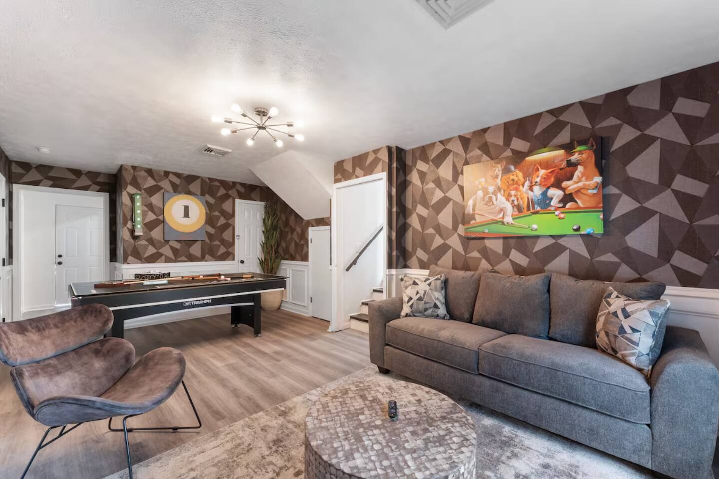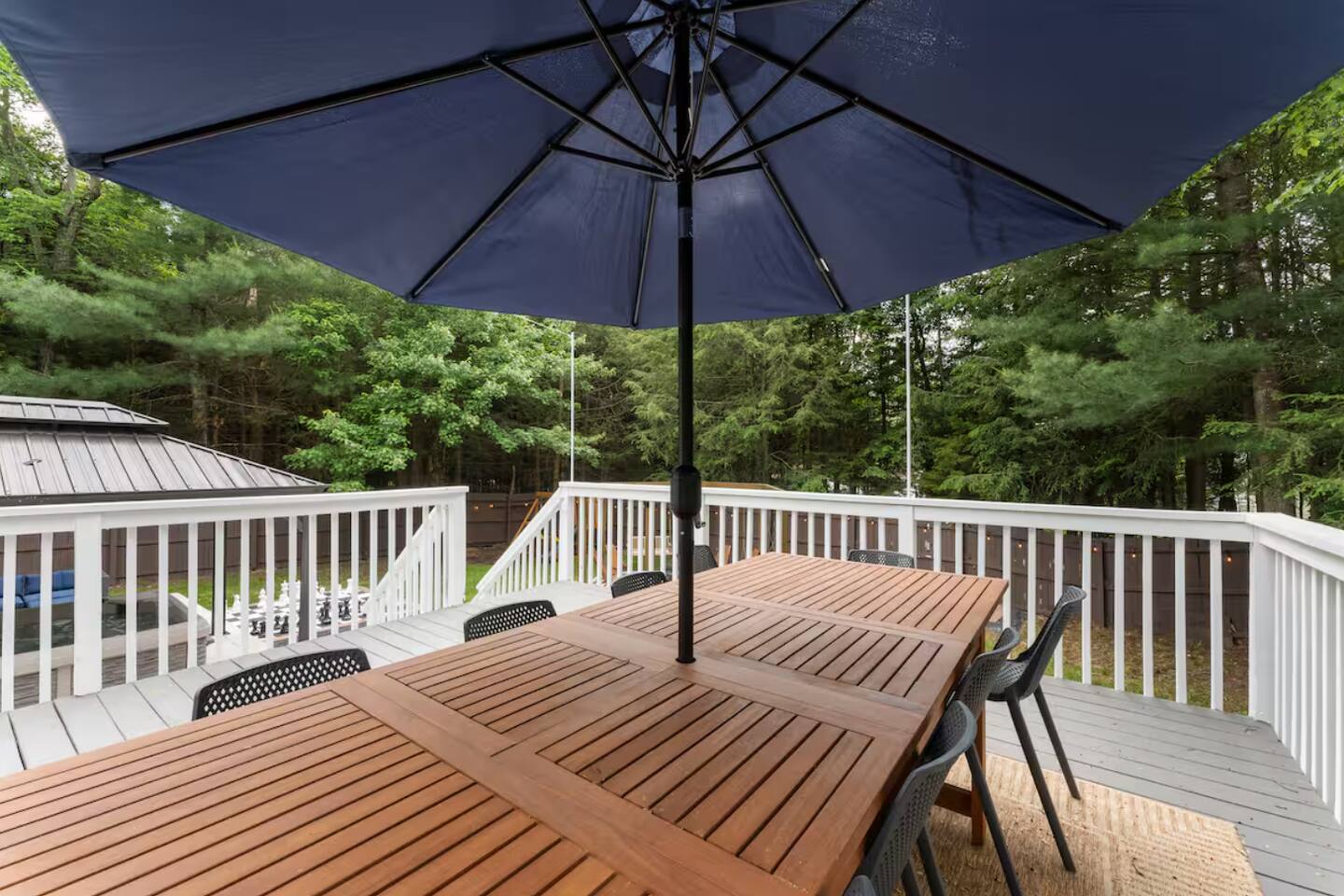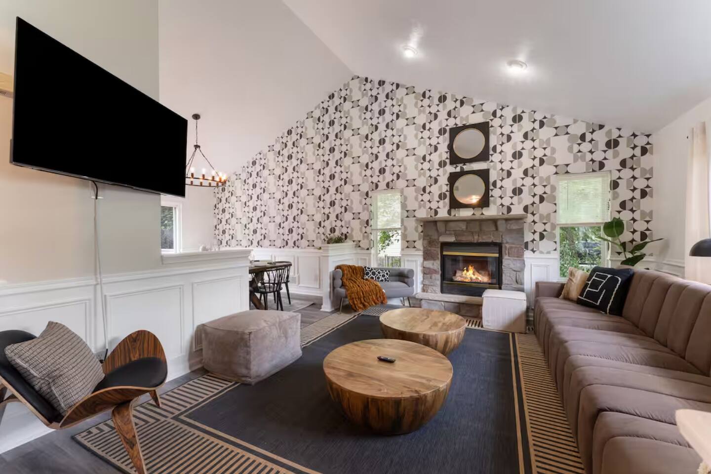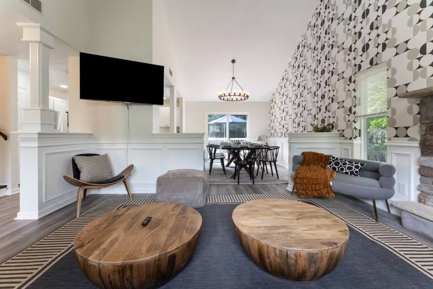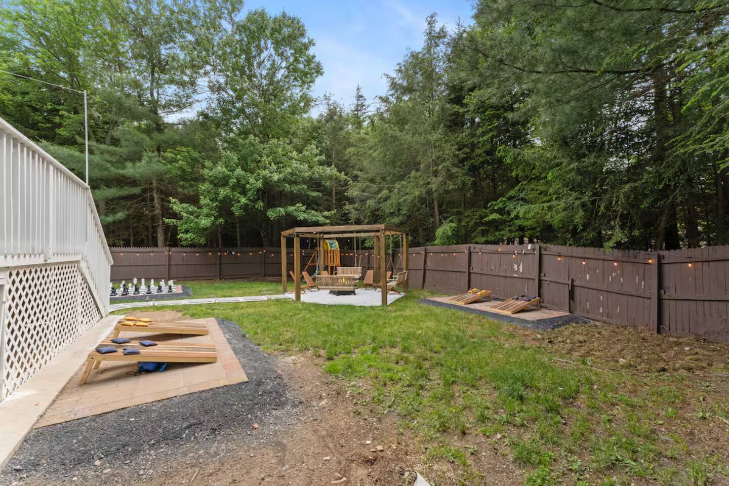 **During the summer months (Memorial Day weekend - Labor Day weekend), you will have the option to purchase amenity passes that allow you to access the following amenities** β Lakes (with beach access - swimming allowed!) β Pool KEY FEATURES: β 3 beautiful bedrooms; 1 king, 1 queen, 4 fulls (2 bunk beds), & 1 twin bed β 3 full bathrooms β Modern kitchen with new, stainless steel appliances β Open living room with lots of comfy seating & smart TV β Dining room with seating to comfortably accommodate 10 (+ outdoor dining) β Sleek game room with pool table & smart TV β AMAZING backyard, fully fenced with hot tub, fire pit, jungle gym, & more! Here Are A Few Kind Words From Our Past Guests: βThis was a great place to stay! The morning light through the windows was so beautiful. Overall, just a relaxing experience. The hosts were super responsive whenever I had a question. I would stay again!β - Emily βSabrina was very accommodating and communicative. the house is beautiful and very comfortable, close to nature hikes.β - Jennifer βThis place was lovely! Exactly as pictured! Very clean and excellent host experience!!! I plan to come back again!β - Regina ββ BEDROOMS ββ Each of the three bedrooms in this home has been beautifully designed to fit the modern aesthetic of this property. The master bedroom has one king bed & a smart TV, with an attached ensuite bathroom. The second bedroom has one queen bed & one twin bed, while the third bedroom has 2 full-over-full bunk beds (4 full size beds total). ββ BATHROOMS ββ There are three full bathrooms in this home. The master ensuite bathroom has a sink, toilet, and walk-in shower. The second bathroom on this floor also has a sink, toilet, and walk-in shower only. On the lower level, the third bathroom has a sink, toilet, and shower/tub combo. ββ KITCHEN & DINING ββ The modern kitchen is located right off of the main living areas, and is loaded with all new stainless steel appliances & a coffee station (including a Keurig & coffee pods). The dining room is right next to the kitchen, with enough seating to comfortably fit 10 people, with easy access directly out to the private deck & yard. ββ LIVING ROOM ββ In the living room, youβll be greeted with lots of comfy seating, a big smart TV, high vaulted ceilings, and modern design throughout. This is the perfect spot to host your movie nights & games with your friends and family! ββ GAME ROOM ββ Keep your family and friends entertained throughout your stay in our amenity-filled game room! Pool table, ping pong table, lounge seating, and a smart TV. Whether your reason for staying is to explore the town or stay at home and relax, this place will be the perfect spot to unwind! ββ OUTDOOR SPACE ββ This backyard is everything you could ask for, and more! β Hot tub β Fire pit (wood-burning) β Children's jungle gym β Giant Chess β Corn hole β Outdoor lounge seating β Covered outdoor dining β BBQ grill There is so much to do here, that all of your friends & family will be thoroughly entertained throughout your entire stay. No matter the season, this backyard has it all. Book your stay with us today and you will NOT be disappointed. Get ready for a vacation you will never forget! β β Book Now & Let Us Take Care Of You In The Poconos! ββ