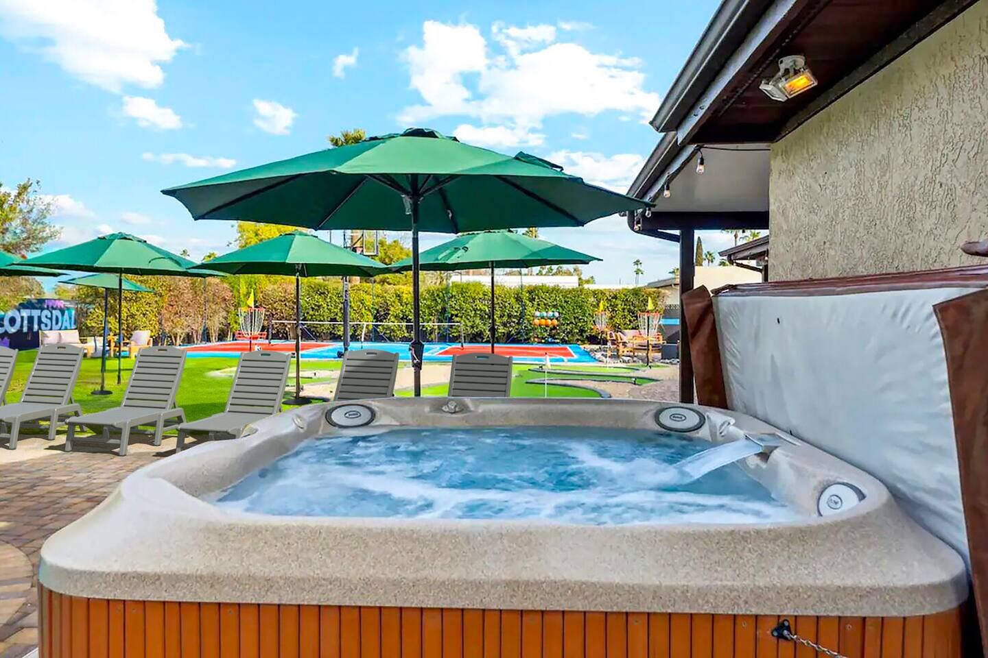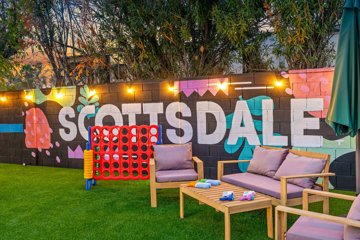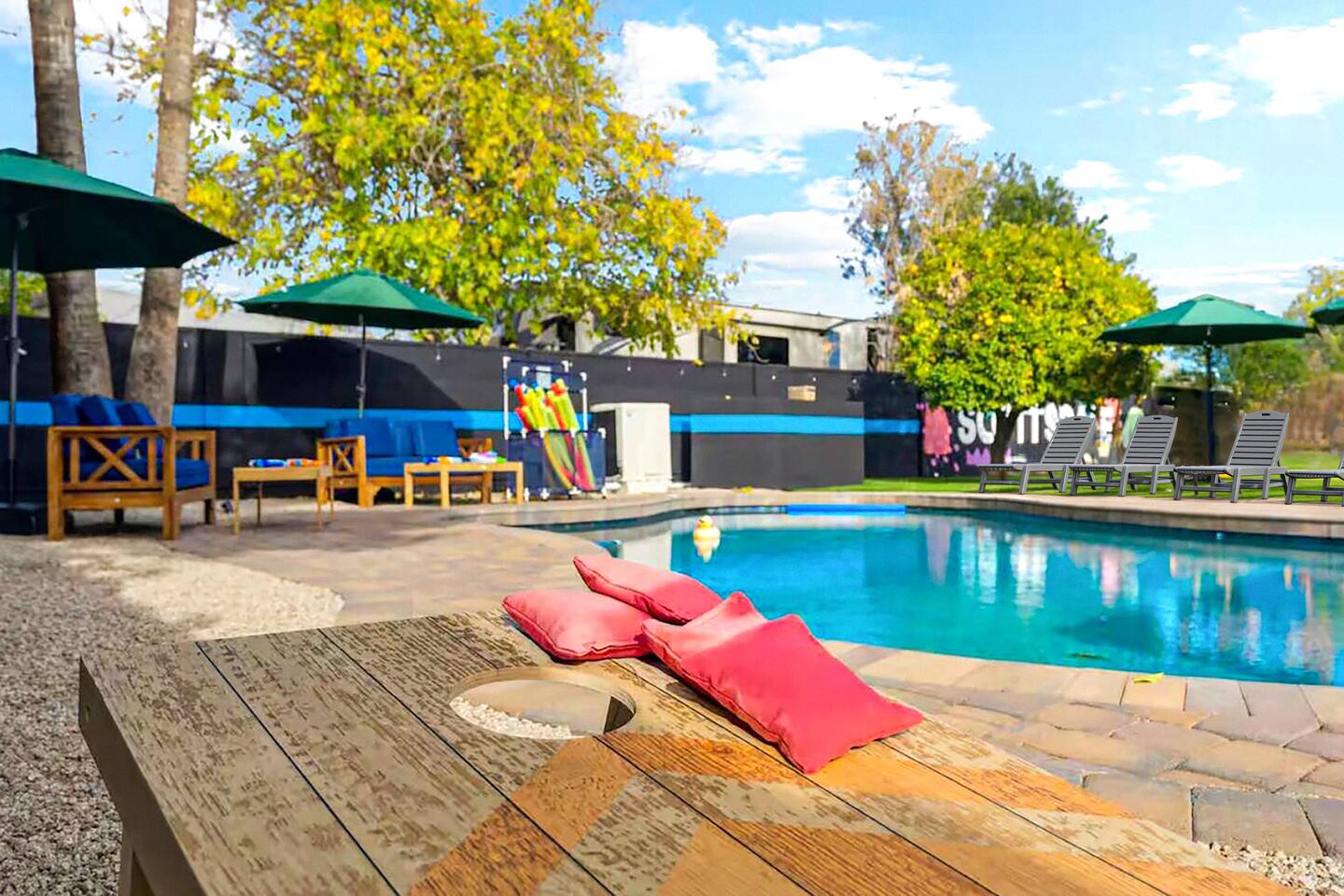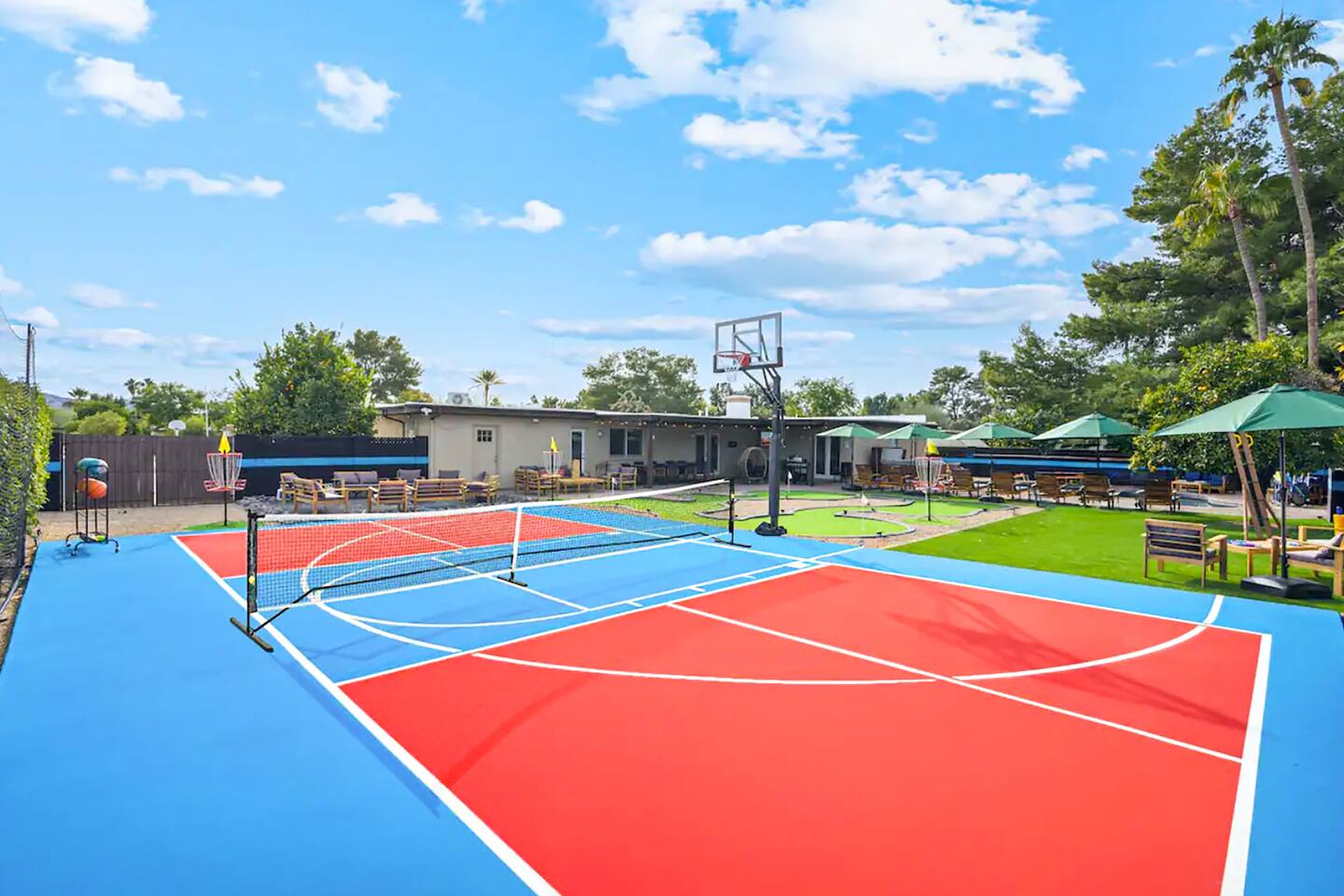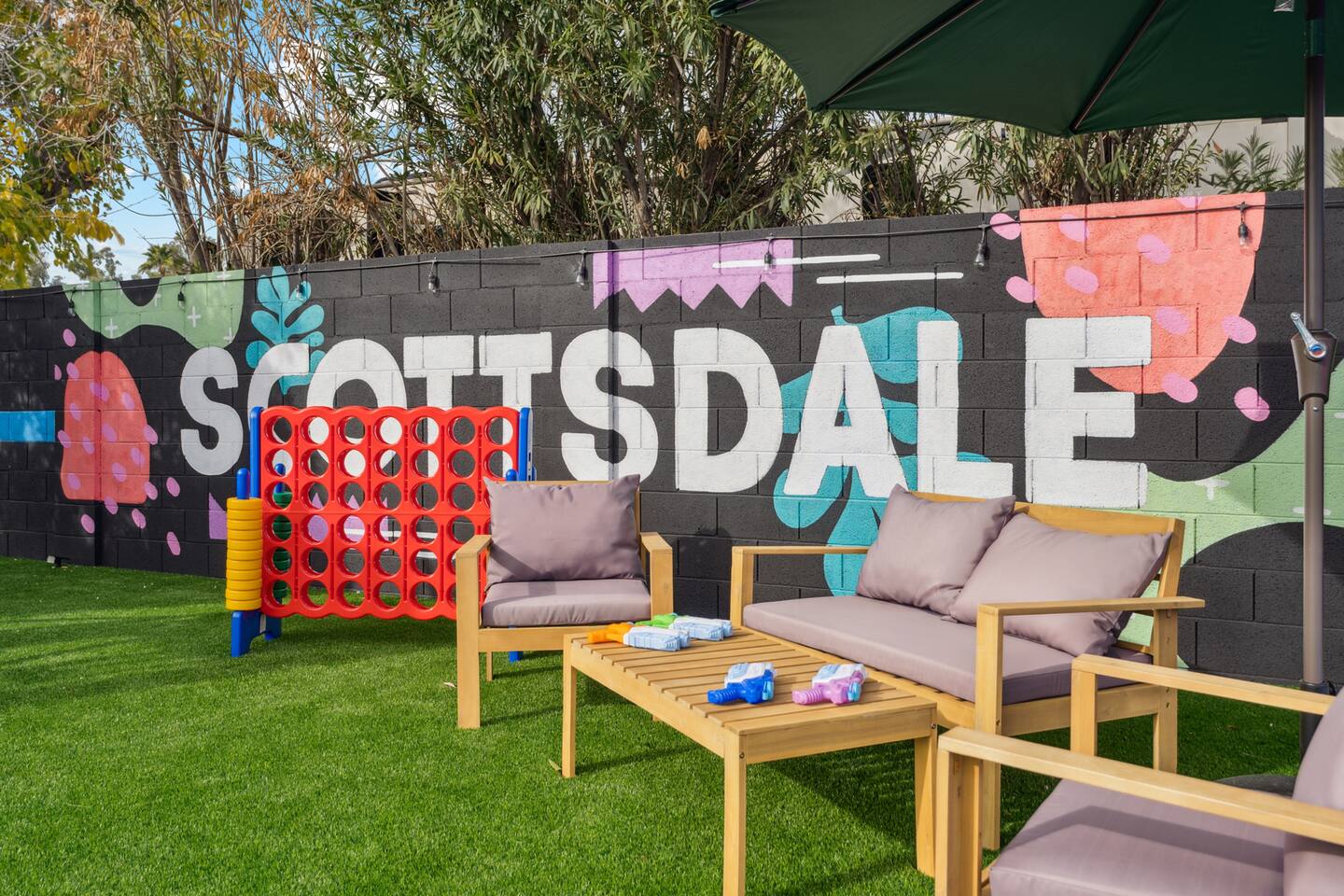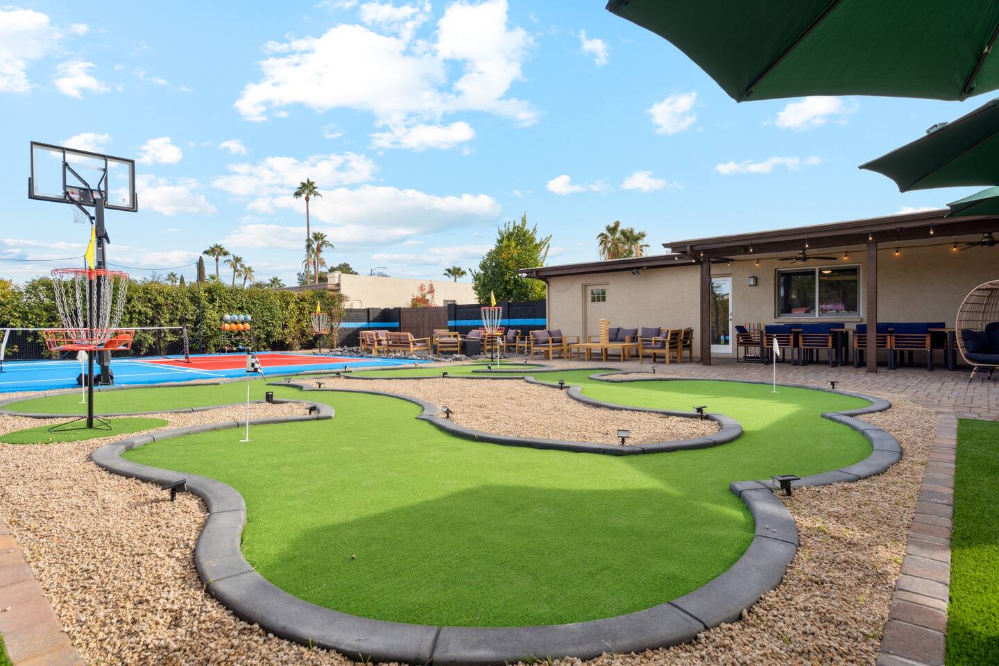 KEY FEATURES: ☀ 5 beautiful bedrooms; 1 king, 8 fulls, & 4 twin beds ☀ 2.5 modern bathrooms ☀ Modern kitchen with new, stainless steel appliances ☀ Open living room with lots of comfy seating & smart TV ☀ Dining room with seating to comfortably accommodate 14 (+ outdoor dining options) ☀ Bright, vibrant game rooms with pool table, air hockey, & more! ☀ UNBELIEVABLE backyard; heated pool, hot tub, fire pit, mini golf, basketball court, & much more! Here Are A Few Kind Words From Our Past Guests: “This was a great place to stay! The morning light through the windows was so beautiful. Overall, just a relaxing experience. The hosts were super responsive whenever I had a question. I would stay again!” - Emily “Sabrina was very accommodating and communicative. the house is beautiful and very comfortable, close to nature hikes.” - Jennifer “This place was lovely! Exactly as pictured! Very clean and excellent host experience!!! I plan to come back again!” - Regina ☆☆ BEDROOMS ☆☆ You'll find 5 bedrooms throughout this home. The first bedroom has a king bed. The second & third bedrooms have two full beds in each. The fourth bedroom has two twin-over-twin bunks, while the fifth bedroom has two full-over-full bunks, & is also LOADED with games & entertainment! ☆☆ BATHROOMS ☆☆ There are two and a half modern bathrooms throughout the home. The ensuite master bathroom has 2 sinks, a toilet, & a walk-in shower. The full hallway bathroom has a sink, toilet, & shower/tub combo. The final bathroom has a sink & toilet only. ☆☆ KITCHEN & DINING ☆☆ The modern kitchen is located right off of the main living areas, and is loaded with all new stainless steel appliances & a coffee station (including a Keurig & coffee pods). The dining rooms are right next to the kitchen, with enough seating to comfortably fit 14 people (between two dining rooms), + lots of room for outdoor dining! ☆☆ LIVING ROOM ☆☆ In the living room, you’ll be greeted with lots of comfy seating, a big smart TV, and a beautiful, bright design that is carried throughout the rest of the home. This is the perfect spot to host your movie nights & games with your friends and family! ☆☆ GAME ROOM ☆☆ There are TWO amazing game rooms in this home! The first is filled with a pool table, high top seating, & a smart TV, while the second has air hockey, shuffleboard, comfy seating, & another smart TV. Tons of fun - everywhere! ☆☆ OUTDOOR SPACE ☆☆ This backyard is everything you could ask for, and more! ☀ Heated pool ☀ Hot tub ☀ Mini golf ☀ Basketball court ☀ Pickleball court ☀ Frisbee golf ☀ Ping pong ☀ Fire pit ☀ Corn hole ☀ Giant Connect 4 ☀ Giant Jenga ☀ BBQ grill ☀ Sun bathing chairs ☀ Lounge seating ☀ Covered outdoor dining There is so much to do here, that all of your friends & family will be thoroughly entertained throughout your entire stay. No matter the season, this backyard has it all. Book your stay with us today and you will NOT be disappointed. Get ready for a vacation you will never forget! ★☆ Book Now & Let Us Take Care Of You In Scottsdale! ☆★