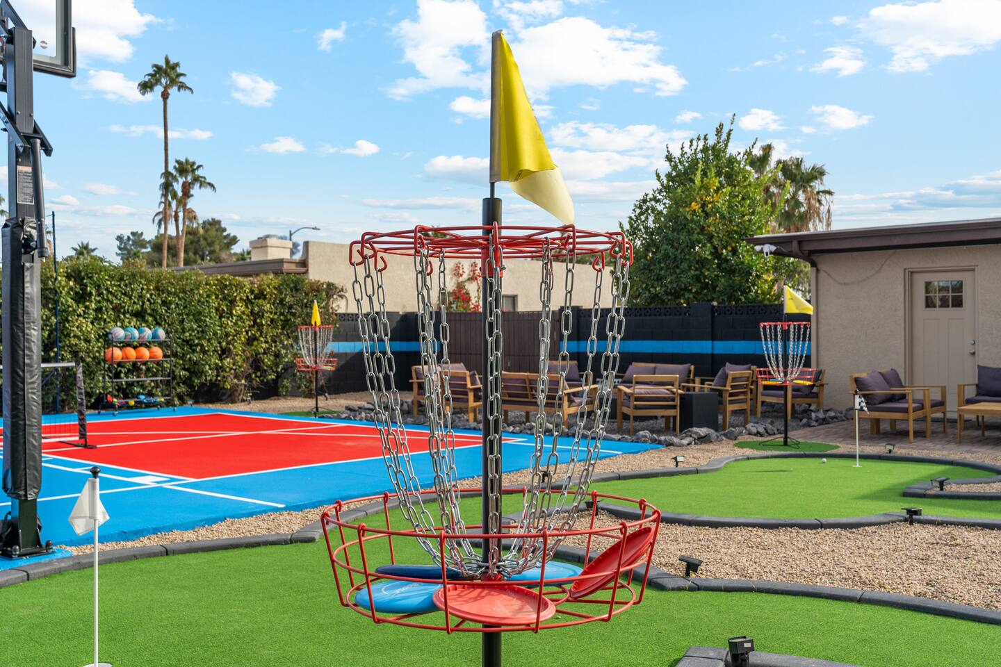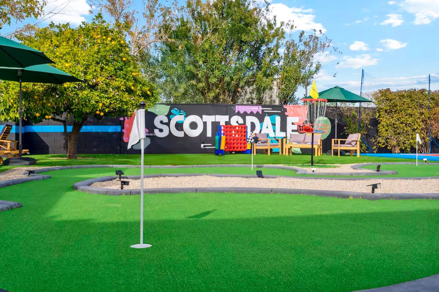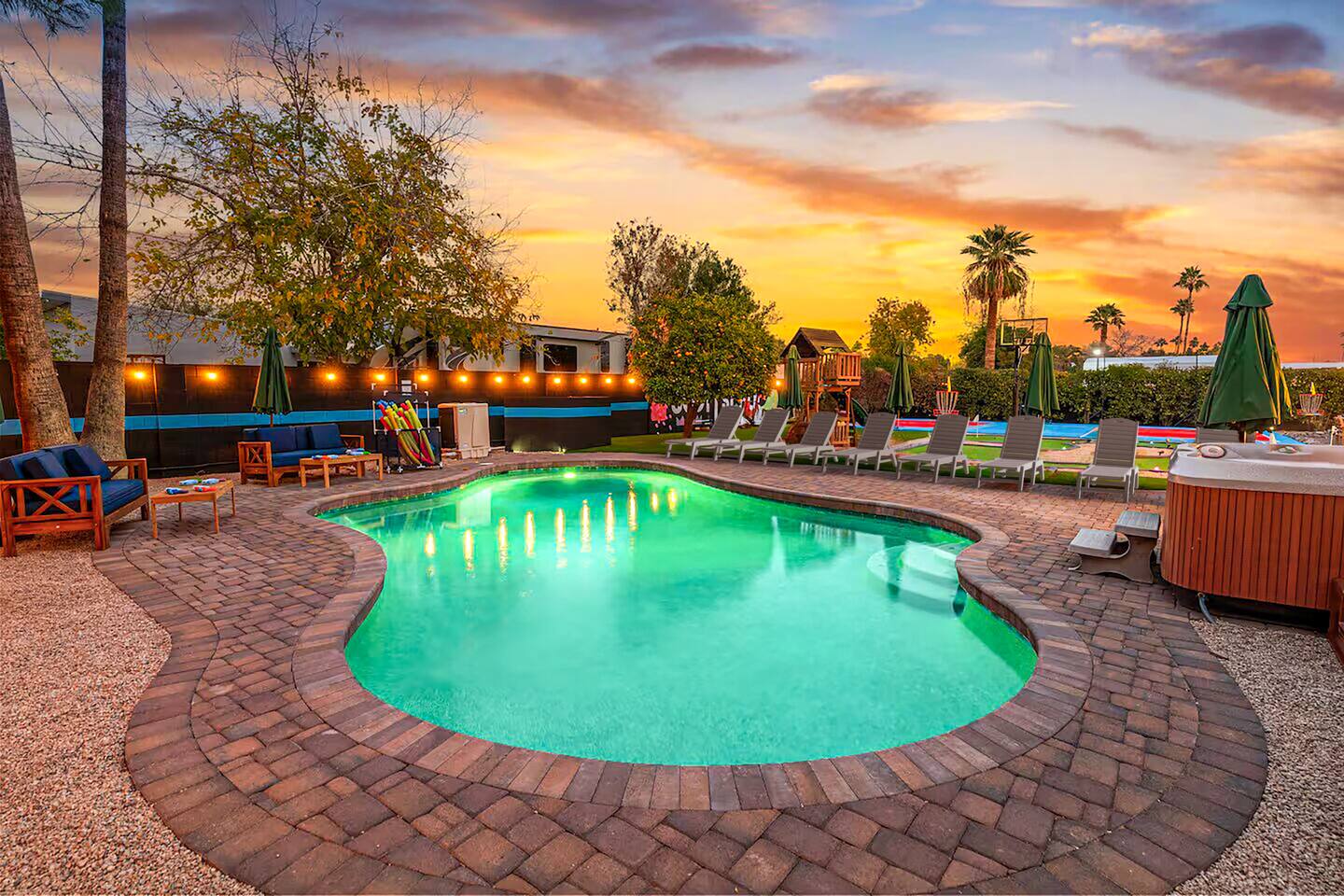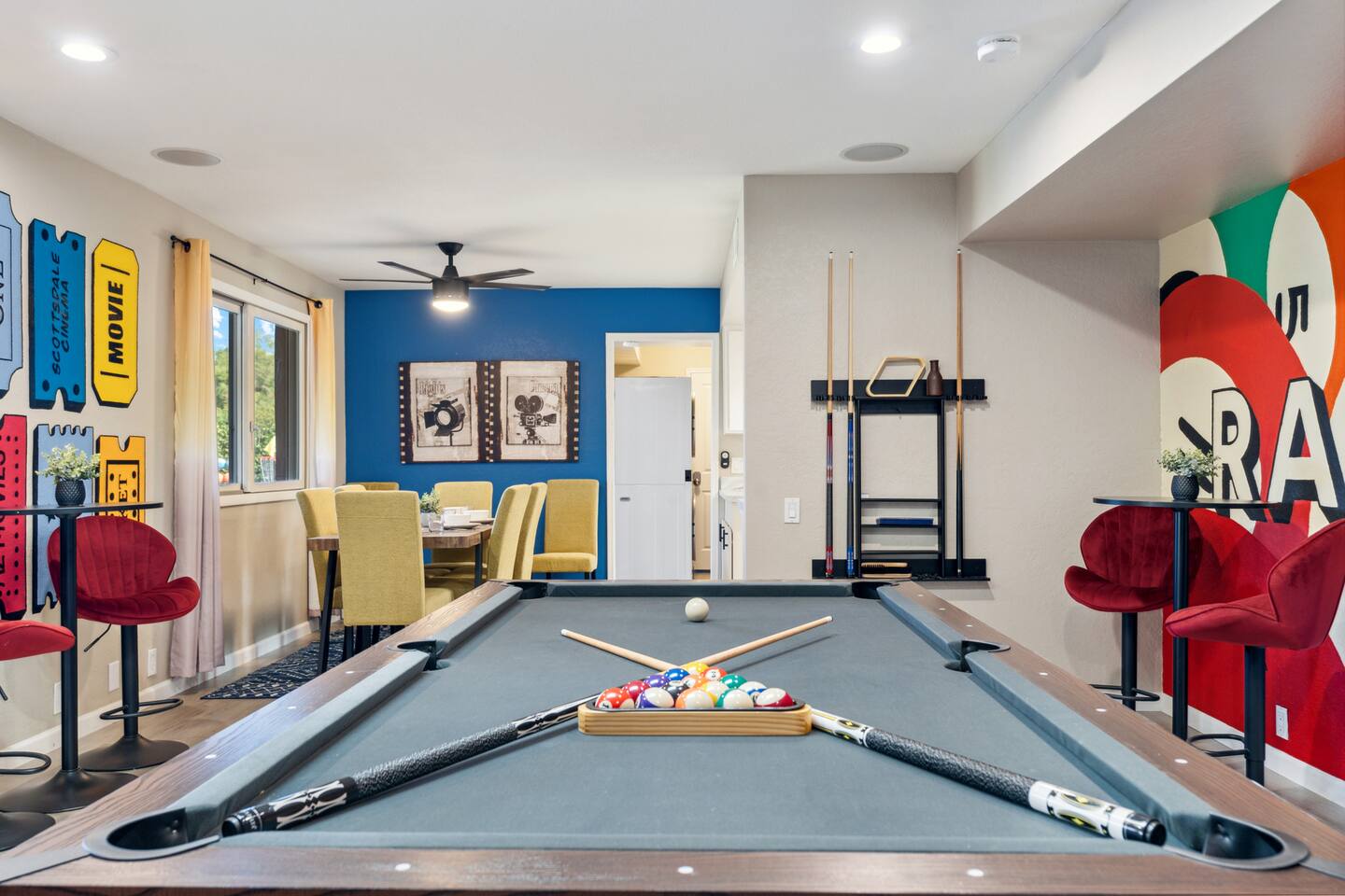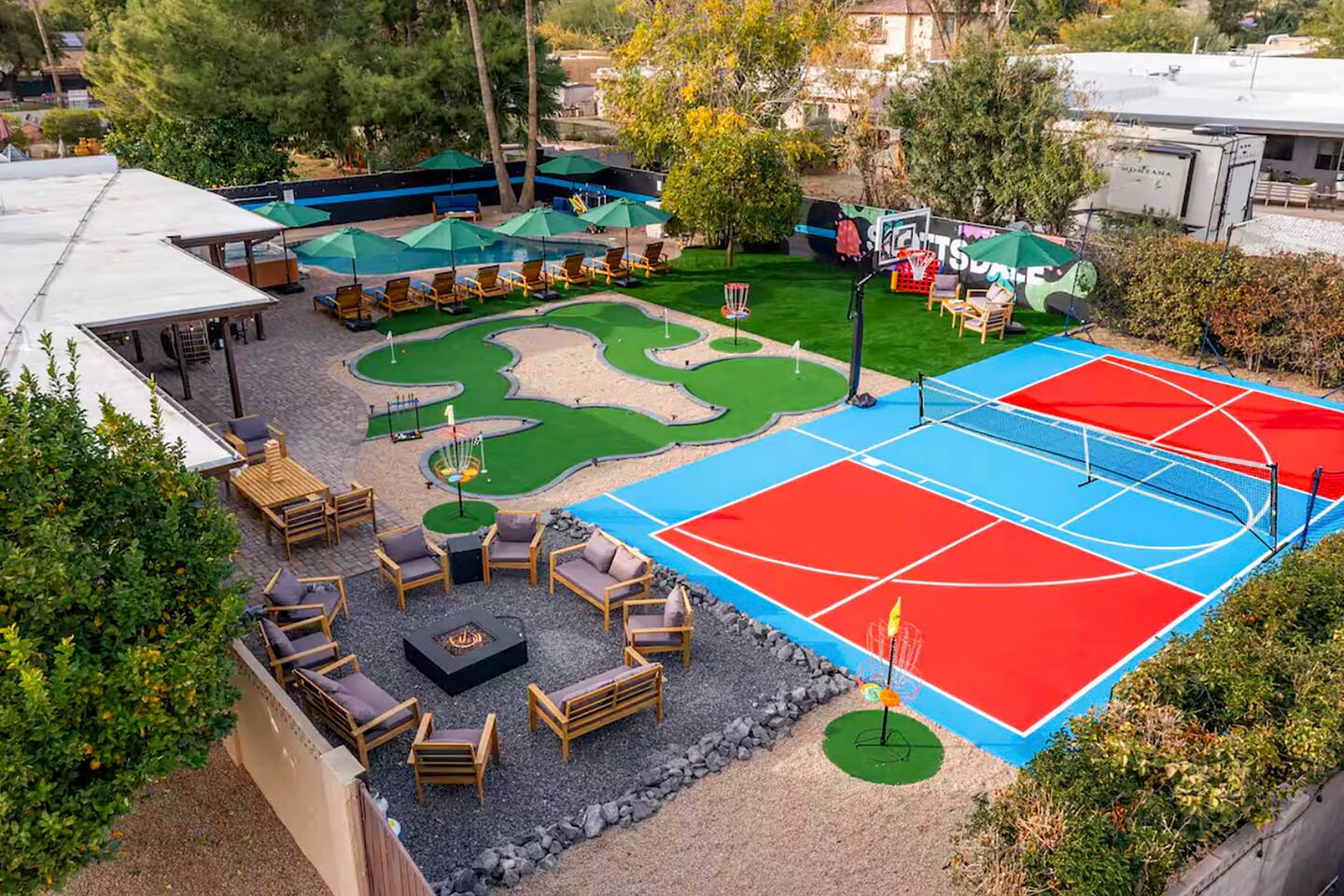 KEY FEATURES: ☀ 5 beautiful bedrooms; 1 king, 8 fulls, & 4 twin beds ☀ 2.5 modern bathrooms ☀ Modern kitchen with new, stainless steel appliances ☀ Open living room with lots of comfy seating & smart TV ☀ Dining room with seating to comfortably accommodate 14 (+ outdoor dining options) ☀ Bright, vibrant game rooms with pool table, air hockey, & more! ☀ UNBELIEVABLE backyard; heated pool, hot tub, fire pit, mini golf, basketball court, & much more! Here Are A Few Kind Words From Our Past Guests: “This was a great place to stay! The morning light through the windows was so beautiful. Overall, just a relaxing experience. The hosts were super responsive whenever I had a question. I would stay again!” - Emily “Sabrina was very accommodating and communicative. the house is beautiful and very comfortable, close to nature hikes.” - Jennifer “This place was lovely! Exactly as pictured! Very clean and excellent host experience!!! I plan to come back again!” - Regina ☆☆ BEDROOMS ☆☆ You'll find 5 bedrooms throughout this home. The first bedroom has a king bed. The second & third bedrooms have two full beds in each. The fourth bedroom has two twin-over-twin bunks, while the fifth bedroom has two full-over-full bunks, & is also LOADED with games & entertainment! ☆☆ BATHROOMS ☆☆ There are two and a half modern bathrooms throughout the home. The ensuite master bathroom has 2 sinks, a toilet, & a walk-in shower. The full hallway bathroom has a sink, toilet, & shower/tub combo. The final bathroom has a sink & toilet only. ☆☆ KITCHEN & DINING ☆☆ The modern kitchen is located right off of the main living areas, and is loaded with all new stainless steel appliances & a coffee station (including a Keurig & coffee pods). The dining rooms are right next to the kitchen, with enough seating to comfortably fit 14 people (between two dining rooms), + lots of room for outdoor dining! ☆☆ LIVING ROOM ☆☆ In the living room, you’ll be greeted with lots of comfy seating, a big smart TV, and a beautiful, bright design that is carried throughout the rest of the home. This is the perfect spot to host your movie nights & games with your friends and family! ☆☆ GAME ROOM ☆☆ There are TWO amazing game rooms in this home! The first is filled with a pool table, high top seating, & a smart TV, while the second has air hockey, shuffleboard, comfy seating, & another smart TV. Tons of fun - everywhere! ☆☆ OUTDOOR SPACE ☆☆ This backyard is everything you could ask for, and more! ☀ Heated pool ☀ Hot tub ☀ Mini golf ☀ Basketball court ☀ Pickleball court ☀ Frisbee golf ☀ Ping pong ☀ Fire pit ☀ Corn hole ☀ Giant Connect 4 ☀ Giant Jenga ☀ BBQ grill ☀ Sun bathing chairs ☀ Lounge seating ☀ Covered outdoor dining There is so much to do here, that all of your friends & family will be thoroughly entertained throughout your entire stay. No matter the season, this backyard has it all. Book your stay with us today and you will NOT be disappointed. Get ready for a vacation you will never forget! ★☆ Book Now & Let Us Take Care Of You In Scottsdale! ☆★