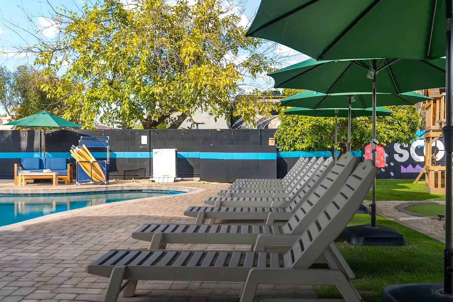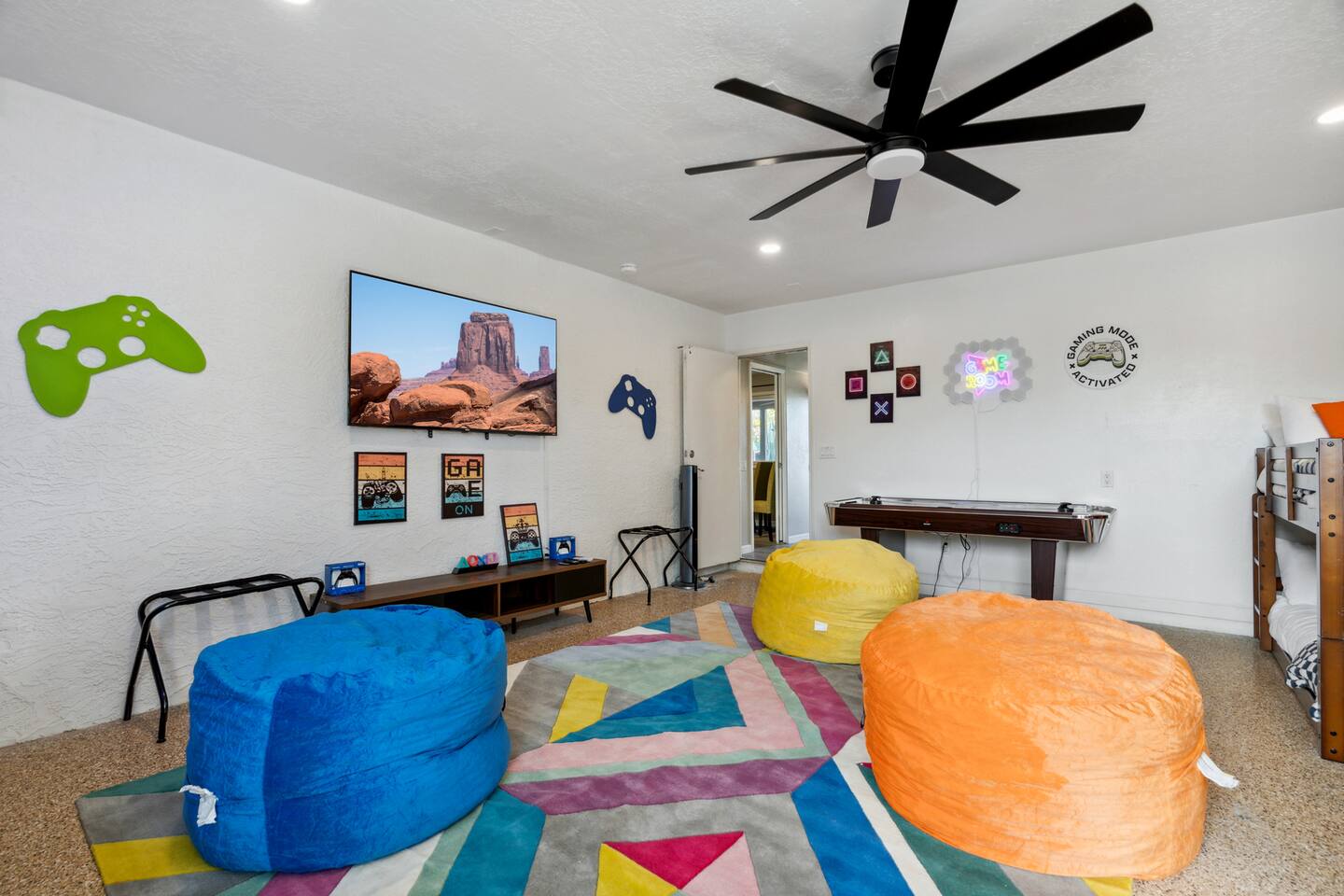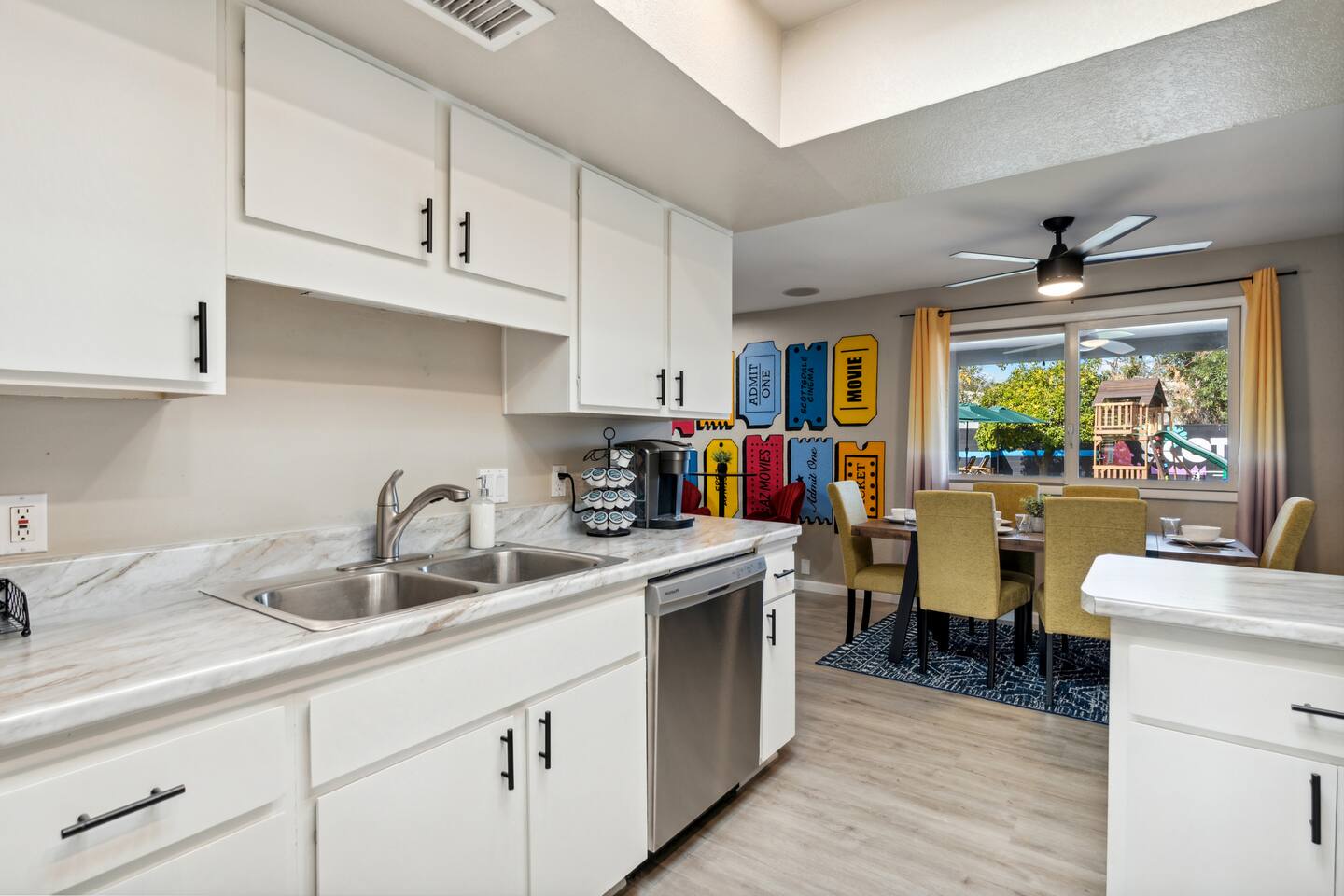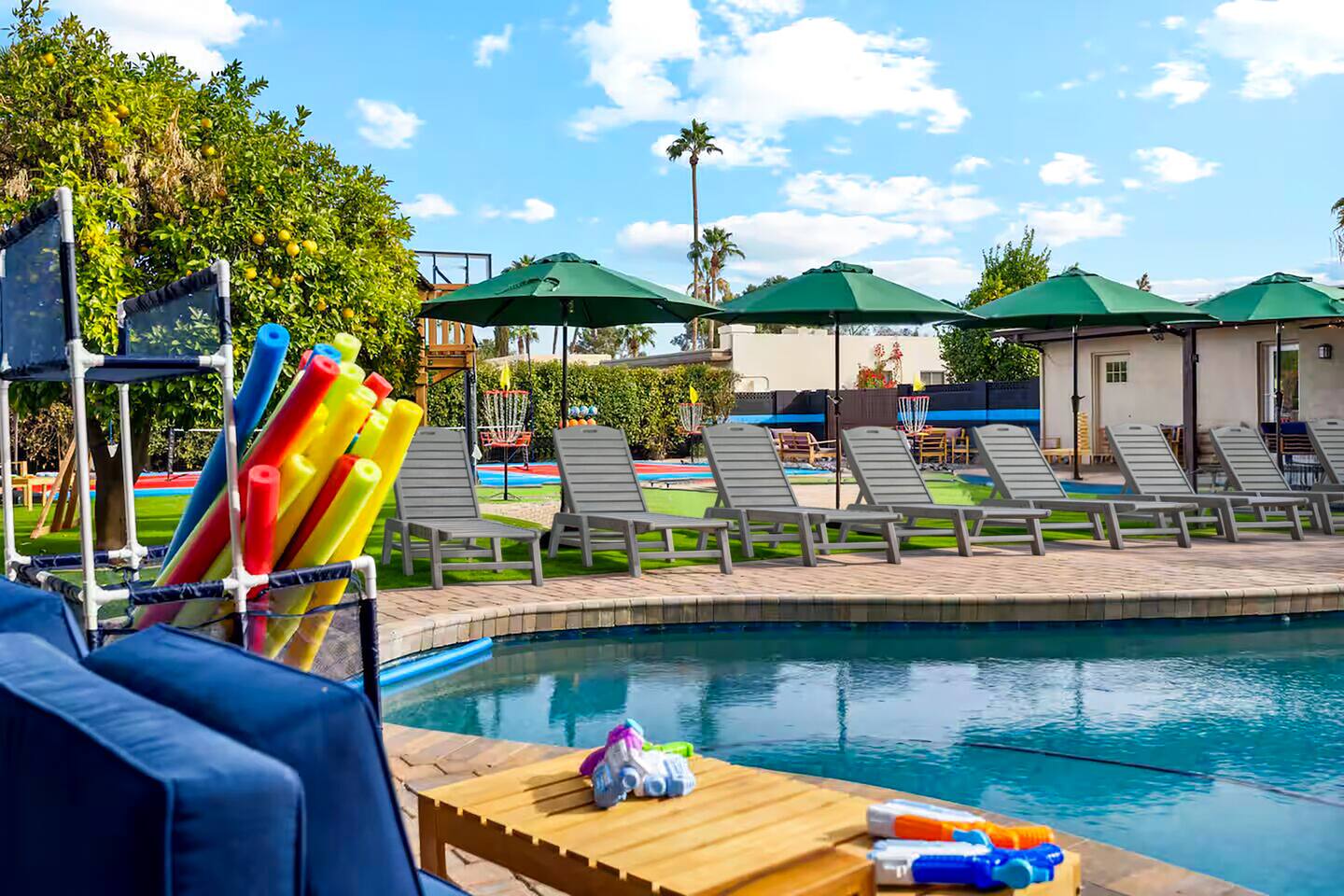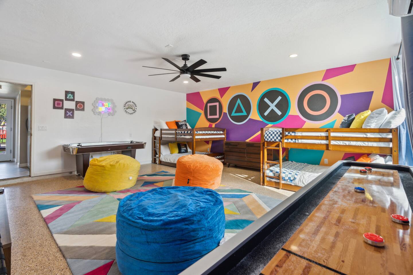 KEY FEATURES: ☀ 5 beautiful bedrooms; 1 king, 8 fulls, & 4 twin beds ☀ 2.5 modern bathrooms ☀ Modern kitchen with new, stainless steel appliances ☀ Open living room with lots of comfy seating & smart TV ☀ Dining room with seating to comfortably accommodate 14 (+ outdoor dining options) ☀ Bright, vibrant game rooms with pool table, air hockey, & more! ☀ UNBELIEVABLE backyard; heated pool, hot tub, fire pit, mini golf, basketball court, & much more! Here Are A Few Kind Words From Our Past Guests: “This was a great place to stay! The morning light through the windows was so beautiful. Overall, just a relaxing experience. The hosts were super responsive whenever I had a question. I would stay again!” - Emily “Sabrina was very accommodating and communicative. the house is beautiful and very comfortable, close to nature hikes.” - Jennifer “This place was lovely! Exactly as pictured! Very clean and excellent host experience!!! I plan to come back again!” - Regina ☆☆ BEDROOMS ☆☆ You'll find 5 bedrooms throughout this home. The first bedroom has a king bed. The second & third bedrooms have two full beds in each. The fourth bedroom has two twin-over-twin bunks, while the fifth bedroom has two full-over-full bunks, & is also LOADED with games & entertainment! ☆☆ BATHROOMS ☆☆ There are two and a half modern bathrooms throughout the home. The ensuite master bathroom has 2 sinks, a toilet, & a walk-in shower. The full hallway bathroom has a sink, toilet, & shower/tub combo. The final bathroom has a sink & toilet only. ☆☆ KITCHEN & DINING ☆☆ The modern kitchen is located right off of the main living areas, and is loaded with all new stainless steel appliances & a coffee station (including a Keurig & coffee pods). The dining rooms are right next to the kitchen, with enough seating to comfortably fit 14 people (between two dining rooms), + lots of room for outdoor dining! ☆☆ LIVING ROOM ☆☆ In the living room, you’ll be greeted with lots of comfy seating, a big smart TV, and a beautiful, bright design that is carried throughout the rest of the home. This is the perfect spot to host your movie nights & games with your friends and family! ☆☆ GAME ROOM ☆☆ There are TWO amazing game rooms in this home! The first is filled with a pool table, high top seating, & a smart TV, while the second has air hockey, shuffleboard, comfy seating, & another smart TV. Tons of fun - everywhere! ☆☆ OUTDOOR SPACE ☆☆ This backyard is everything you could ask for, and more! ☀ Heated pool ☀ Hot tub ☀ Mini golf ☀ Basketball court ☀ Pickleball court ☀ Frisbee golf ☀ Ping pong ☀ Fire pit ☀ Corn hole ☀ Giant Connect 4 ☀ Giant Jenga ☀ BBQ grill ☀ Sun bathing chairs ☀ Lounge seating ☀ Covered outdoor dining There is so much to do here, that all of your friends & family will be thoroughly entertained throughout your entire stay. No matter the season, this backyard has it all. Book your stay with us today and you will NOT be disappointed. Get ready for a vacation you will never forget! ★☆ Book Now & Let Us Take Care Of You In Scottsdale! ☆★