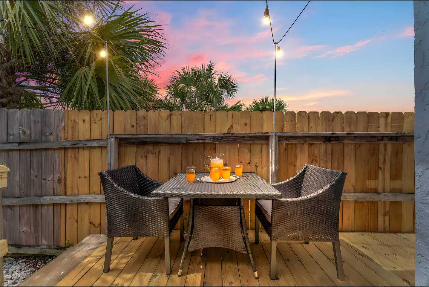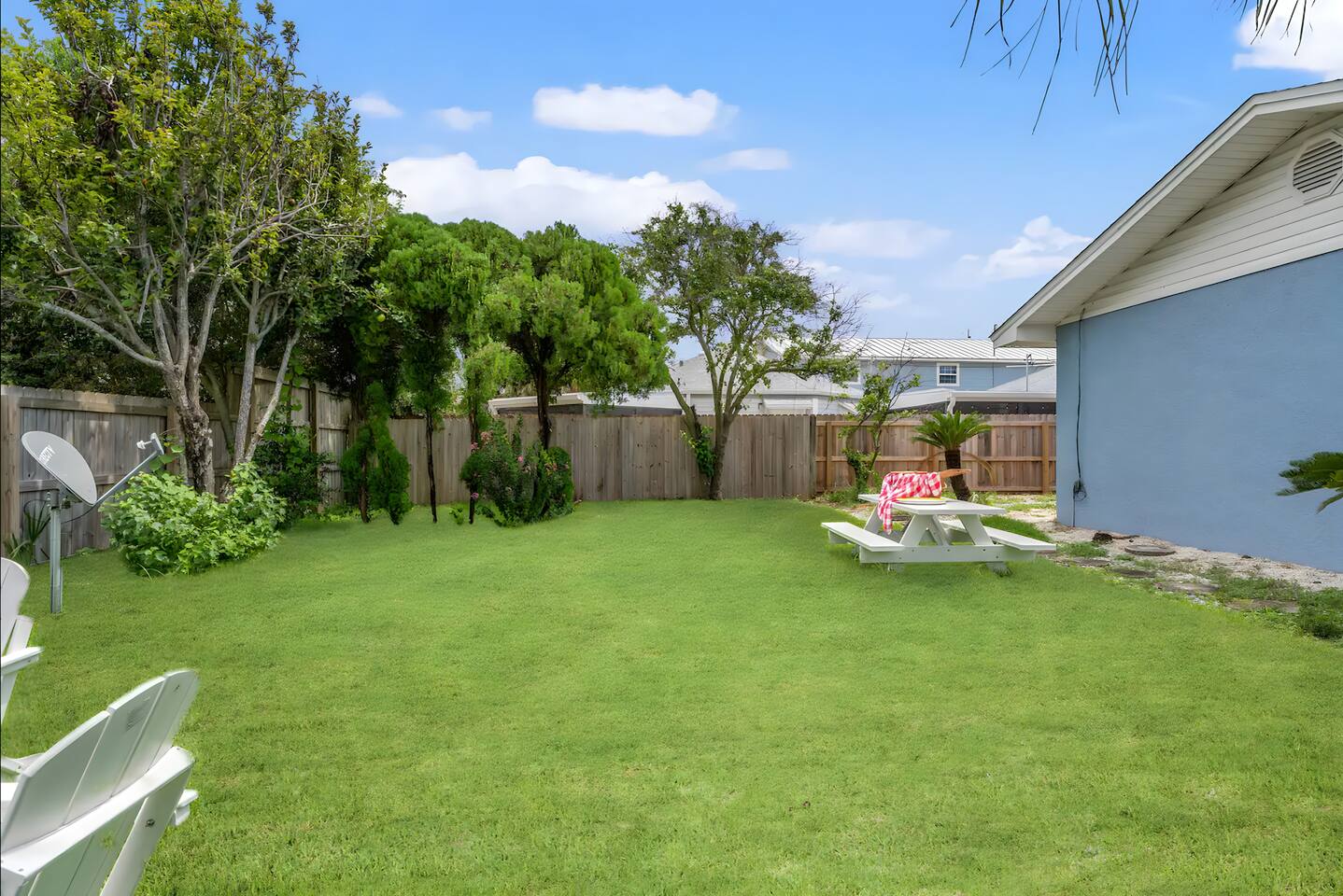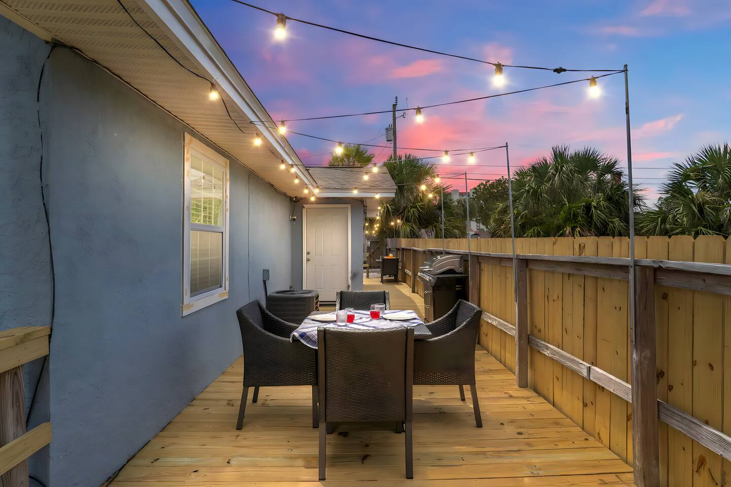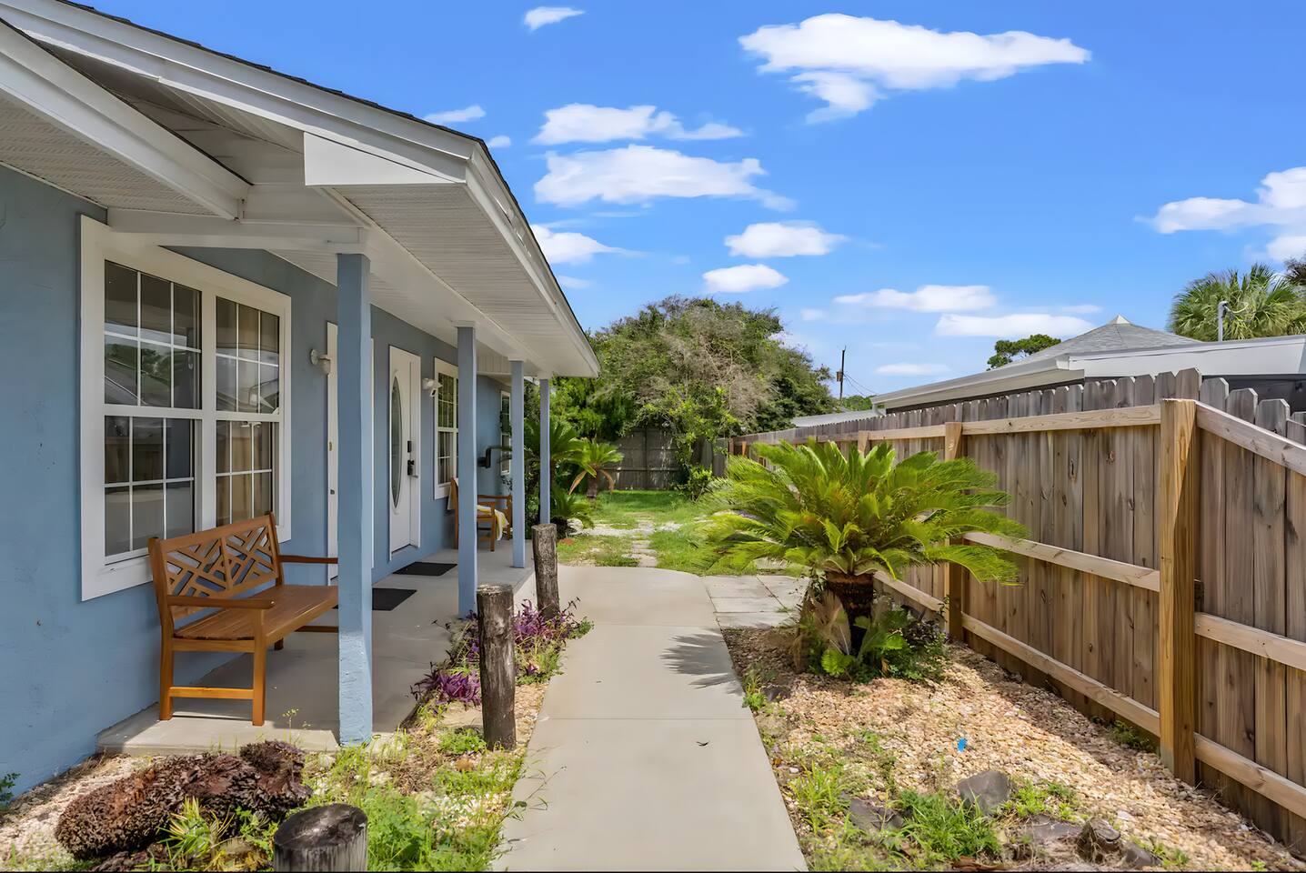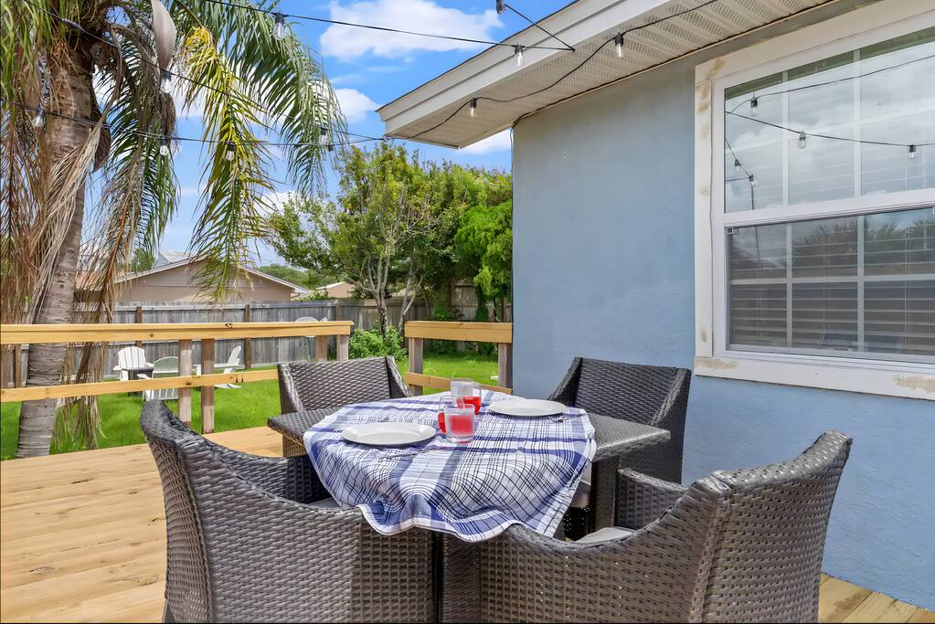 KEY FEATURES: ☀ 2 bedrooms; 1 king, 1 full, & 1 twin ☀ 1 bathroom + bathroom essentials ☀ Fully-equipped, upgraded kitchen with modern appliances ☀ Spacious, fully-fenced backyard (shared with the other unit in this duplex), grill, fire pit, & lots of outdoor seating! ☀ Outdoor dining area, beach essentials ☀ Washer + dryer ☀ We are pet-friendly! ($20/pet per night, max of 3) Here Are A Few Kind Words From Our Past Guests: "Super friendly hosts and the cabin is cute and quaint. We had a wonderful weekend." - Lena "We had the best little getaway in this cabin. Everything was clean and as pictured. The cabin was so cozy and the lights were the perfect touch! Would definitely go back!" - Penny "This place was lovely! Exactly as pictured! Very clean and excellent host experience!!! I plan to come back again!" - Regina ☆☆ BEDROOMS ☆☆ You'll have a great night's sleep, no matter which room you choose. The beds are exceptionally comfy and the theme is very cozy! In one bedroom, you will have a queen bed + a smart TV to yourself. In the larger bedroom, you will find two queen beds. ☆☆ BATHROOM ☆☆ The one full bathroom has a combo shower/tub and is stocked with all the bathroom essentials you could need, including plenty of shower towels, makeup towels, Q-tips, cotton balls, shampoo/conditioner, and body wash. ☆☆ KITCHEN & LIVING ROOM ☆☆ Sit back and relax in the beautiful, beach inspired design of the main living area! With a fun, beach mural, comfy seating, and a smart TV, you will experience the true relaxation of Panama City Beach. The kitchen has been completely renovated with new, modern appliances and the same bright, beach theme. The kitchen is, of course, fully equipped with a coffee station (Keurig & coffee pods included), as well as a dining table with ample space! ☆☆ OUTSIDE SPACE ☆☆ The truly special piece of this home is the outdoor area. Right off of the kitchen, you have access to a beautiful deck. Here you can enjoy the beach weather under the string lights at the outdoor dining area! Just beyond the deck, you will be welcomed into the fully fenced backyard (shared with the other unit in this duplex). Here is the perfect spot to bring your pets; tons of open grassy area, as well as lots of space for you and your family to sit at the picnic table or around the fire pit. This large backyard is a rare find! And, of course, you are just a few minutes walk from access to some of the most beautiful beaches you will ever see! ★☆ Book Today & Let Us Take Care Of You In Panama City Beach! ☆★