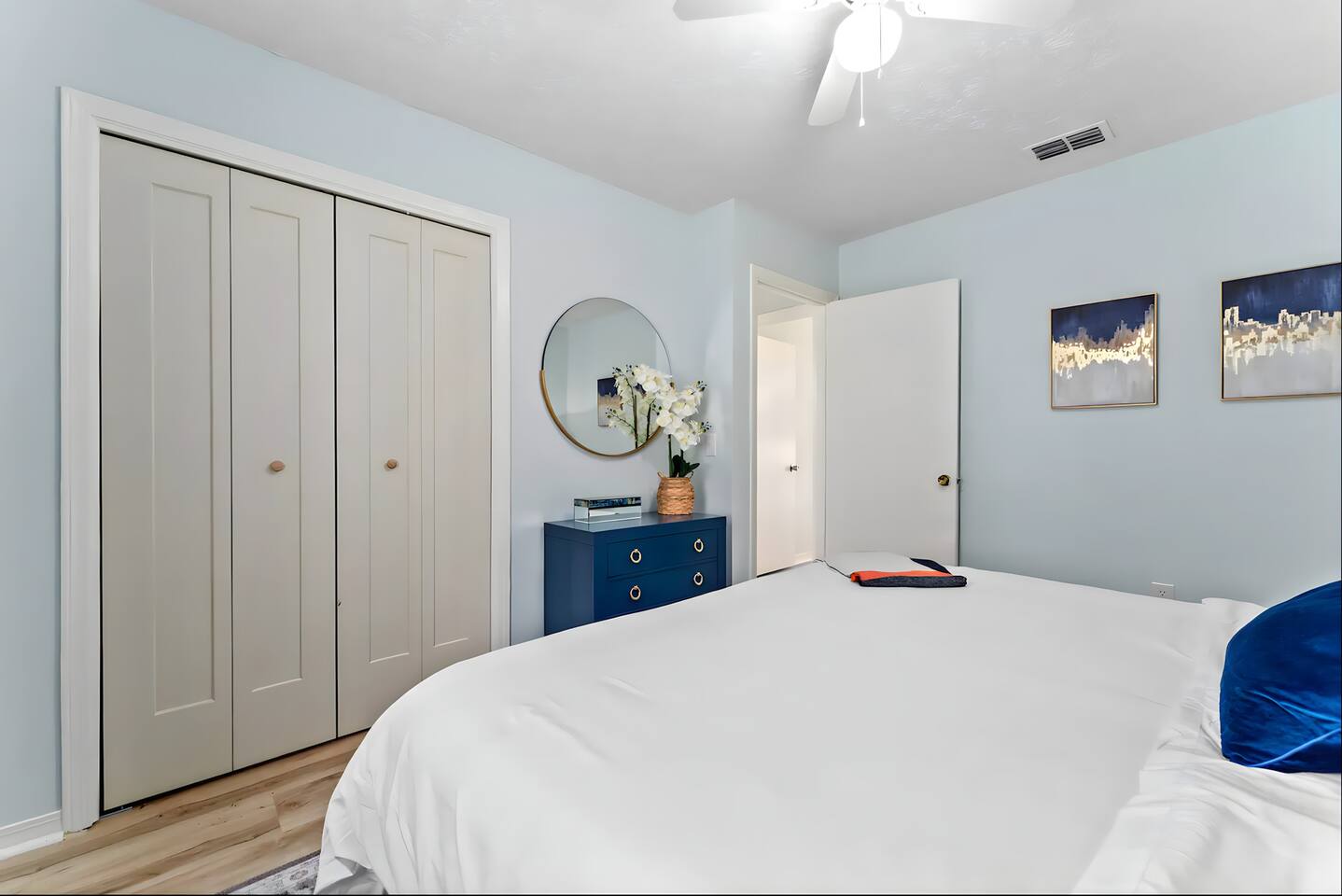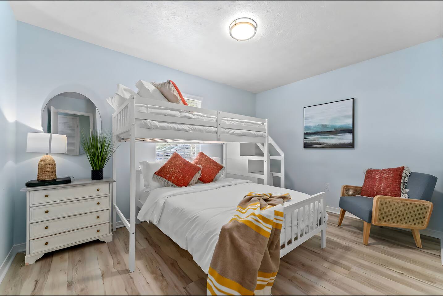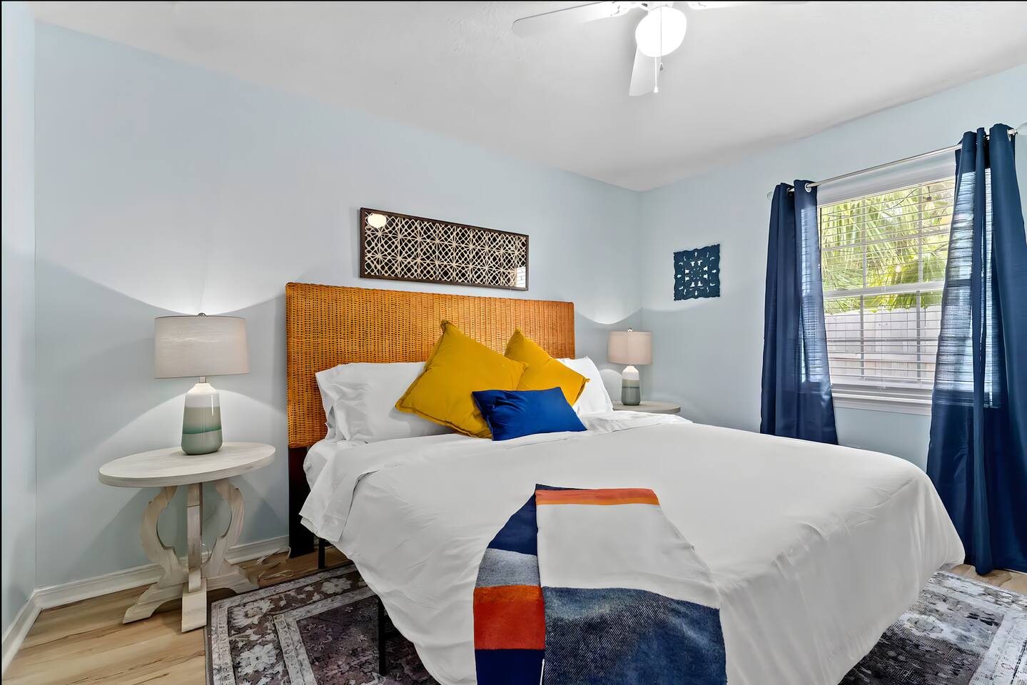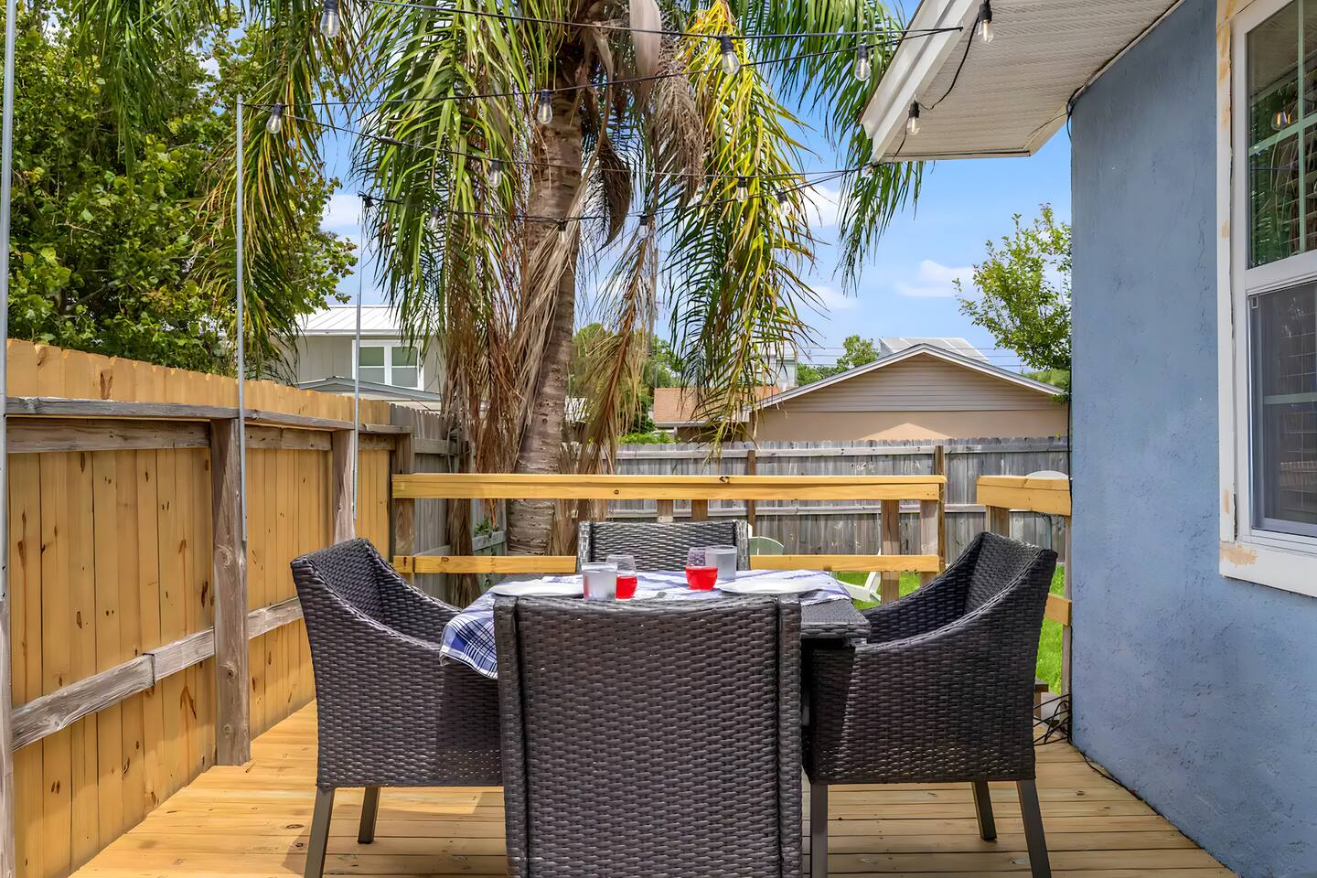 KEY FEATURES: ☀ 2 bedrooms; 1 king, 1 full, & 1 twin ☀ 1 bathroom + bathroom essentials ☀ Fully-equipped, upgraded kitchen with modern appliances ☀ Spacious, fully-fenced backyard (shared with the other unit in this duplex), grill, fire pit, & lots of outdoor seating! ☀ Outdoor dining area, beach essentials ☀ Washer + dryer ☀ We are pet-friendly! ($20/pet per night, max of 3) Here Are A Few Kind Words From Our Past Guests: "Super friendly hosts and the cabin is cute and quaint. We had a wonderful weekend." - Lena "We had the best little getaway in this cabin. Everything was clean and as pictured. The cabin was so cozy and the lights were the perfect touch! Would definitely go back!" - Penny "This place was lovely! Exactly as pictured! Very clean and excellent host experience!!! I plan to come back again!" - Regina ☆☆ BEDROOMS ☆☆ You'll have a great night's sleep, no matter which room you choose. The beds are exceptionally comfy and the theme is very cozy! In one bedroom, you will have a queen bed + a smart TV to yourself. In the larger bedroom, you will find two queen beds. ☆☆ BATHROOM ☆☆ The one full bathroom has a combo shower/tub and is stocked with all the bathroom essentials you could need, including plenty of shower towels, makeup towels, Q-tips, cotton balls, shampoo/conditioner, and body wash. ☆☆ KITCHEN & LIVING ROOM ☆☆ Sit back and relax in the beautiful, beach inspired design of the main living area! With a fun, beach mural, comfy seating, and a smart TV, you will experience the true relaxation of Panama City Beach. The kitchen has been completely renovated with new, modern appliances and the same bright, beach theme. The kitchen is, of course, fully equipped with a coffee station (Keurig & coffee pods included), as well as a dining table with ample space! ☆☆ OUTSIDE SPACE ☆☆ The truly special piece of this home is the outdoor area. Right off of the kitchen, you have access to a beautiful deck. Here you can enjoy the beach weather under the string lights at the outdoor dining area! Just beyond the deck, you will be welcomed into the fully fenced backyard (shared with the other unit in this duplex). Here is the perfect spot to bring your pets; tons of open grassy area, as well as lots of space for you and your family to sit at the picnic table or around the fire pit. This large backyard is a rare find! And, of course, you are just a few minutes walk from access to some of the most beautiful beaches you will ever see! ★☆ Book Today & Let Us Take Care Of You In Panama City Beach! ☆★