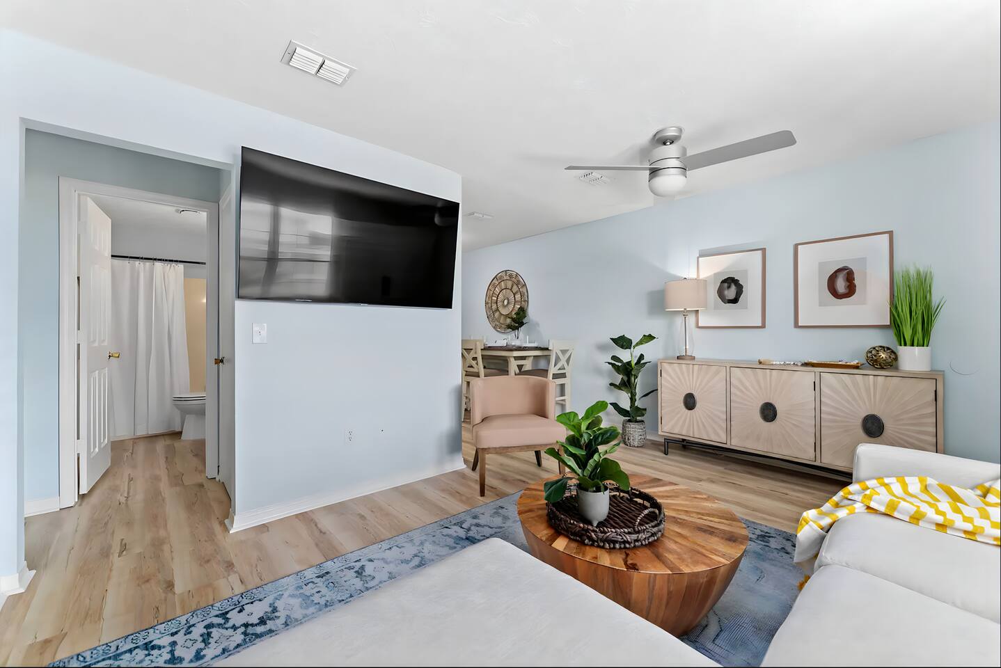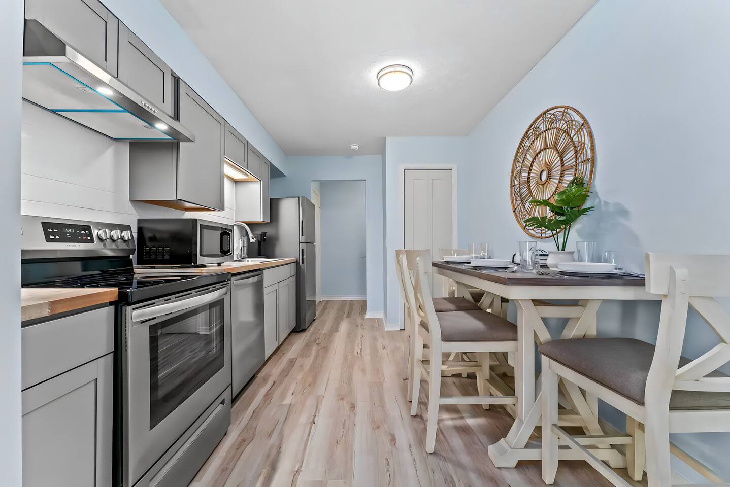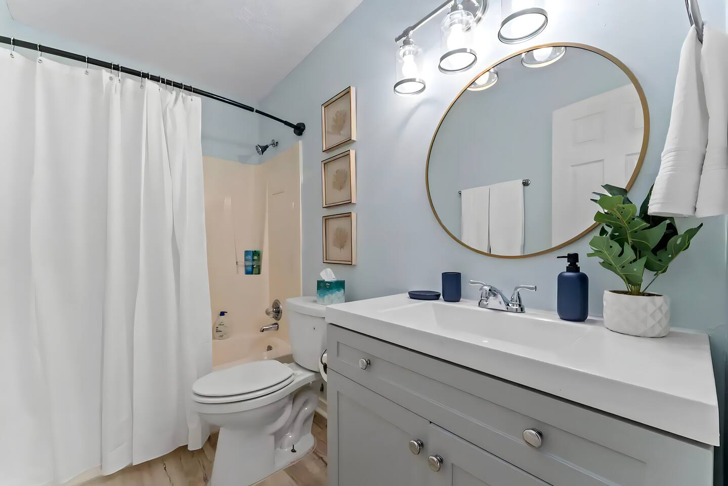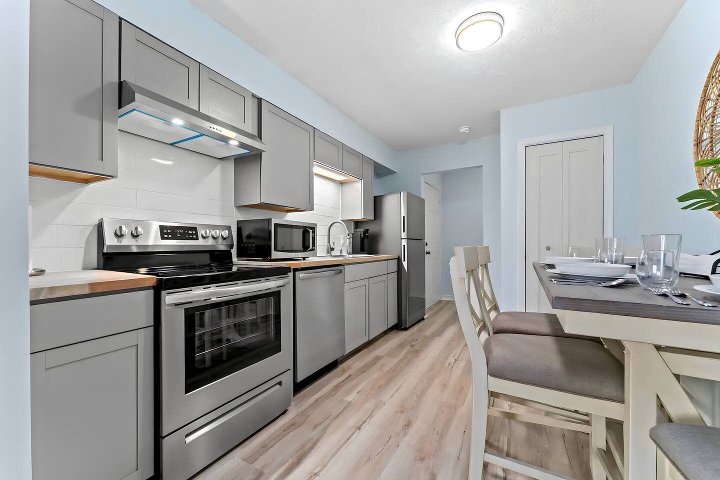 KEY FEATURES: ☀ 2 bedrooms; 1 king, 1 full, & 1 twin ☀ 1 bathroom + bathroom essentials ☀ Fully-equipped, upgraded kitchen with modern appliances ☀ Spacious, fully-fenced backyard (shared with the other unit in this duplex), grill, fire pit, & lots of outdoor seating! ☀ Outdoor dining area, beach essentials ☀ Washer + dryer ☀ We are pet-friendly! ($20/pet per night, max of 3) Here Are A Few Kind Words From Our Past Guests: "Super friendly hosts and the cabin is cute and quaint. We had a wonderful weekend." - Lena "We had the best little getaway in this cabin. Everything was clean and as pictured. The cabin was so cozy and the lights were the perfect touch! Would definitely go back!" - Penny "This place was lovely! Exactly as pictured! Very clean and excellent host experience!!! I plan to come back again!" - Regina ☆☆ BEDROOMS ☆☆ You'll have a great night's sleep, no matter which room you choose. The beds are exceptionally comfy and the theme is very cozy! In one bedroom, you will have a queen bed + a smart TV to yourself. In the larger bedroom, you will find two queen beds. ☆☆ BATHROOM ☆☆ The one full bathroom has a combo shower/tub and is stocked with all the bathroom essentials you could need, including plenty of shower towels, makeup towels, Q-tips, cotton balls, shampoo/conditioner, and body wash. ☆☆ KITCHEN & LIVING ROOM ☆☆ Sit back and relax in the beautiful, beach inspired design of the main living area! With a fun, beach mural, comfy seating, and a smart TV, you will experience the true relaxation of Panama City Beach. The kitchen has been completely renovated with new, modern appliances and the same bright, beach theme. The kitchen is, of course, fully equipped with a coffee station (Keurig & coffee pods included), as well as a dining table with ample space! ☆☆ OUTSIDE SPACE ☆☆ The truly special piece of this home is the outdoor area. Right off of the kitchen, you have access to a beautiful deck. Here you can enjoy the beach weather under the string lights at the outdoor dining area! Just beyond the deck, you will be welcomed into the fully fenced backyard (shared with the other unit in this duplex). Here is the perfect spot to bring your pets; tons of open grassy area, as well as lots of space for you and your family to sit at the picnic table or around the fire pit. This large backyard is a rare find! And, of course, you are just a few minutes walk from access to some of the most beautiful beaches you will ever see! ★☆ Book Today & Let Us Take Care Of You In Panama City Beach! ☆★