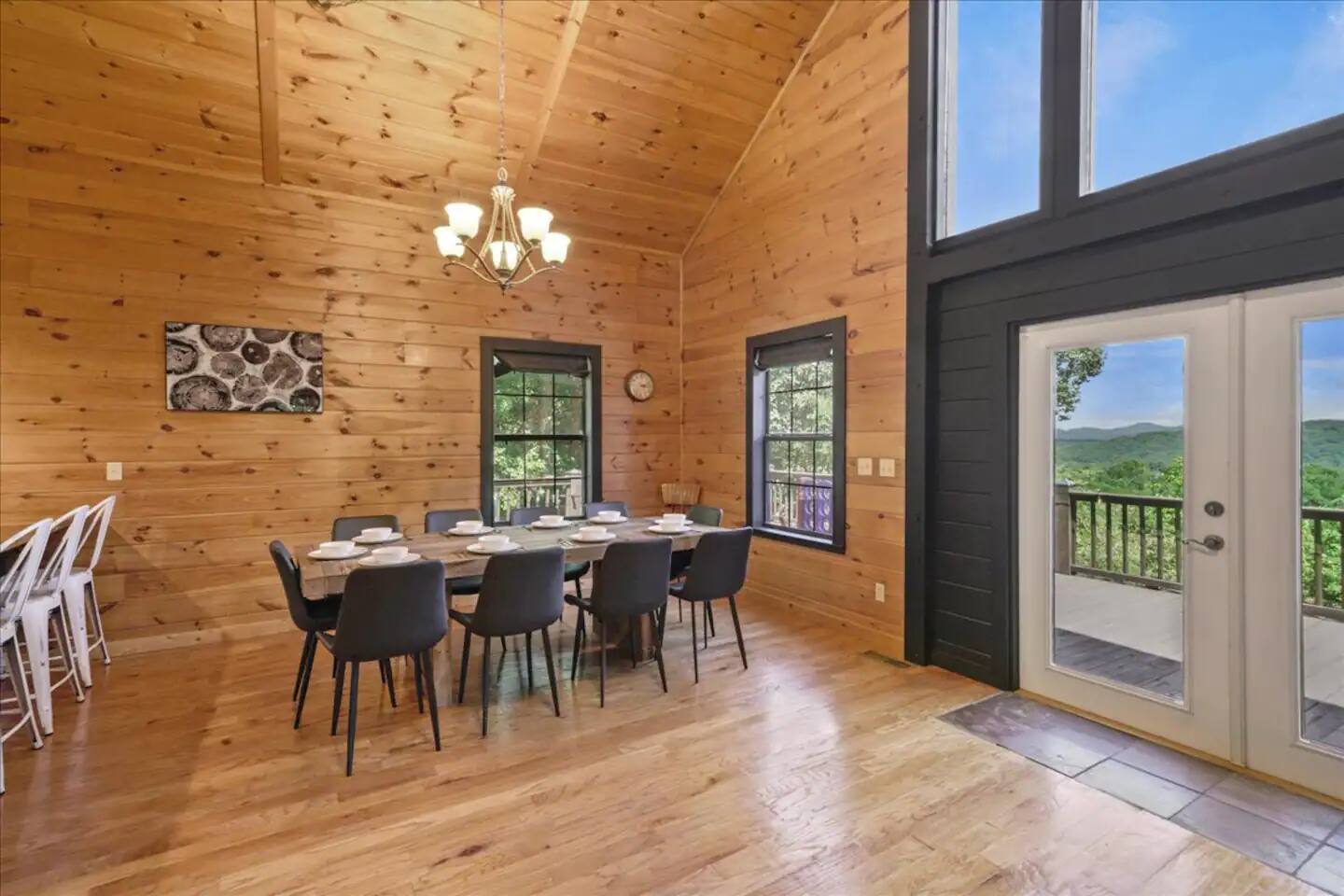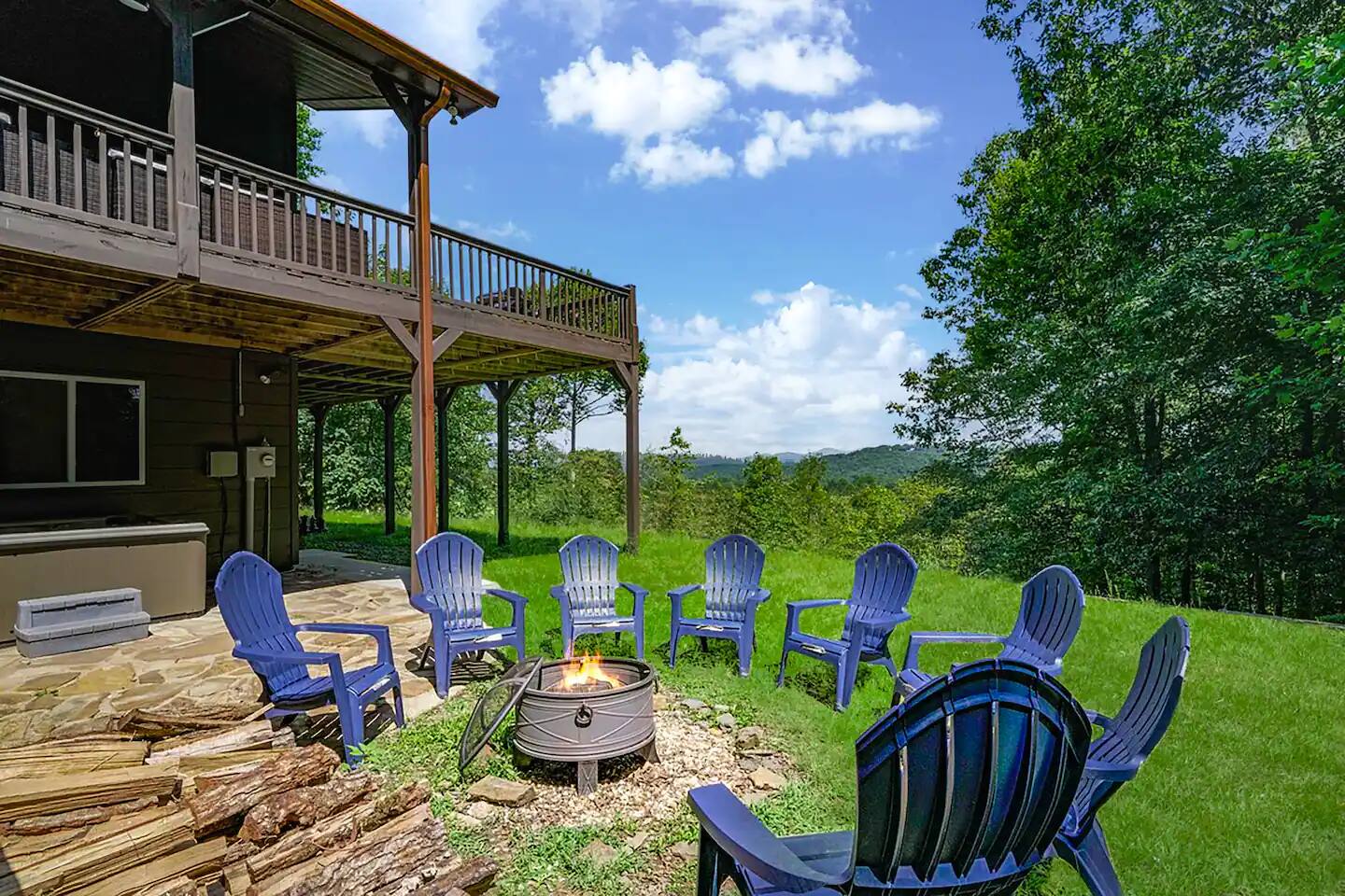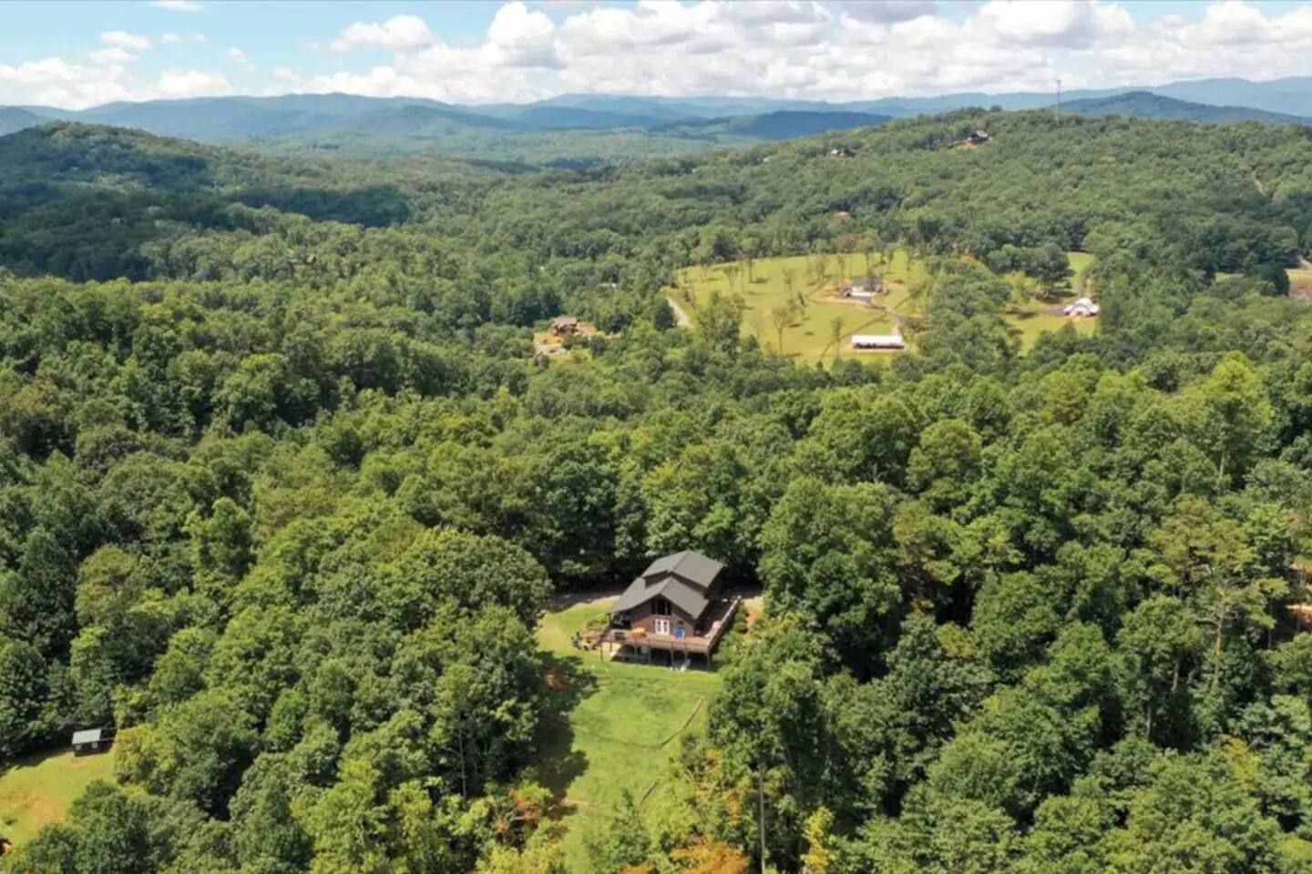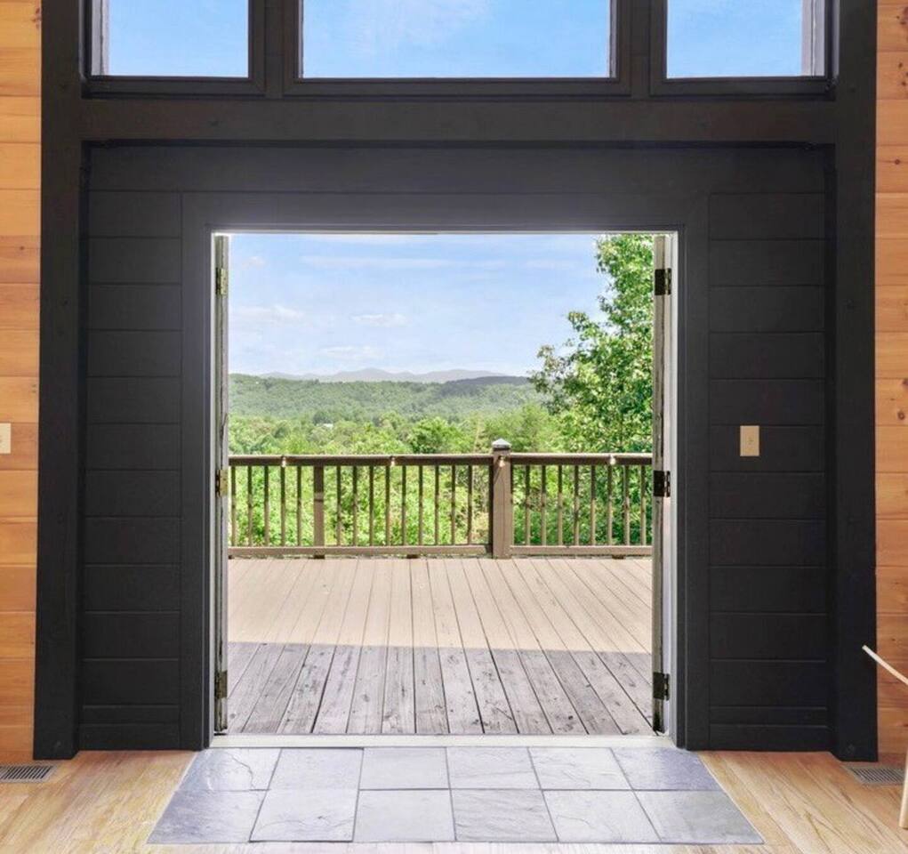 KEY FEATURES: ☀ 5 cozy bedrooms; 1 king, 5 queens, 2 fulls (bunk bed) ☀ 3 full bathrooms + 1 half bath ☀ Brand new modern chef's kitchen ☀ Open-concept living space with panoramic views of the mountains ☀ Huge, private deck with tons of seating, entertainment, and open space! ☀ Movie theater room with oversized comfy seating ☀ Arcade room with retro-style arcade games ☀ High-speed wifi and smart TVs throughout the home ☀ Complete privacy from the neighbors ☀ AMAZING location, just a few minutes away from all that Blue Ridge has to offer Here Are A Few Kind Words From Our Past Guests: "House is beautiful! Very clean, great location, easy check in, and great communication! Would definitely come back!" - Patty "We loved staying here! The location is perfect and the house was just as pictured. The hosts are super responsive and would definitely book again!" - Ashley "We had a great time staying here! The location was secluded, but not completely remote. The house was clean and comfortable with plenty of amenities. It was a perfect place for our pup too." - Michael ☆☆ BEDROOMS ☆☆ No matter which room you choose, you will have a great night's sleep on our super comfy beds! On the bottom floor, you will find one room with a full sized bunk bed and a second room with two queens. The second bedroom has direct access to the movie theater room. On the second floor, directly off of the main living space is the master bedroom with a king bed & smart TV, attached to a beautifully remodeled bathroom. On the third floor, right off of the arcade room, you will find one bedroom with two queen beds and another with one queen bed. ☆☆ BATHROOMS ☆☆ All bathrooms are freshly renovated. On the bottom floor, the two bedrooms and movie theater room share a full bathroom. On the second floor, there is a gorgeous master ensuite as well as a half bath right off of the kitchen. The two bedrooms on the top floor share a full bathroom (with dual sinks). ☆☆ KITCHEN & LIVING SPACE ☆☆ As you enter the front door, you are greeted with high, vaulted ceilings, panoramic views of the mountains, and warm, cozy seating. A comfy couch, smart TV, fireplace, and huge windows surrounding the space will make you never want to leave. Adjacent to the living room is the kitchen & dining area, with an oversized dining table and seating for 10 (+ 4 barstool seats). The kitchen has been completely renovated to add to the sleek, modern aesthetic combined with the traditional cabin theme of this home. Tons of counter space and stocked with the essentials (yes, this includes a Keurig & coffee pods) makes this an ideal spot to create some home cooked meals for the entire family. ☆☆ MOVIE THEATER ☆☆ On the bottom level, tucked away behind the bedrooms, you will find a custom-build movie theater room with oversized movie theater-style seating. This room has direct access to the hot tub, located right outside of the door to the movie theater. ☆☆ ARCADE ☆☆ The loft on the top floor has been converted to an arcade space, with a unique design and retro-style arcade games of Pac Man & NBA Jam. ☆☆ OUTDOOR SPACE ☆☆ The main attraction to this home is its pristine location and views for days. On the wraparound deck, located right off of the second floor living space, you will be blown away by the jaw-dropping mountain views (the pictures don't even do it justice!). Lots of seating, an outdoor grill, giant Connect 4, corn hole, and tons of hang out space make this spot unbeatable. Directly below the deck, you will find a wood burning fire pit and a hot tub (of course, located in a spot where you can enjoy the beautiful views while relaxing here). ★☆ Book Today & Let Us Take Care Of You In Blue Ridge! ☆★