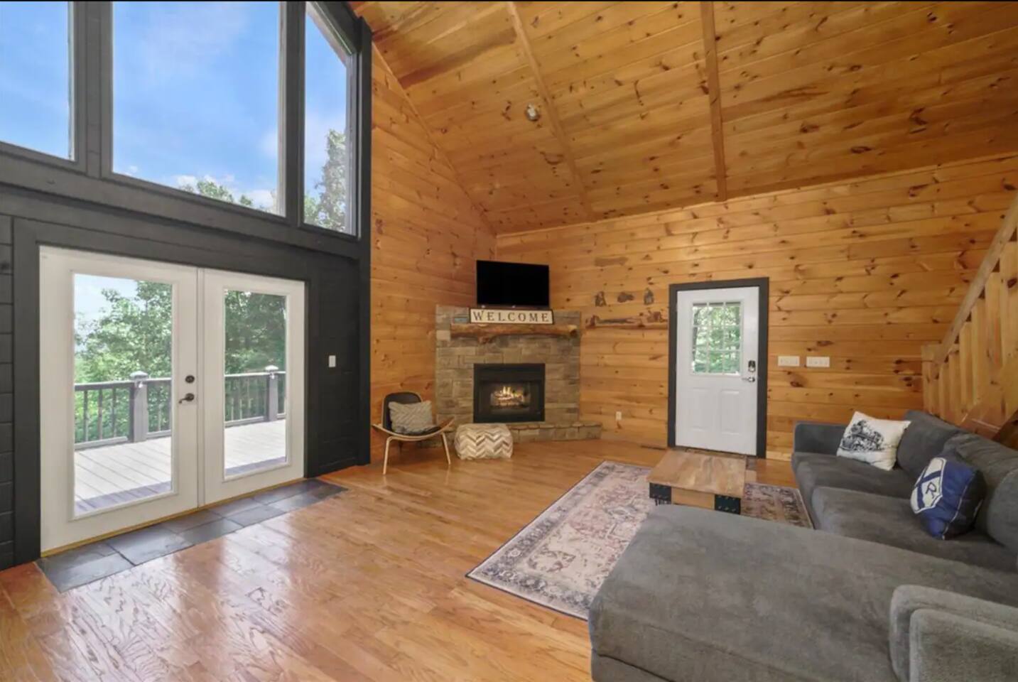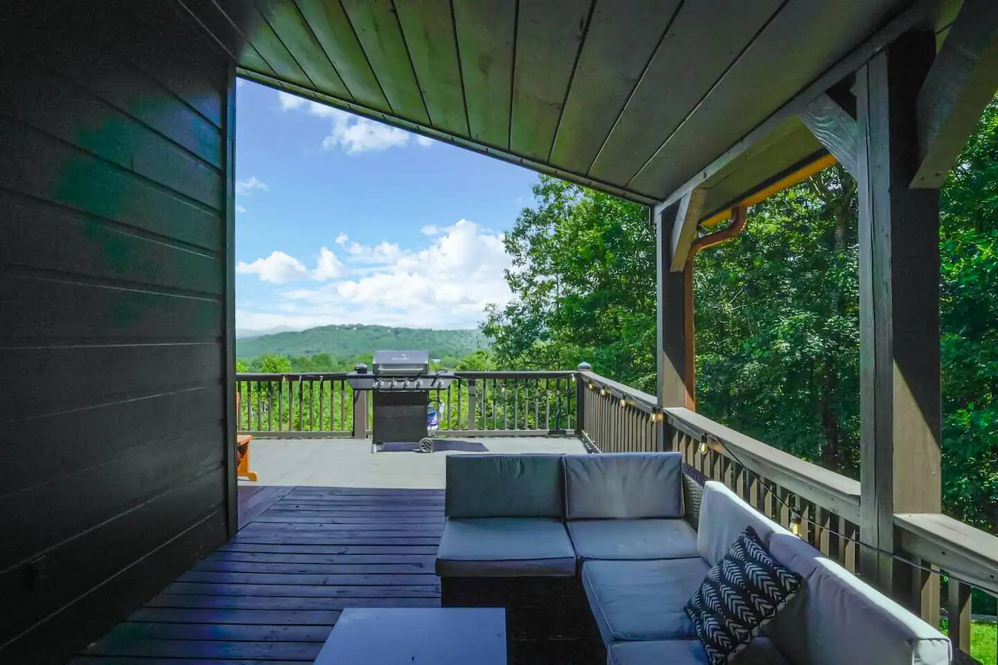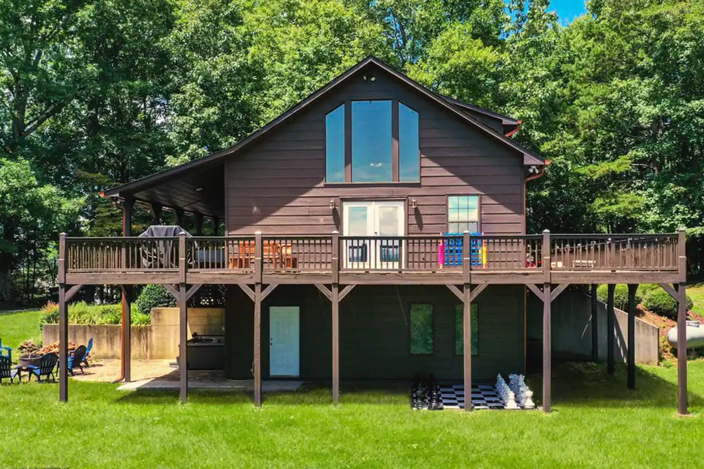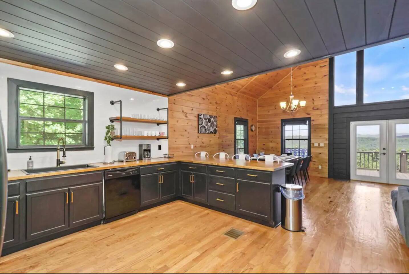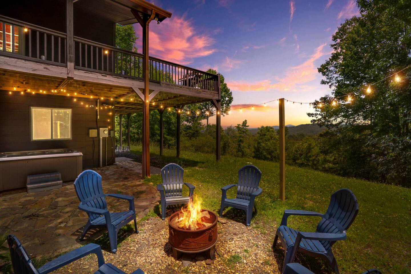 KEY FEATURES: ☀ 5 cozy bedrooms; 1 king, 5 queens, 2 fulls (bunk bed) ☀ 3 full bathrooms + 1 half bath ☀ Brand new modern chef's kitchen ☀ Open-concept living space with panoramic views of the mountains ☀ Huge, private deck with tons of seating, entertainment, and open space! ☀ Movie theater room with oversized comfy seating ☀ Arcade room with retro-style arcade games ☀ High-speed wifi and smart TVs throughout the home ☀ Complete privacy from the neighbors ☀ AMAZING location, just a few minutes away from all that Blue Ridge has to offer Here Are A Few Kind Words From Our Past Guests: "House is beautiful! Very clean, great location, easy check in, and great communication! Would definitely come back!" - Patty "We loved staying here! The location is perfect and the house was just as pictured. The hosts are super responsive and would definitely book again!" - Ashley "We had a great time staying here! The location was secluded, but not completely remote. The house was clean and comfortable with plenty of amenities. It was a perfect place for our pup too." - Michael ☆☆ BEDROOMS ☆☆ No matter which room you choose, you will have a great night's sleep on our super comfy beds! On the bottom floor, you will find one room with a full sized bunk bed and a second room with two queens. The second bedroom has direct access to the movie theater room. On the second floor, directly off of the main living space is the master bedroom with a king bed & smart TV, attached to a beautifully remodeled bathroom. On the third floor, right off of the arcade room, you will find one bedroom with two queen beds and another with one queen bed. ☆☆ BATHROOMS ☆☆ All bathrooms are freshly renovated. On the bottom floor, the two bedrooms and movie theater room share a full bathroom. On the second floor, there is a gorgeous master ensuite as well as a half bath right off of the kitchen. The two bedrooms on the top floor share a full bathroom (with dual sinks). ☆☆ KITCHEN & LIVING SPACE ☆☆ As you enter the front door, you are greeted with high, vaulted ceilings, panoramic views of the mountains, and warm, cozy seating. A comfy couch, smart TV, fireplace, and huge windows surrounding the space will make you never want to leave. Adjacent to the living room is the kitchen & dining area, with an oversized dining table and seating for 10 (+ 4 barstool seats). The kitchen has been completely renovated to add to the sleek, modern aesthetic combined with the traditional cabin theme of this home. Tons of counter space and stocked with the essentials (yes, this includes a Keurig & coffee pods) makes this an ideal spot to create some home cooked meals for the entire family. ☆☆ MOVIE THEATER ☆☆ On the bottom level, tucked away behind the bedrooms, you will find a custom-build movie theater room with oversized movie theater-style seating. This room has direct access to the hot tub, located right outside of the door to the movie theater. ☆☆ ARCADE ☆☆ The loft on the top floor has been converted to an arcade space, with a unique design and retro-style arcade games of Pac Man & NBA Jam. ☆☆ OUTDOOR SPACE ☆☆ The main attraction to this home is its pristine location and views for days. On the wraparound deck, located right off of the second floor living space, you will be blown away by the jaw-dropping mountain views (the pictures don't even do it justice!). Lots of seating, an outdoor grill, giant Connect 4, corn hole, and tons of hang out space make this spot unbeatable. Directly below the deck, you will find a wood burning fire pit and a hot tub (of course, located in a spot where you can enjoy the beautiful views while relaxing here). ★☆ Book Today & Let Us Take Care Of You In Blue Ridge! ☆★