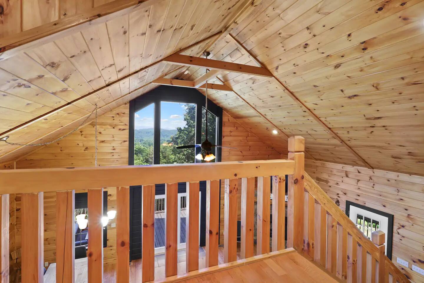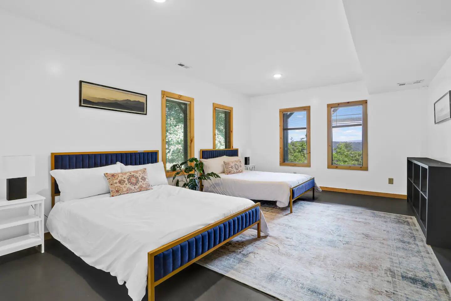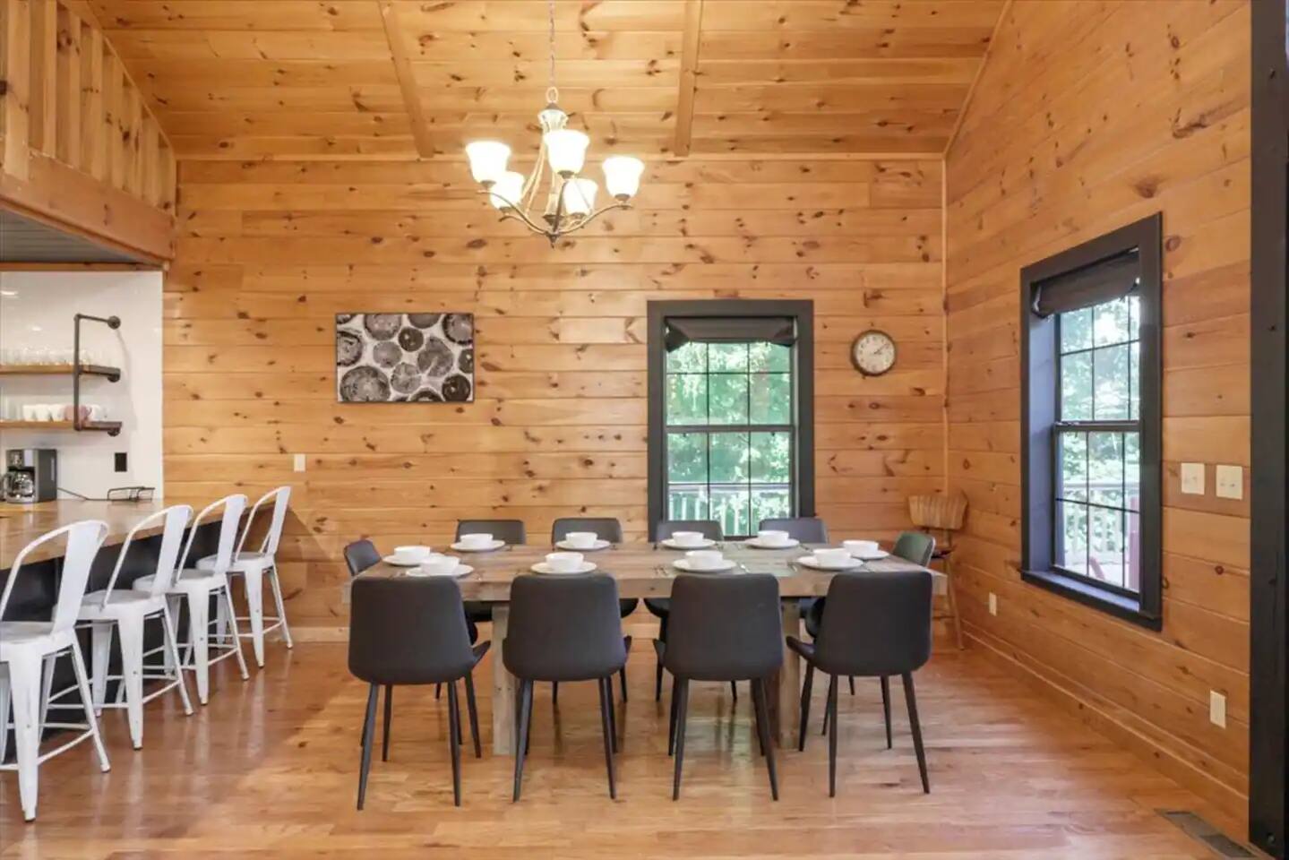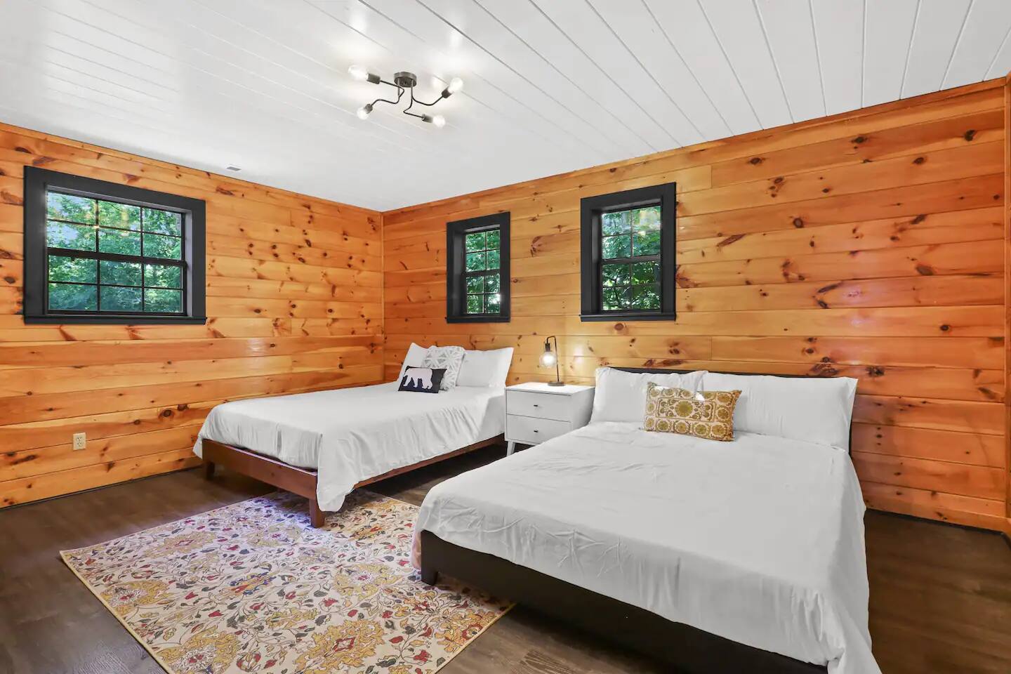 KEY FEATURES: ☀ 5 cozy bedrooms; 1 king, 5 queens, 2 fulls (bunk bed) ☀ 3 full bathrooms + 1 half bath ☀ Brand new modern chef's kitchen ☀ Open-concept living space with panoramic views of the mountains ☀ Huge, private deck with tons of seating, entertainment, and open space! ☀ Movie theater room with oversized comfy seating ☀ Arcade room with retro-style arcade games ☀ High-speed wifi and smart TVs throughout the home ☀ Complete privacy from the neighbors ☀ AMAZING location, just a few minutes away from all that Blue Ridge has to offer Here Are A Few Kind Words From Our Past Guests: "House is beautiful! Very clean, great location, easy check in, and great communication! Would definitely come back!" - Patty "We loved staying here! The location is perfect and the house was just as pictured. The hosts are super responsive and would definitely book again!" - Ashley "We had a great time staying here! The location was secluded, but not completely remote. The house was clean and comfortable with plenty of amenities. It was a perfect place for our pup too." - Michael ☆☆ BEDROOMS ☆☆ No matter which room you choose, you will have a great night's sleep on our super comfy beds! On the bottom floor, you will find one room with a full sized bunk bed and a second room with two queens. The second bedroom has direct access to the movie theater room. On the second floor, directly off of the main living space is the master bedroom with a king bed & smart TV, attached to a beautifully remodeled bathroom. On the third floor, right off of the arcade room, you will find one bedroom with two queen beds and another with one queen bed. ☆☆ BATHROOMS ☆☆ All bathrooms are freshly renovated. On the bottom floor, the two bedrooms and movie theater room share a full bathroom. On the second floor, there is a gorgeous master ensuite as well as a half bath right off of the kitchen. The two bedrooms on the top floor share a full bathroom (with dual sinks). ☆☆ KITCHEN & LIVING SPACE ☆☆ As you enter the front door, you are greeted with high, vaulted ceilings, panoramic views of the mountains, and warm, cozy seating. A comfy couch, smart TV, fireplace, and huge windows surrounding the space will make you never want to leave. Adjacent to the living room is the kitchen & dining area, with an oversized dining table and seating for 10 (+ 4 barstool seats). The kitchen has been completely renovated to add to the sleek, modern aesthetic combined with the traditional cabin theme of this home. Tons of counter space and stocked with the essentials (yes, this includes a Keurig & coffee pods) makes this an ideal spot to create some home cooked meals for the entire family. ☆☆ MOVIE THEATER ☆☆ On the bottom level, tucked away behind the bedrooms, you will find a custom-build movie theater room with oversized movie theater-style seating. This room has direct access to the hot tub, located right outside of the door to the movie theater. ☆☆ ARCADE ☆☆ The loft on the top floor has been converted to an arcade space, with a unique design and retro-style arcade games of Pac Man & NBA Jam. ☆☆ OUTDOOR SPACE ☆☆ The main attraction to this home is its pristine location and views for days. On the wraparound deck, located right off of the second floor living space, you will be blown away by the jaw-dropping mountain views (the pictures don't even do it justice!). Lots of seating, an outdoor grill, giant Connect 4, corn hole, and tons of hang out space make this spot unbeatable. Directly below the deck, you will find a wood burning fire pit and a hot tub (of course, located in a spot where you can enjoy the beautiful views while relaxing here). ★☆ Book Today & Let Us Take Care Of You In Blue Ridge! ☆★