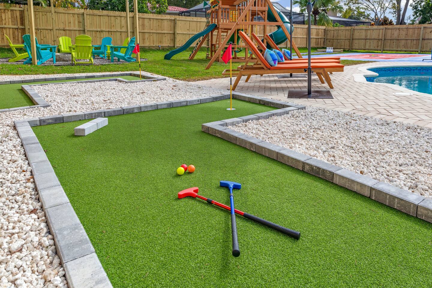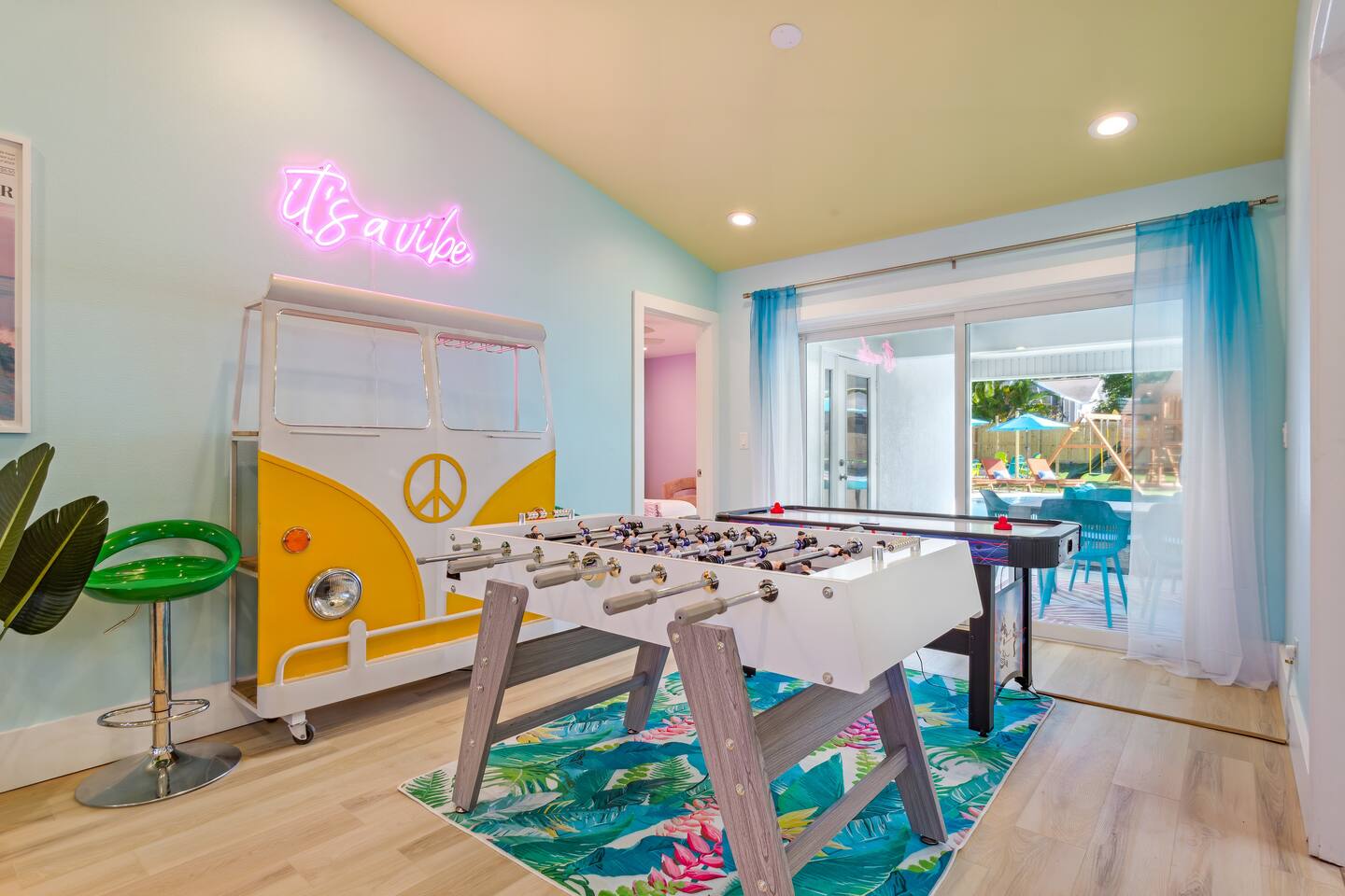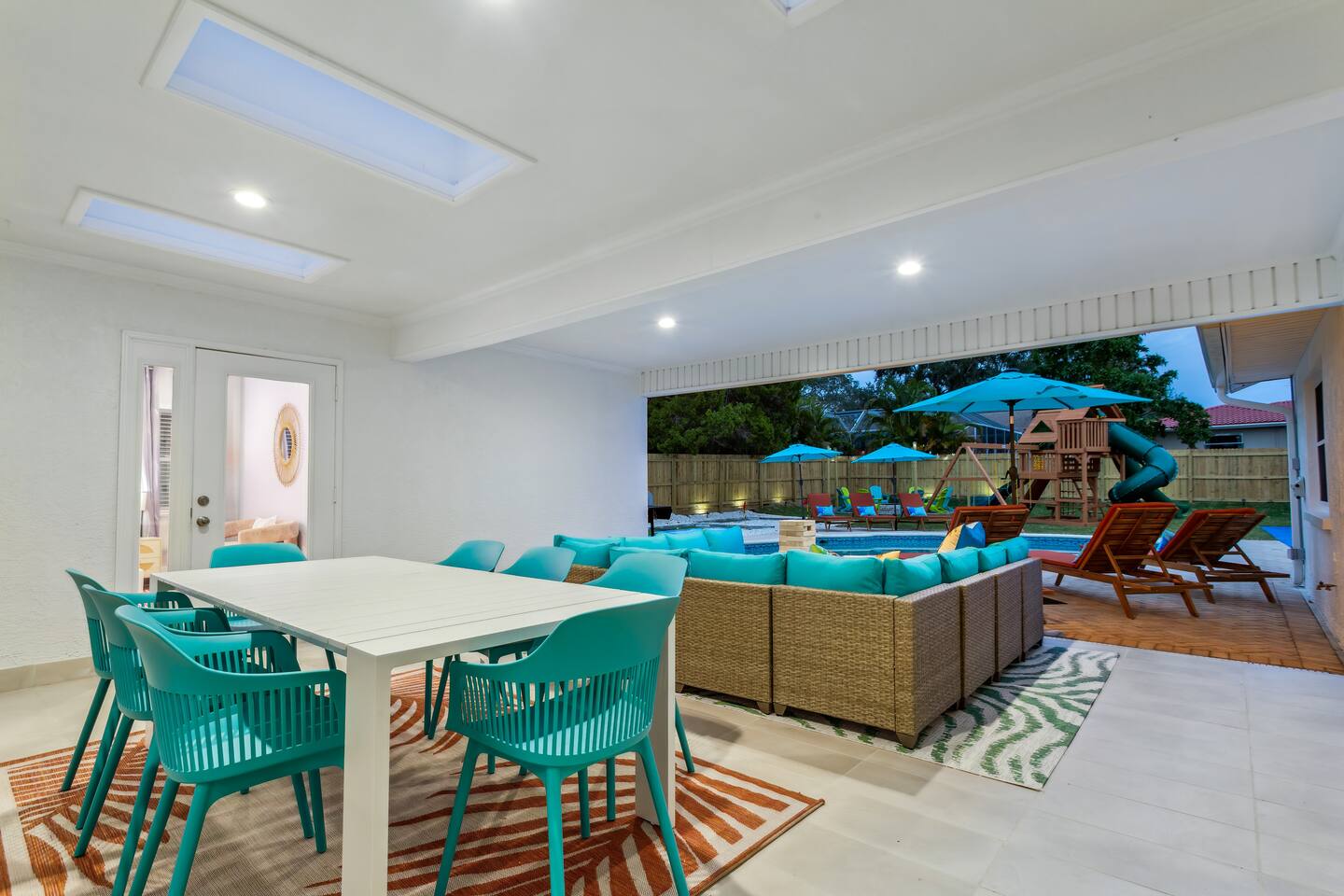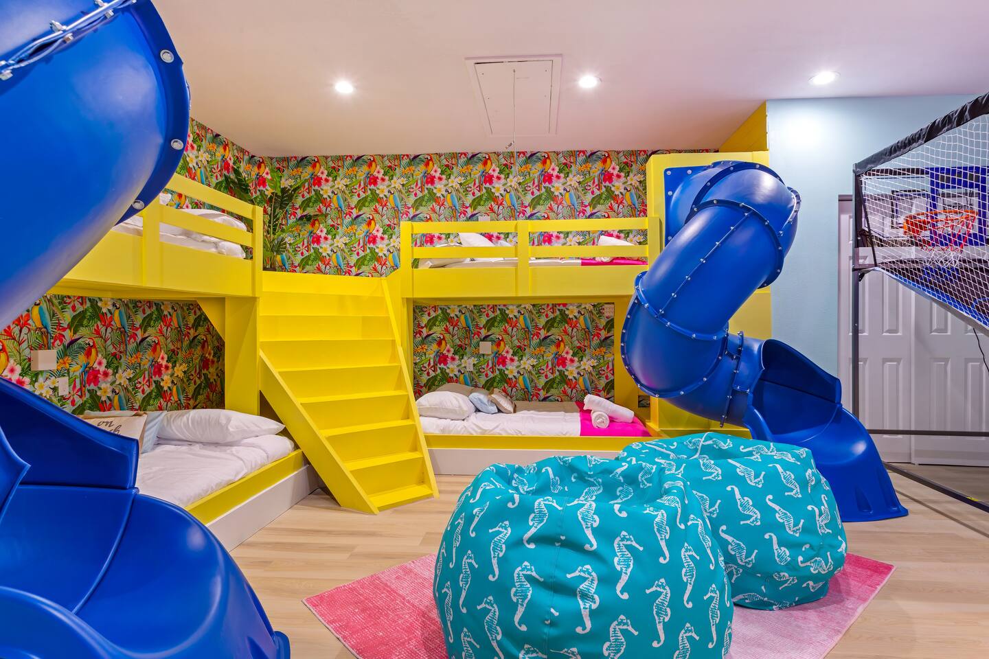 KEY FEATURES: ☀ 5 spacious bedrooms with fun, unique designs; 2 kings, 2 queens, 2 fulls, & 2 twin beds ☀ 3 full, modern bathrooms ☀ Beautiful chef's kitchen with modern appliances & design ☀ Living room with tons of comfy seating and large smart TV ☀ Game room with pool table, foosball, air hockey & more ☀ Bright dining room that opens up to the main living area; great for entertaining! ☀ Huge backyard with heated pool, mini golf, bowling, fire pit, and more ☀ Quiet, private neighborhood just minutes away from beautiful beaches Here Are A Few Kind Words From Our Past Guests: “This was a great place to stay! The morning light through the windows was so beautiful. Overall, just a relaxing experience. The hosts were super responsive whenever I had a question. I would stay again!” - Emily “Sabrina was very accommodating and communicative. the house is beautiful and very comfortable, close to nature hikes.” - Jennifer “This place was lovely! Exactly as pictured! Very clean and excellent host experience!!! I plan to come back again!” - Regina ☆☆ BEDROOMS ☆☆ These 5 bedrooms will BLOW YOU AWAY! The star of the show is the bunk bedroom, which is filled with two twin-over-full bunk beds, two slides, arcade gams, basketball (Pop-a-Shot), smart TV, & comfy seating. It will truly WOW you! There are 4 remaining bedrooms; two with a king bed in each, and two with a queen bed in each. All bedrooms have their own smart TV! ☆☆ BATHROOMS ☆☆ There are 3 full bathrooms throughout this home. The first bathroom has a toilet, sink, & a shower/tub combo. The private ensuite master bathroom has a sink, toilet, walk-in shower, and standalone tub. The third bathroom is located right off of the pool table room, with two sinks, a toilet, & walk-in shower. ☆☆ KITCHEN & DINING ☆☆ The kitchen is bright & open, with brand new stainless steel appliances. With lots of counter space and bar top seating, it's a great kitchen for entertaining! Just one room over is the dining room, which is bright and welcoming. The formal dining room seats 8 (plus 4 bar top seats in the kitchen), and there is also a second dining table in the backyard. ☆☆ LIVING ROOM ☆☆ As you walk into the home, you're greeted with the big, open living room, which has tons of comfy seating and a fun, tropical design! It's a great place for your movie or game nights, where the whole family can sit together in this cozy space! ☆☆ GAME ROOM ☆☆ There are TWO fun game rooms in this home. The first game room, right off of the living room, has foosball, air hockey, and direct access to the incredible backyard. The second game room is located right next to the dining room, with a pool table smart TV, and a fireplace. ☆☆ OUTDOOR SPACE ☆☆ This backyard is everything you could ask for, and more! ☀ Heated pool ☀ Fire pit (wood burning) ☀ Mini golf ☀ Basketball court ☀ Pickleball court ☀ Bowling ☀ HUGE jungle gym ☀ Giant Jenga ☀ BBQ grill ☀ Covered outdoor dining ☀ Covered outdoor lounge seating ☀ Sun loungers ☀ Outdoor shower There is so much to do here, that all of your friends & family will be thoroughly entertained throughout your entire stay. No matter the season, this backyard has it all. Book your stay with us today and you will NOT be disappointed. Get ready for a vacation you will never forget! ★☆ Book Now & Let Us Take Care Of You In Seminole! ☆★