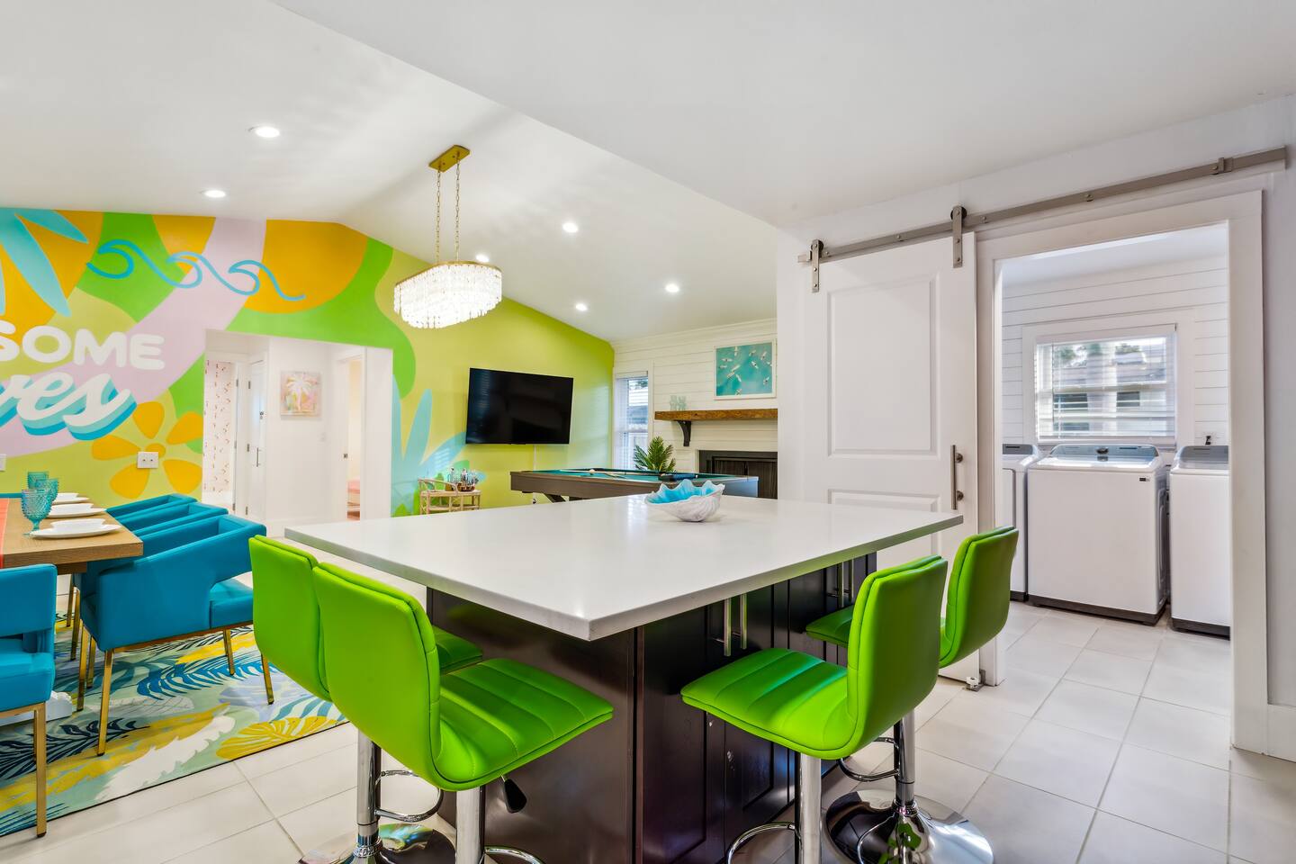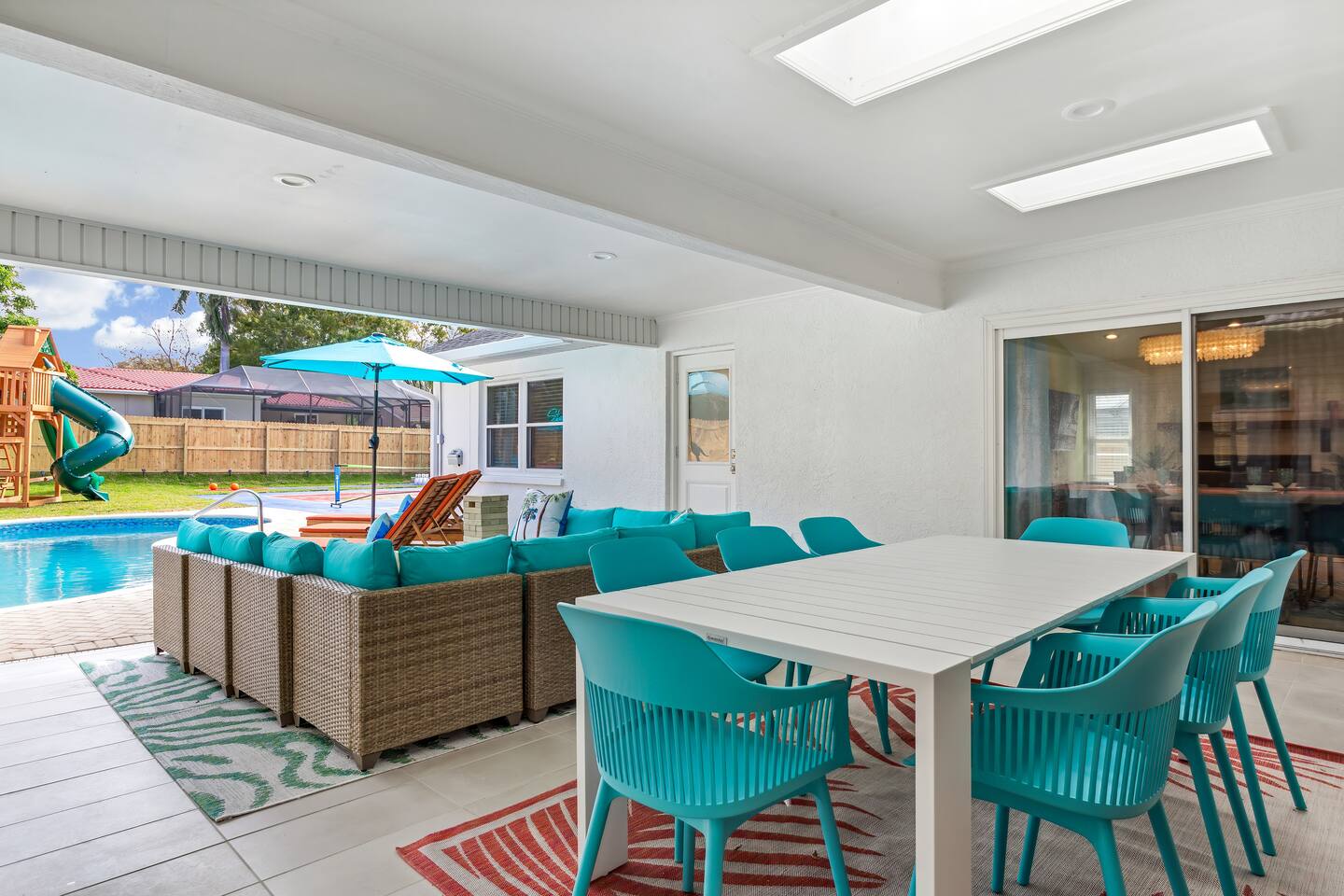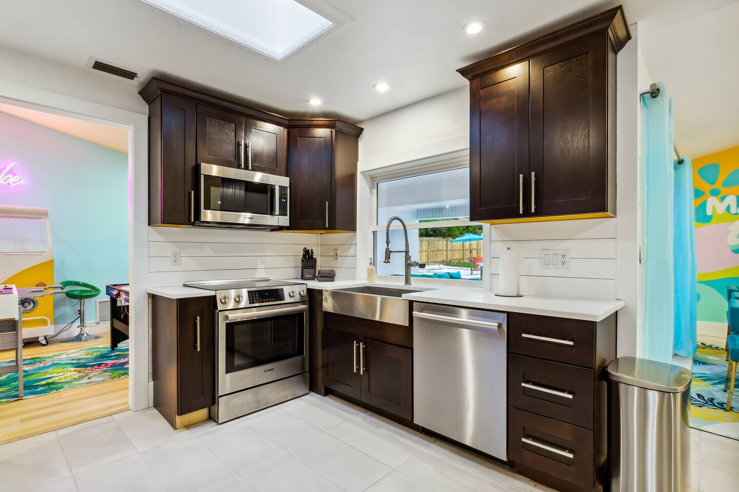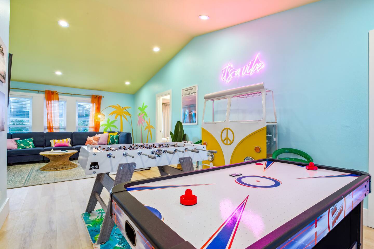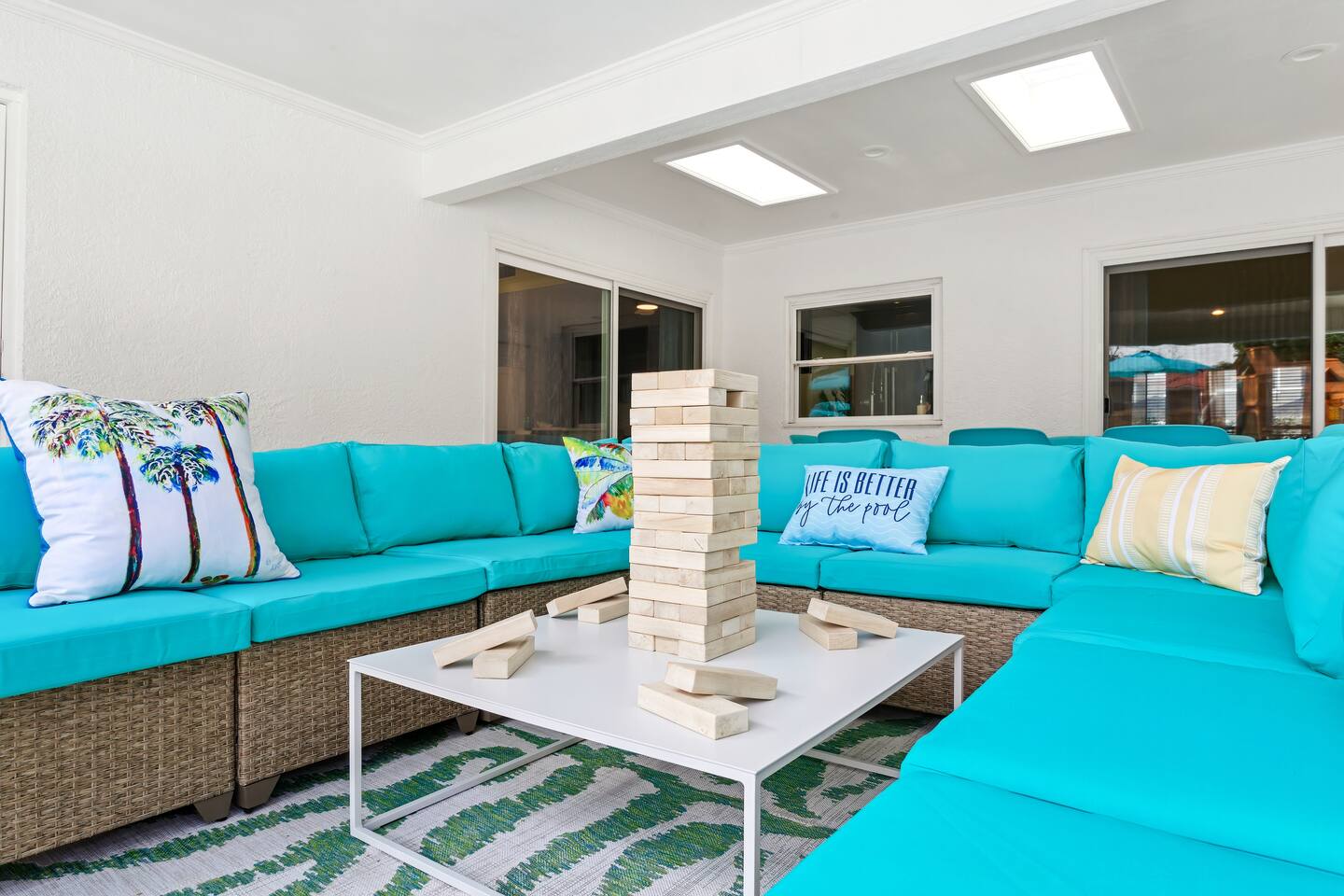 KEY FEATURES: ☀ 5 spacious bedrooms with fun, unique designs; 2 kings, 2 queens, 2 fulls, & 2 twin beds ☀ 3 full, modern bathrooms ☀ Beautiful chef's kitchen with modern appliances & design ☀ Living room with tons of comfy seating and large smart TV ☀ Game room with pool table, foosball, air hockey & more ☀ Bright dining room that opens up to the main living area; great for entertaining! ☀ Huge backyard with heated pool, mini golf, bowling, fire pit, and more ☀ Quiet, private neighborhood just minutes away from beautiful beaches Here Are A Few Kind Words From Our Past Guests: “This was a great place to stay! The morning light through the windows was so beautiful. Overall, just a relaxing experience. The hosts were super responsive whenever I had a question. I would stay again!” - Emily “Sabrina was very accommodating and communicative. the house is beautiful and very comfortable, close to nature hikes.” - Jennifer “This place was lovely! Exactly as pictured! Very clean and excellent host experience!!! I plan to come back again!” - Regina ☆☆ BEDROOMS ☆☆ These 5 bedrooms will BLOW YOU AWAY! The star of the show is the bunk bedroom, which is filled with two twin-over-full bunk beds, two slides, arcade gams, basketball (Pop-a-Shot), smart TV, & comfy seating. It will truly WOW you! There are 4 remaining bedrooms; two with a king bed in each, and two with a queen bed in each. All bedrooms have their own smart TV! ☆☆ BATHROOMS ☆☆ There are 3 full bathrooms throughout this home. The first bathroom has a toilet, sink, & a shower/tub combo. The private ensuite master bathroom has a sink, toilet, walk-in shower, and standalone tub. The third bathroom is located right off of the pool table room, with two sinks, a toilet, & walk-in shower. ☆☆ KITCHEN & DINING ☆☆ The kitchen is bright & open, with brand new stainless steel appliances. With lots of counter space and bar top seating, it's a great kitchen for entertaining! Just one room over is the dining room, which is bright and welcoming. The formal dining room seats 8 (plus 4 bar top seats in the kitchen), and there is also a second dining table in the backyard. ☆☆ LIVING ROOM ☆☆ As you walk into the home, you're greeted with the big, open living room, which has tons of comfy seating and a fun, tropical design! It's a great place for your movie or game nights, where the whole family can sit together in this cozy space! ☆☆ GAME ROOM ☆☆ There are TWO fun game rooms in this home. The first game room, right off of the living room, has foosball, air hockey, and direct access to the incredible backyard. The second game room is located right next to the dining room, with a pool table smart TV, and a fireplace. ☆☆ OUTDOOR SPACE ☆☆ This backyard is everything you could ask for, and more! ☀ Heated pool ☀ Fire pit (wood burning) ☀ Mini golf ☀ Basketball court ☀ Pickleball court ☀ Bowling ☀ HUGE jungle gym ☀ Giant Jenga ☀ BBQ grill ☀ Covered outdoor dining ☀ Covered outdoor lounge seating ☀ Sun loungers ☀ Outdoor shower There is so much to do here, that all of your friends & family will be thoroughly entertained throughout your entire stay. No matter the season, this backyard has it all. Book your stay with us today and you will NOT be disappointed. Get ready for a vacation you will never forget! ★☆ Book Now & Let Us Take Care Of You In Seminole! ☆★