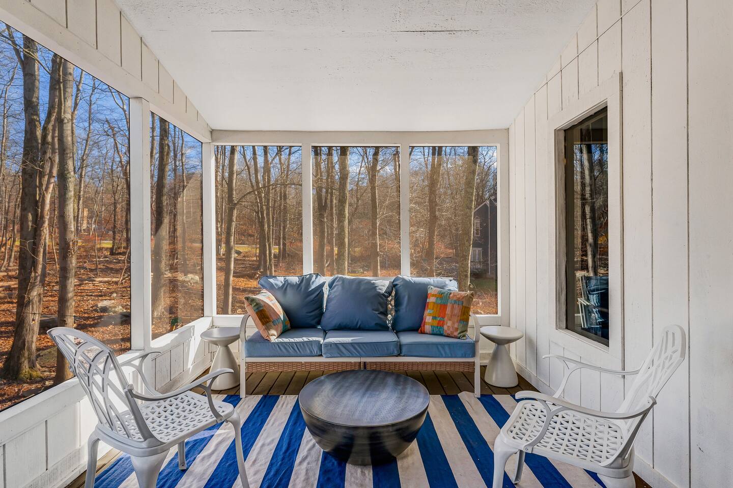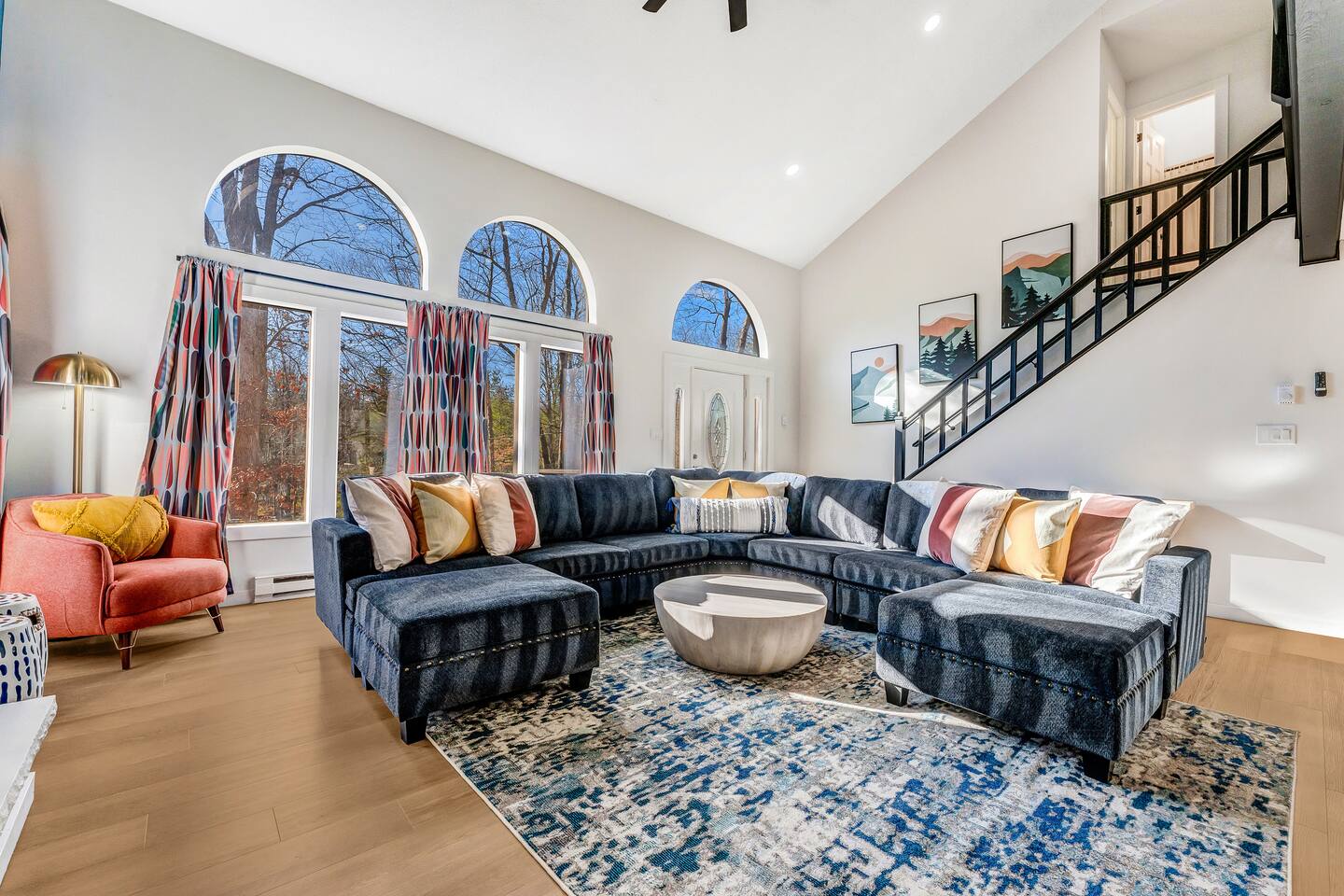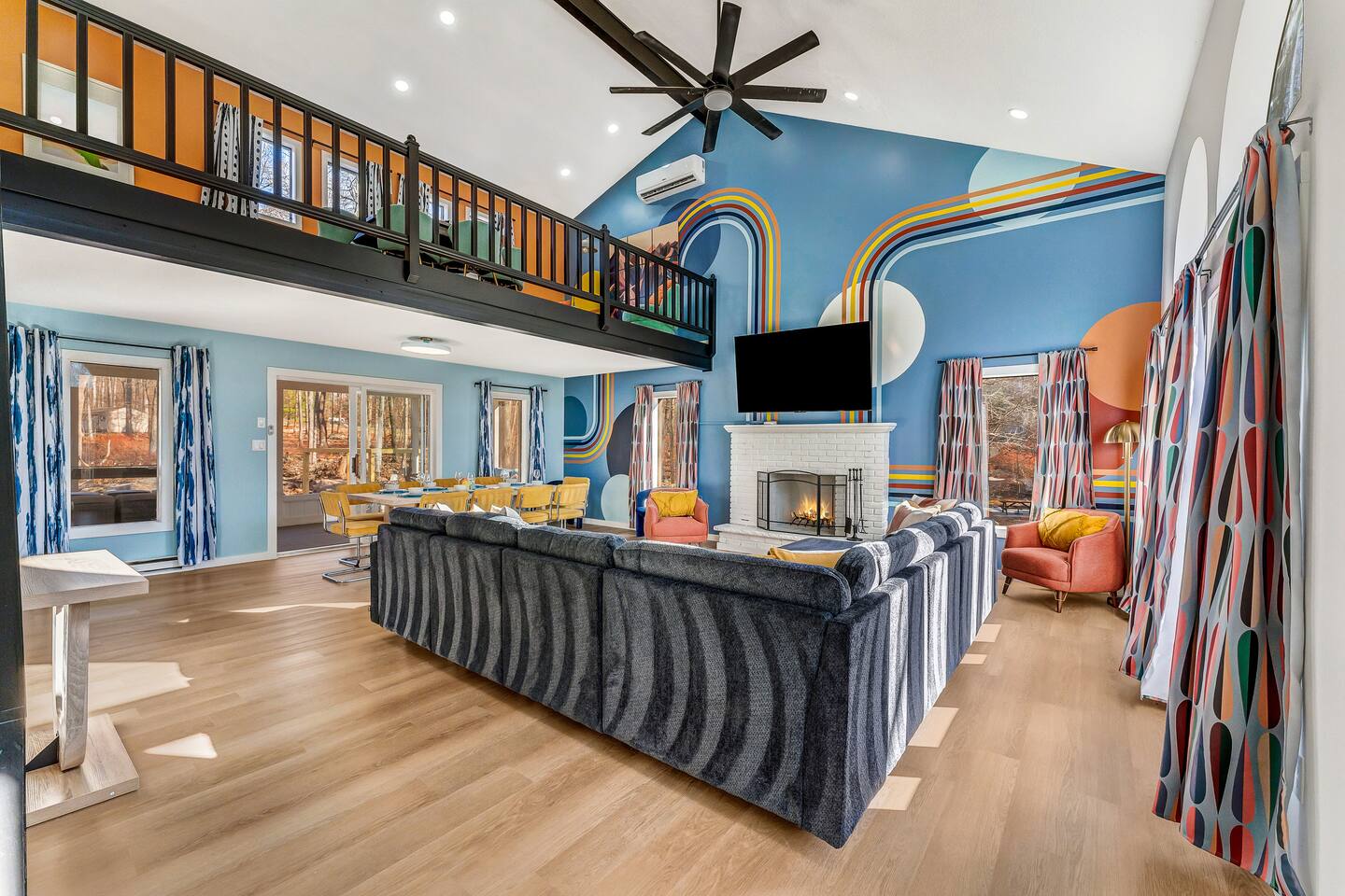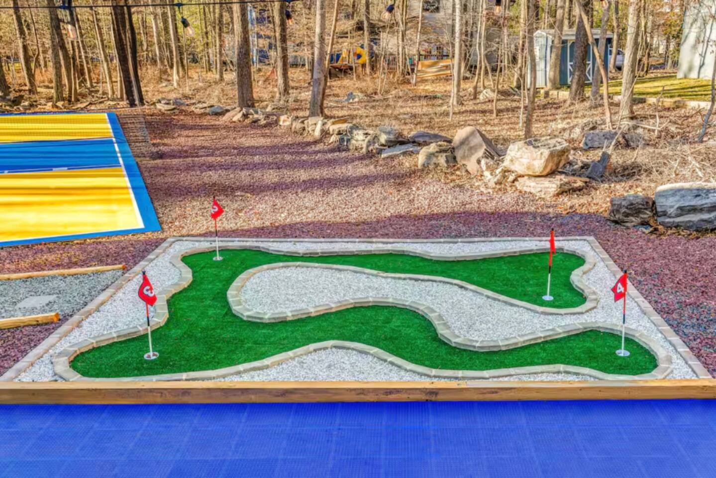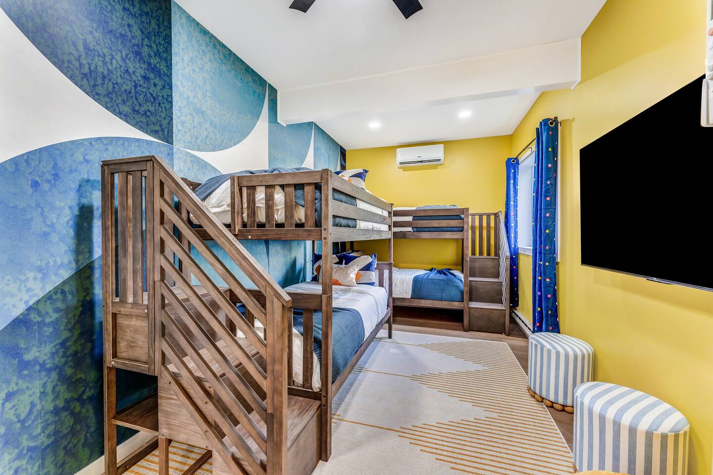 HEATED POOL WILL STAY OPEN THROUGH THE WEEK OF SEPTEMBER 15! **During the summer months (Memorial Day weekend - Labor Day weekend), you will receive amenity badges that allow you to access the following amenities. If you’re staying with us outside of these dates, these amenities will be closed.** ☀ Lakes (with beach access - swimming allowed!) ☀ Pools ☀ Tennis courts ☀ Basketball courts ☀ Volleyball courts ☀ Dog park ☀ Playground areas KEY FEATURES: ☀ 5 beautiful bedrooms; 3 kings, 1 queen, and 4 twin beds (two bunk beds) ☀ 3 full, modern bathrooms ☀ Modern kitchen with new, stainless steel appliances ☀ Open living room with lots of comfy seating & smart TV ☀ Dining room with seating to comfortably accommodate 10 (+ 6 in the screened-in porch & 10 more outdoor dining seats on the back deck!) ☀ Incredible game rooms with pool table, foosball, air hockey, arcade games, poker table, & more! ☀ AMAZING backyard, with a heated pool (open Jun-Aug ONLY), pickleball court, hot tub, fire pit, & more! Here Are A Few Kind Words From Our Past Guests: “This was a great place to stay! The morning light through the windows was so beautiful. Overall, just a relaxing experience. The hosts were super responsive whenever I had a question. I would stay again!” - Emily “Sabrina was very accommodating and communicative. the house is beautiful and very comfortable, close to nature hikes.” - Jennifer “This place was lovely! Exactly as pictured! Very clean and excellent host experience!!! I plan to come back again!” - Regina ☆☆ BEDROOMS ☆☆ Each of the 5 bedrooms in this home have been beautifully designed for comfort - every bedroom in this home has a smart TV. On the bottom floor, there are two bedrooms. One with a queen bed & the other with two twin-over-twin bunk beds (4 twin beds total). On the second level, you will find the master bedroom, with a king bed and cute seating area. The two remaining bedrooms are on the third level, each with a king bed. ☆☆ BATHROOMS ☆☆ There are 3 full, modern bathrooms throughout this home. On the first level, the first bathroom has a sink, toilet, walk-in shower, and TWO washers & dryers. The second level bathroom is right next to the master bedroom, with a sink, toilet, walk-in shower, and separate soaking tub. On the top level, the third bathroom has a sink, toilet, and shower/tub combo. ☆☆ KITCHEN & DINING ☆☆ The modern kitchen is located right off of the main living areas, and is loaded with all new stainless steel appliances & a coffee station (including a Keurig & coffee pods). The dining room is right next to the kitchen, with enough seating to comfortably fit 10 people, plus 6 more seats right out on the screened-in porch, with amazing views of the incredible backyard! ☆☆ LIVING ROOM ☆☆ In the HUGE living room, you’ll be greeted with lots of comfy seating & a big smart TV. This is the perfect spot to host your movie nights & games with your friends and family! ☆☆ GAME ROOM ☆☆ As you walk in the front door on the first level, you will be BLOWN AWAY by the jam-packed game room, filled with all the entertainment you could dream of! Pool table, ping pong, pop-a-shot, foosball, air hockey, shuffleboard, arcade games, and a smart TV - WOW! It just never ends! You will also be greeted with a fun surprise as you walk upstairs to the third level, which has a poker table that overlooks the beautiful living room below. ☆☆ OUTDOOR SPACE ☆☆ This backyard is everything you could ask for, and more! ☀ Heated pool (AVAILABLE JUN-AUG ONLY) ☀ Pickleball court** ☀ Hot tub ☀ Fire pit ☀ Mini golf ☀ Bowling ☀ Kids' jungle gym with slide ☀ Giant Connect 4 ☀ BBQ grill ☀ Outdoor dining ☀ Outdoor lounge seating ☀ Sun lounging chairs by the pool **For your safety, the pickleball court is closed during the winter months due to icy and unsafe conditions. The courts will reopen in the spring, weather permitting. There is so much to do here, that all of your friends & family will be thoroughly entertained throughout your entire stay. No matter the season, this backyard has it all. Book your stay with us today and you will NOT be disappointed. Get ready for a vacation you will never forget! ★☆ Book Now & Let Us Take Care Of You In The Poconos! ☆★