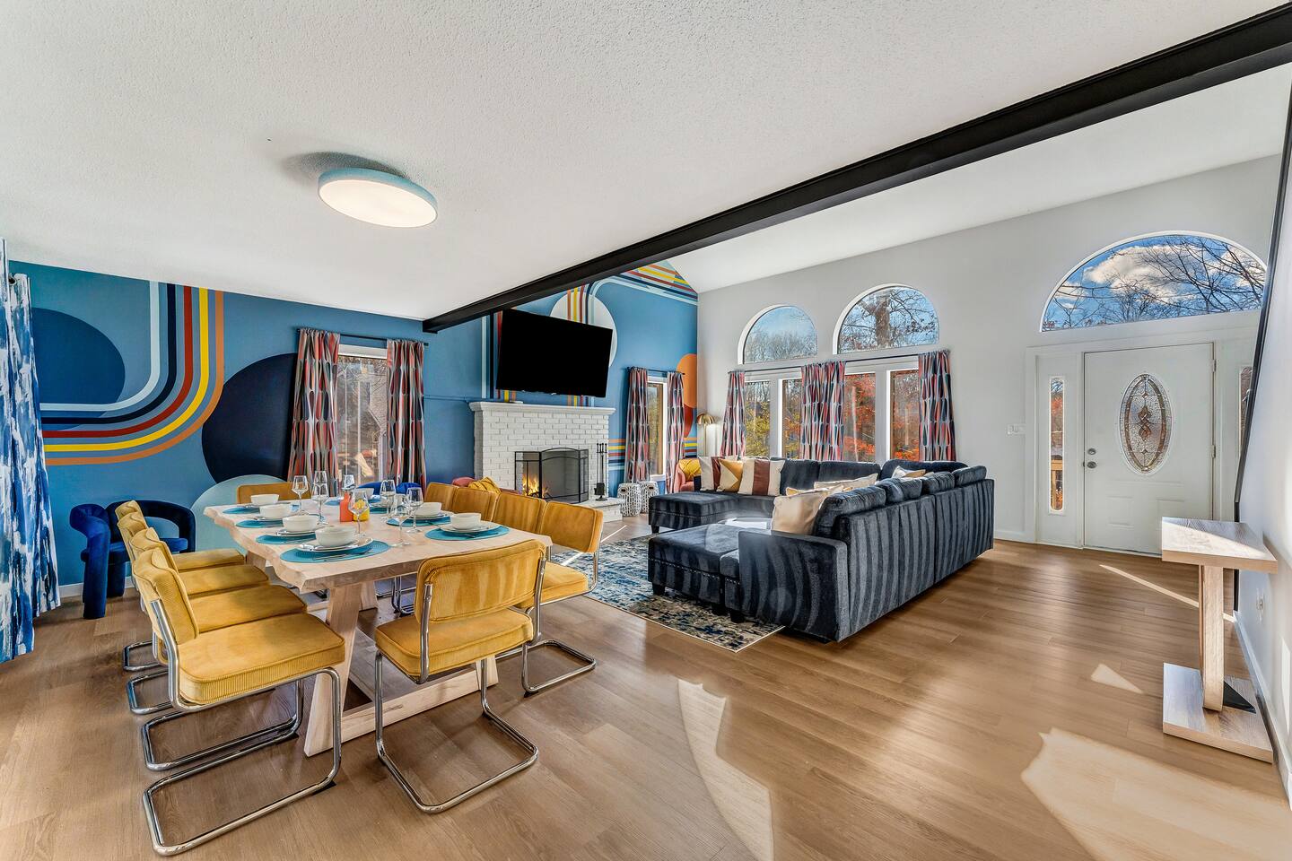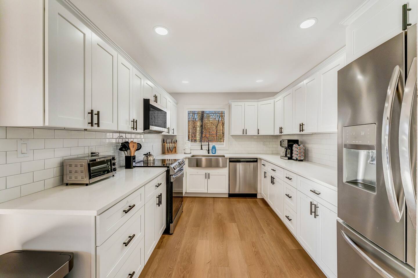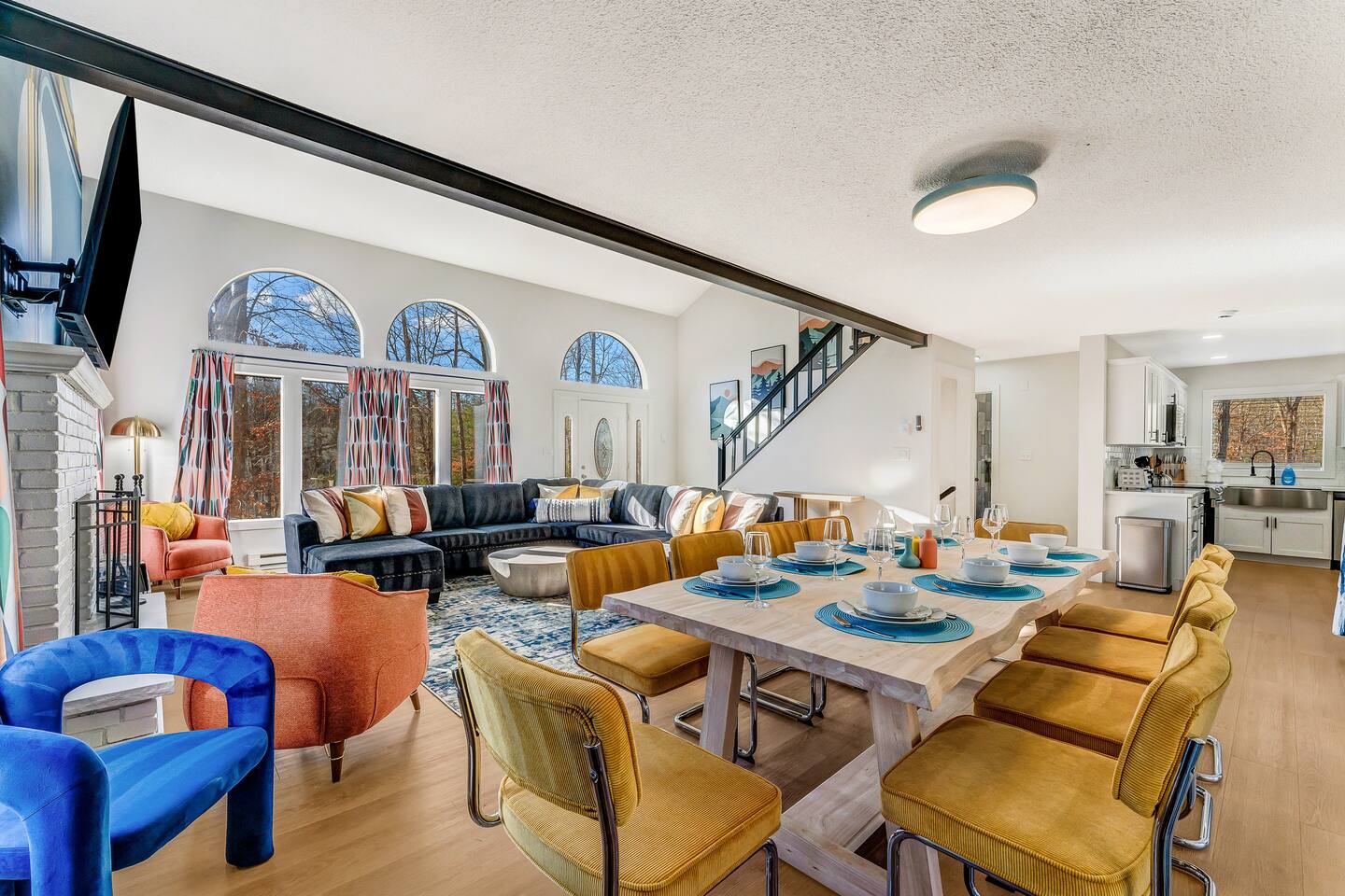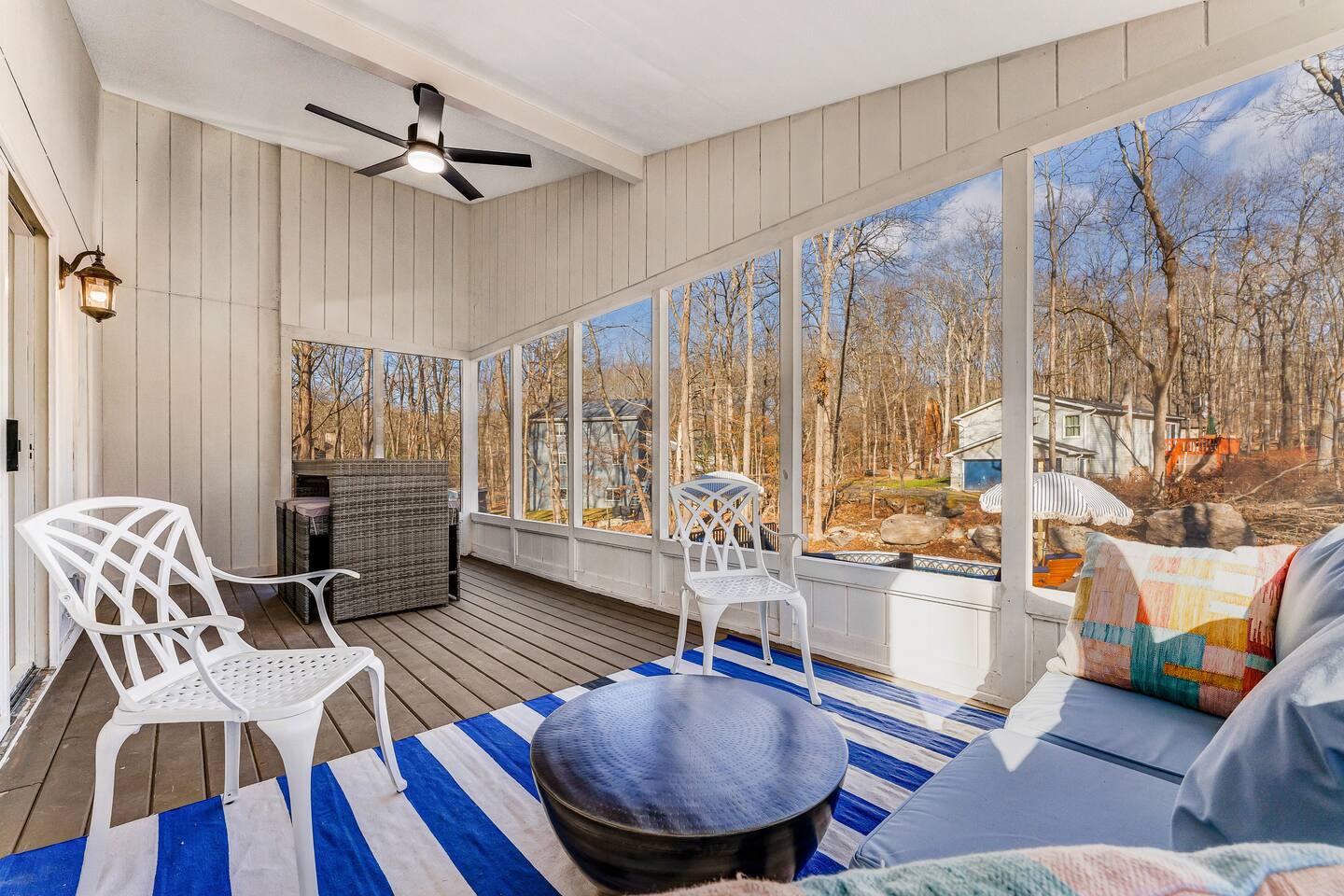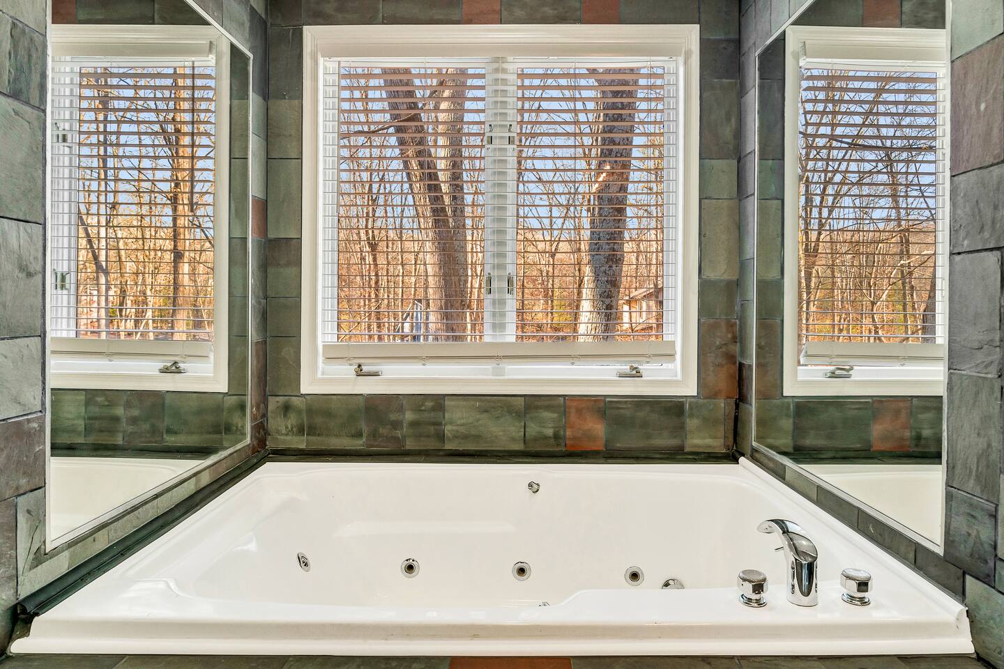 HEATED POOL WILL STAY OPEN THROUGH THE WEEK OF SEPTEMBER 15! **During the summer months (Memorial Day weekend - Labor Day weekend), you will receive amenity badges that allow you to access the following amenities. If you’re staying with us outside of these dates, these amenities will be closed.** ☀ Lakes (with beach access - swimming allowed!) ☀ Pools ☀ Tennis courts ☀ Basketball courts ☀ Volleyball courts ☀ Dog park ☀ Playground areas KEY FEATURES: ☀ 5 beautiful bedrooms; 3 kings, 1 queen, and 4 twin beds (two bunk beds) ☀ 3 full, modern bathrooms ☀ Modern kitchen with new, stainless steel appliances ☀ Open living room with lots of comfy seating & smart TV ☀ Dining room with seating to comfortably accommodate 10 (+ 6 in the screened-in porch & 10 more outdoor dining seats on the back deck!) ☀ Incredible game rooms with pool table, foosball, air hockey, arcade games, poker table, & more! ☀ AMAZING backyard, with a heated pool (open Jun-Aug ONLY), pickleball court, hot tub, fire pit, & more! Here Are A Few Kind Words From Our Past Guests: “This was a great place to stay! The morning light through the windows was so beautiful. Overall, just a relaxing experience. The hosts were super responsive whenever I had a question. I would stay again!” - Emily “Sabrina was very accommodating and communicative. the house is beautiful and very comfortable, close to nature hikes.” - Jennifer “This place was lovely! Exactly as pictured! Very clean and excellent host experience!!! I plan to come back again!” - Regina ☆☆ BEDROOMS ☆☆ Each of the 5 bedrooms in this home have been beautifully designed for comfort - every bedroom in this home has a smart TV. On the bottom floor, there are two bedrooms. One with a queen bed & the other with two twin-over-twin bunk beds (4 twin beds total). On the second level, you will find the master bedroom, with a king bed and cute seating area. The two remaining bedrooms are on the third level, each with a king bed. ☆☆ BATHROOMS ☆☆ There are 3 full, modern bathrooms throughout this home. On the first level, the first bathroom has a sink, toilet, walk-in shower, and TWO washers & dryers. The second level bathroom is right next to the master bedroom, with a sink, toilet, walk-in shower, and separate soaking tub. On the top level, the third bathroom has a sink, toilet, and shower/tub combo. ☆☆ KITCHEN & DINING ☆☆ The modern kitchen is located right off of the main living areas, and is loaded with all new stainless steel appliances & a coffee station (including a Keurig & coffee pods). The dining room is right next to the kitchen, with enough seating to comfortably fit 10 people, plus 6 more seats right out on the screened-in porch, with amazing views of the incredible backyard! ☆☆ LIVING ROOM ☆☆ In the HUGE living room, you’ll be greeted with lots of comfy seating & a big smart TV. This is the perfect spot to host your movie nights & games with your friends and family! ☆☆ GAME ROOM ☆☆ As you walk in the front door on the first level, you will be BLOWN AWAY by the jam-packed game room, filled with all the entertainment you could dream of! Pool table, ping pong, pop-a-shot, foosball, air hockey, shuffleboard, arcade games, and a smart TV - WOW! It just never ends! You will also be greeted with a fun surprise as you walk upstairs to the third level, which has a poker table that overlooks the beautiful living room below. ☆☆ OUTDOOR SPACE ☆☆ This backyard is everything you could ask for, and more! ☀ Heated pool (AVAILABLE JUN-AUG ONLY) ☀ Pickleball court** ☀ Hot tub ☀ Fire pit ☀ Mini golf ☀ Bowling ☀ Kids' jungle gym with slide ☀ Giant Connect 4 ☀ BBQ grill ☀ Outdoor dining ☀ Outdoor lounge seating ☀ Sun lounging chairs by the pool **For your safety, the pickleball court is closed during the winter months due to icy and unsafe conditions. The courts will reopen in the spring, weather permitting. There is so much to do here, that all of your friends & family will be thoroughly entertained throughout your entire stay. No matter the season, this backyard has it all. Book your stay with us today and you will NOT be disappointed. Get ready for a vacation you will never forget! ★☆ Book Now & Let Us Take Care Of You In The Poconos! ☆★